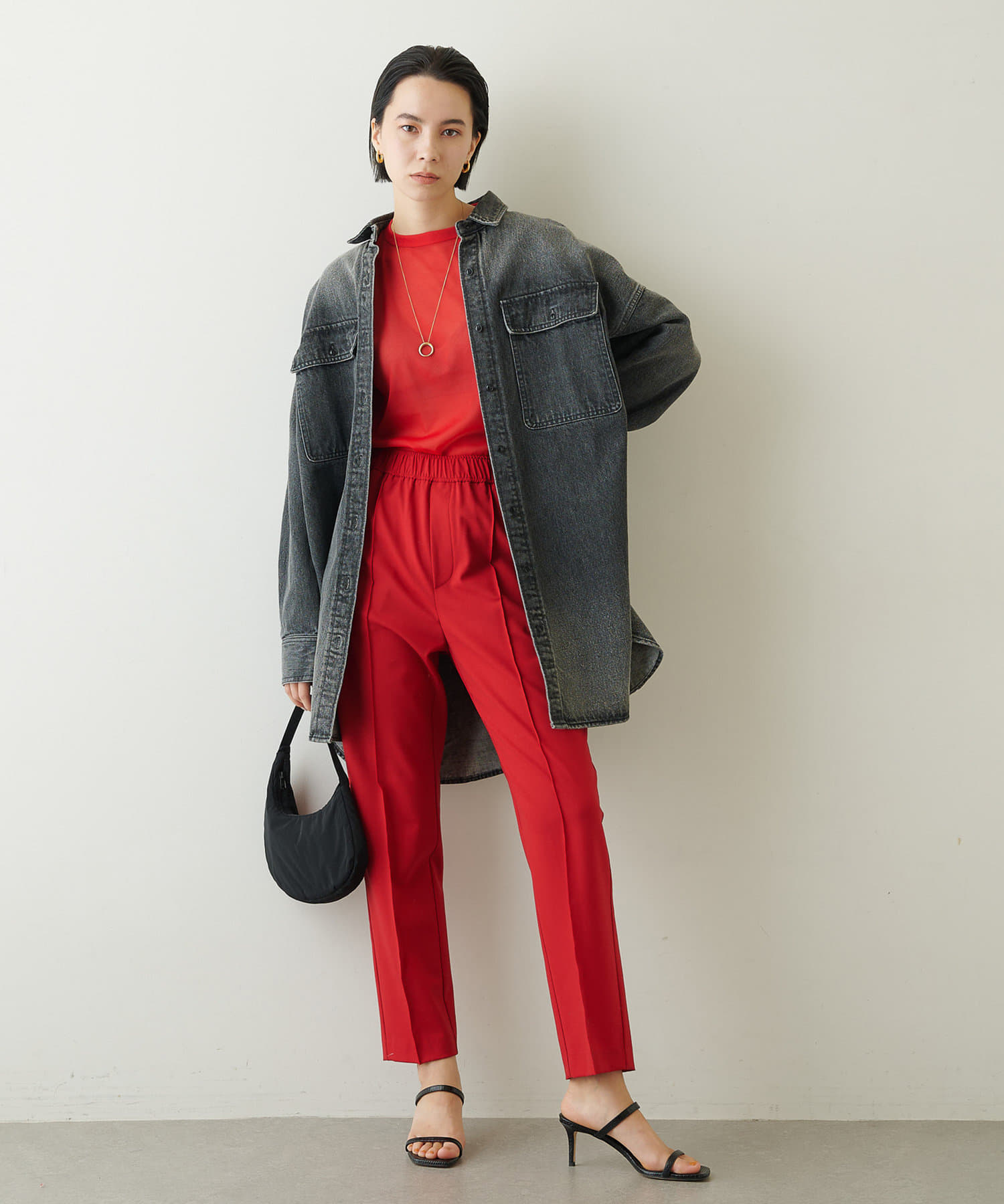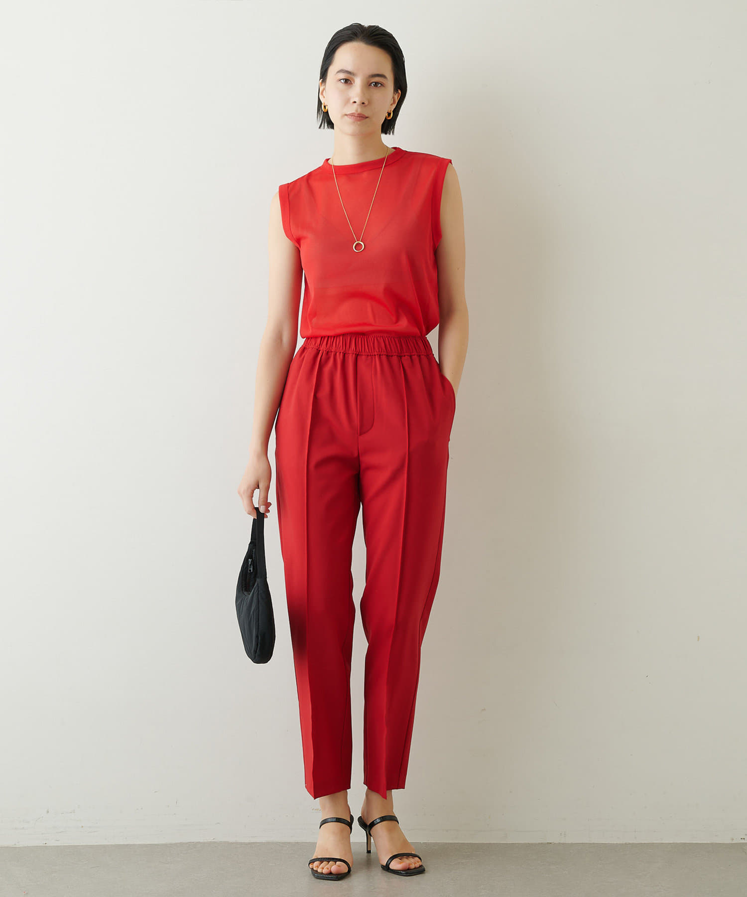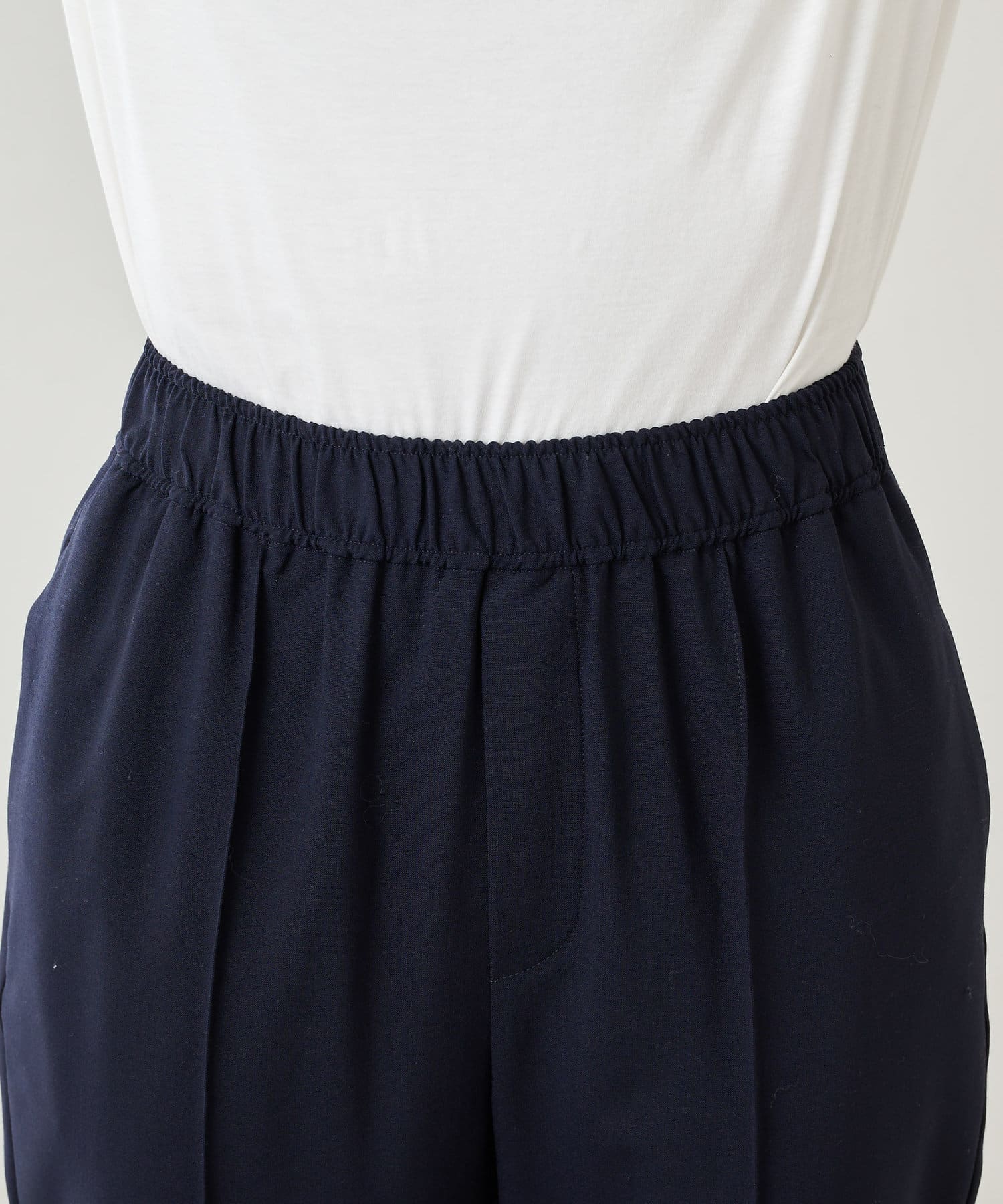■ウエストゴム仕様のイージーな履き心地ながら、センタープレスがきれいめな印象をキープ。