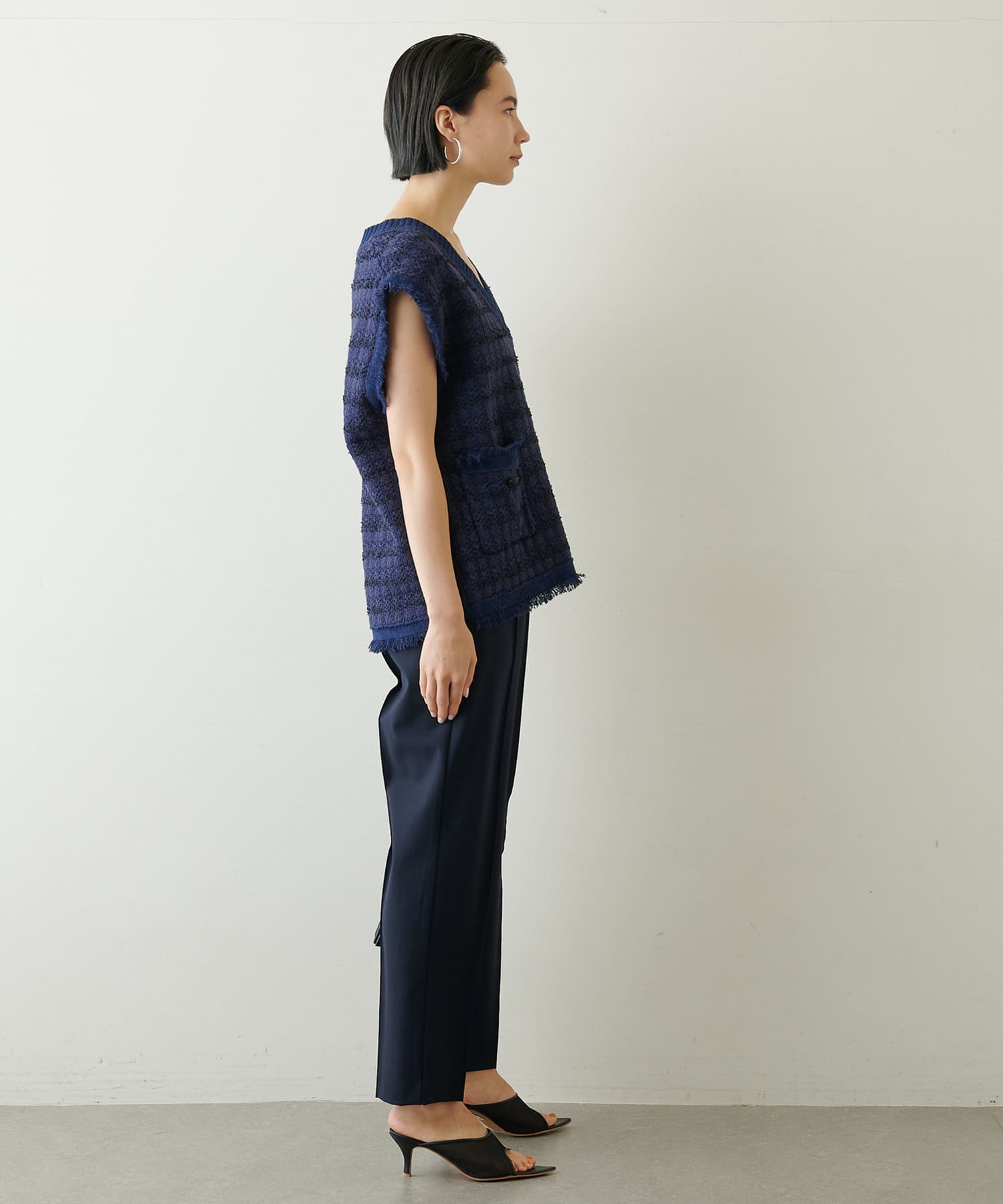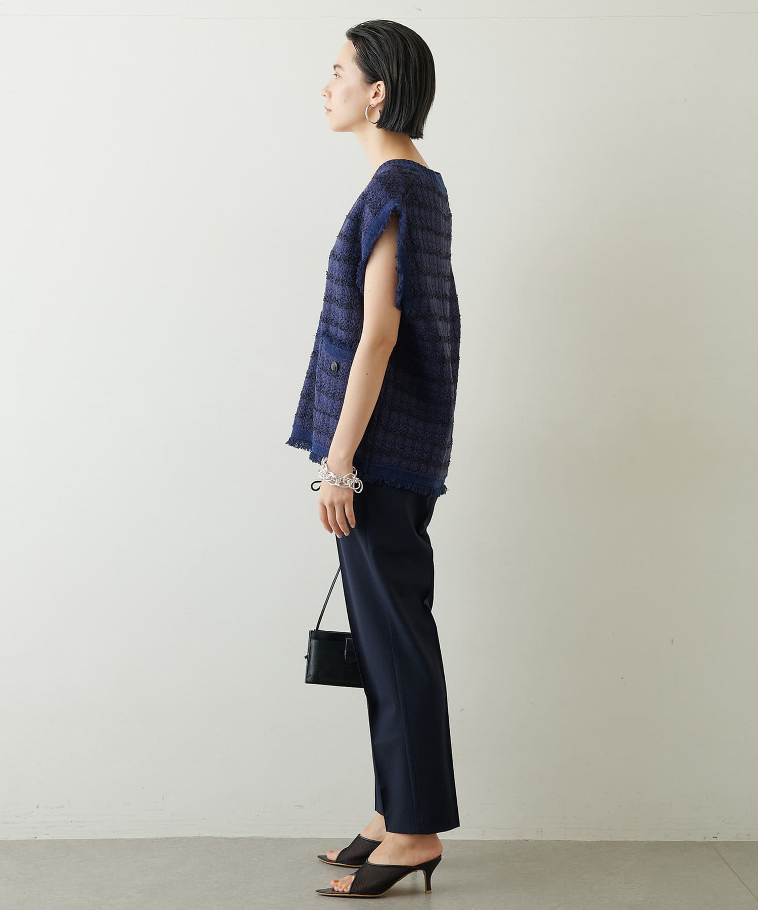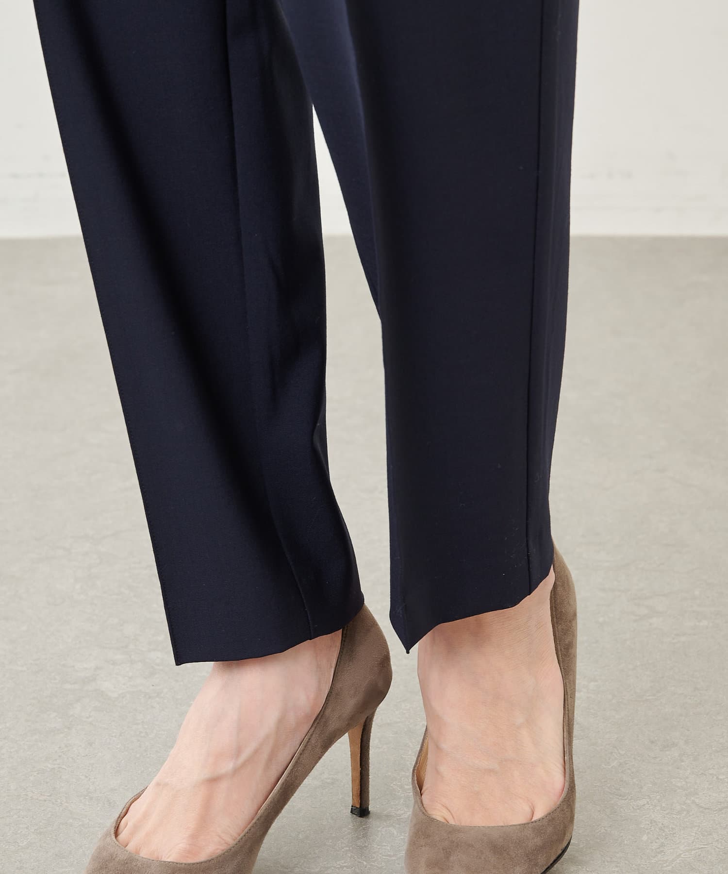 ウールというと冬のイメージがありますが、見た目も肌触りも冬っぽさは全くなくドライタッチでシーズンレスに履けますよ。ヒップ周りは程よいゆとりがあり裾に向かって細くなっているので、気になる体のラインをカバーしながらすっきりと見せてくれます。