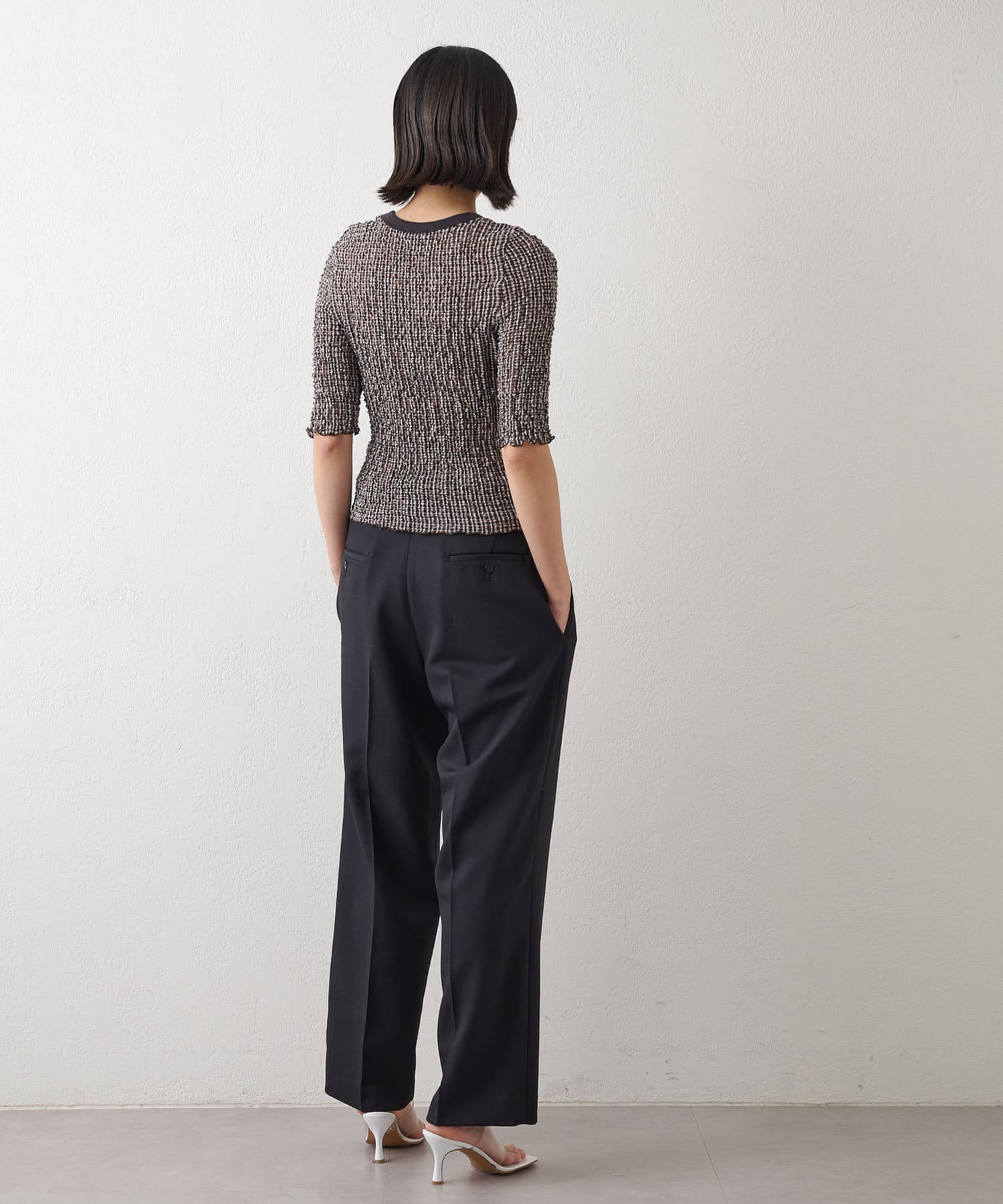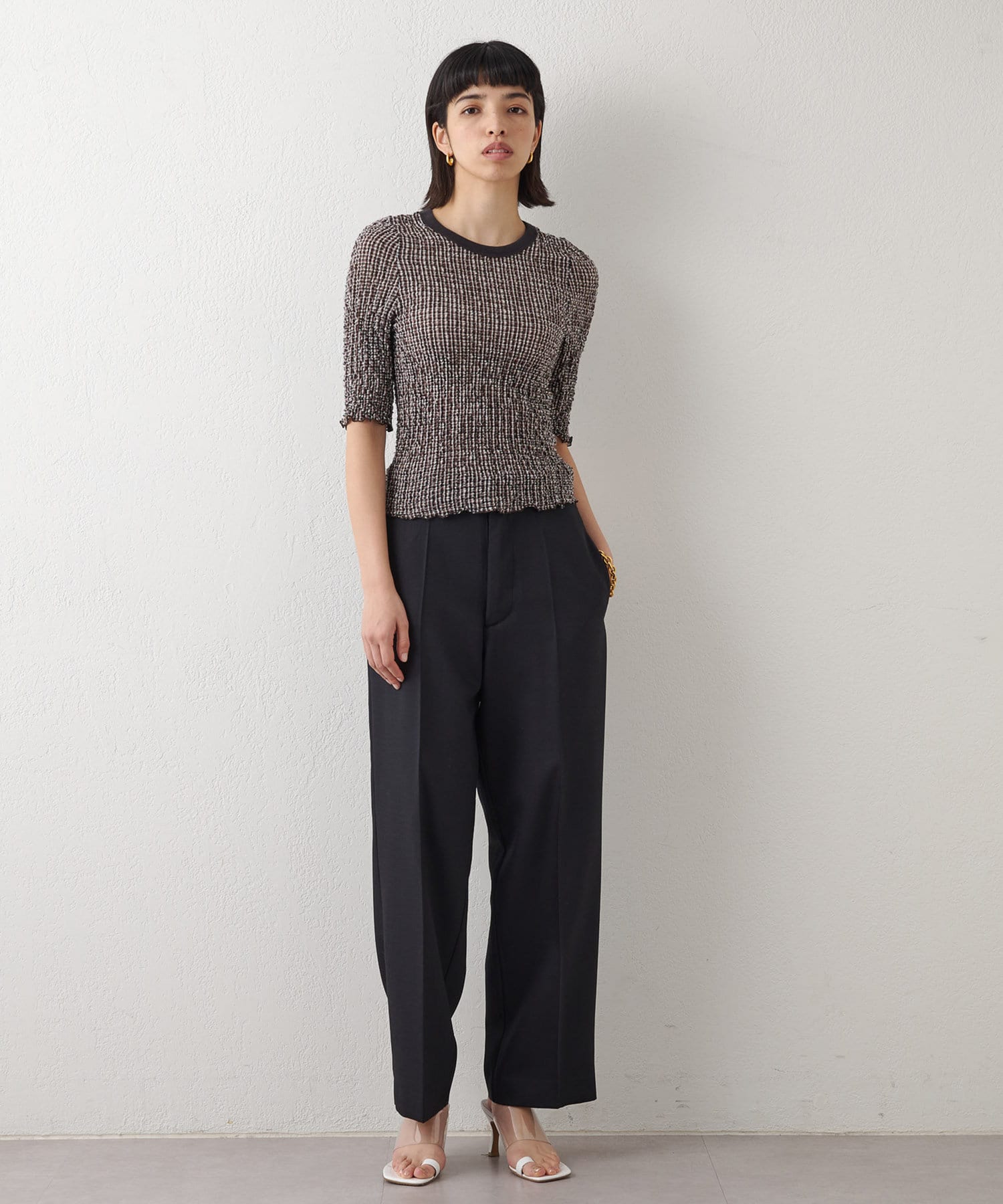 着こなしに繊細なニュアンスをプラスするシャーリングブラウス