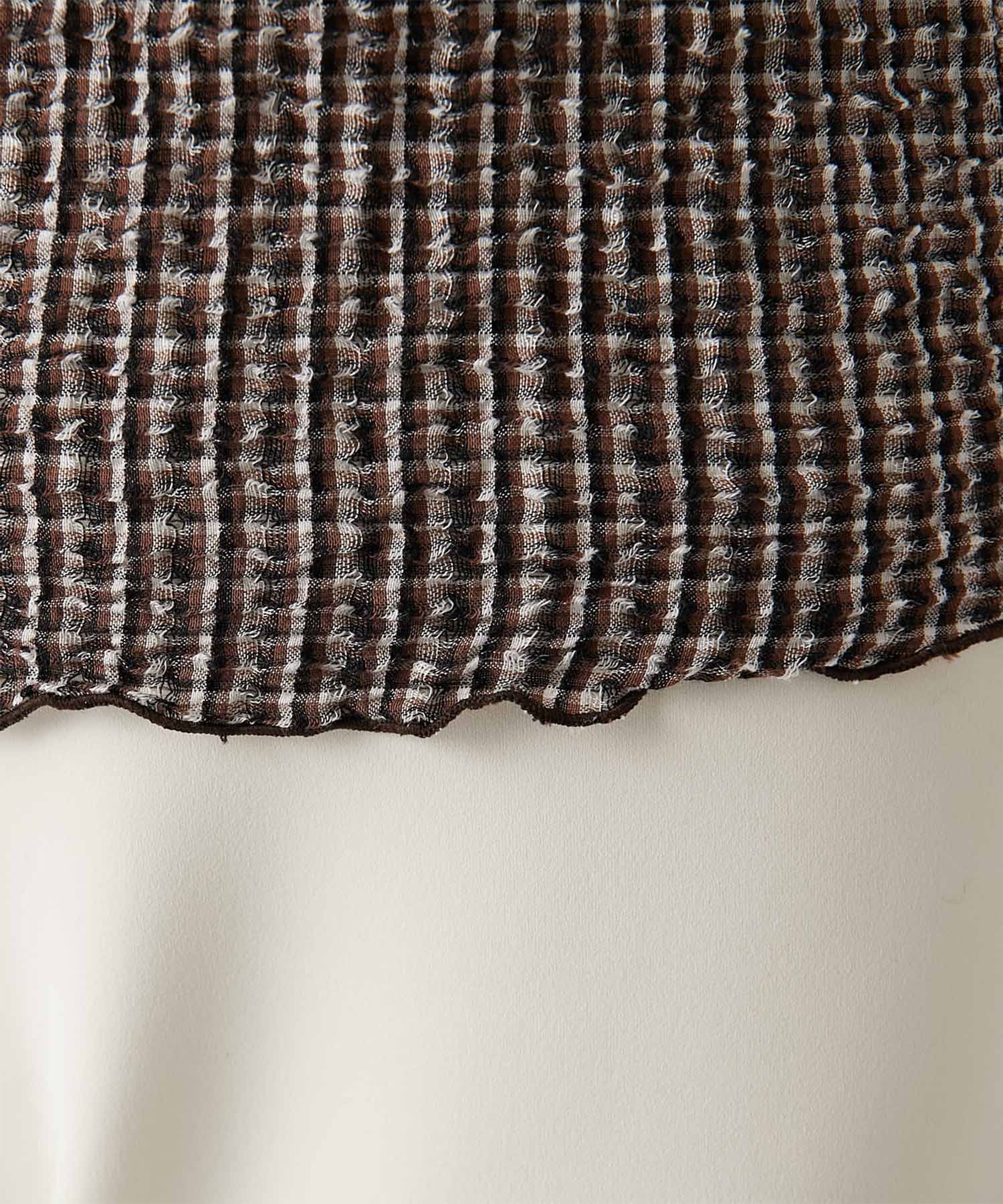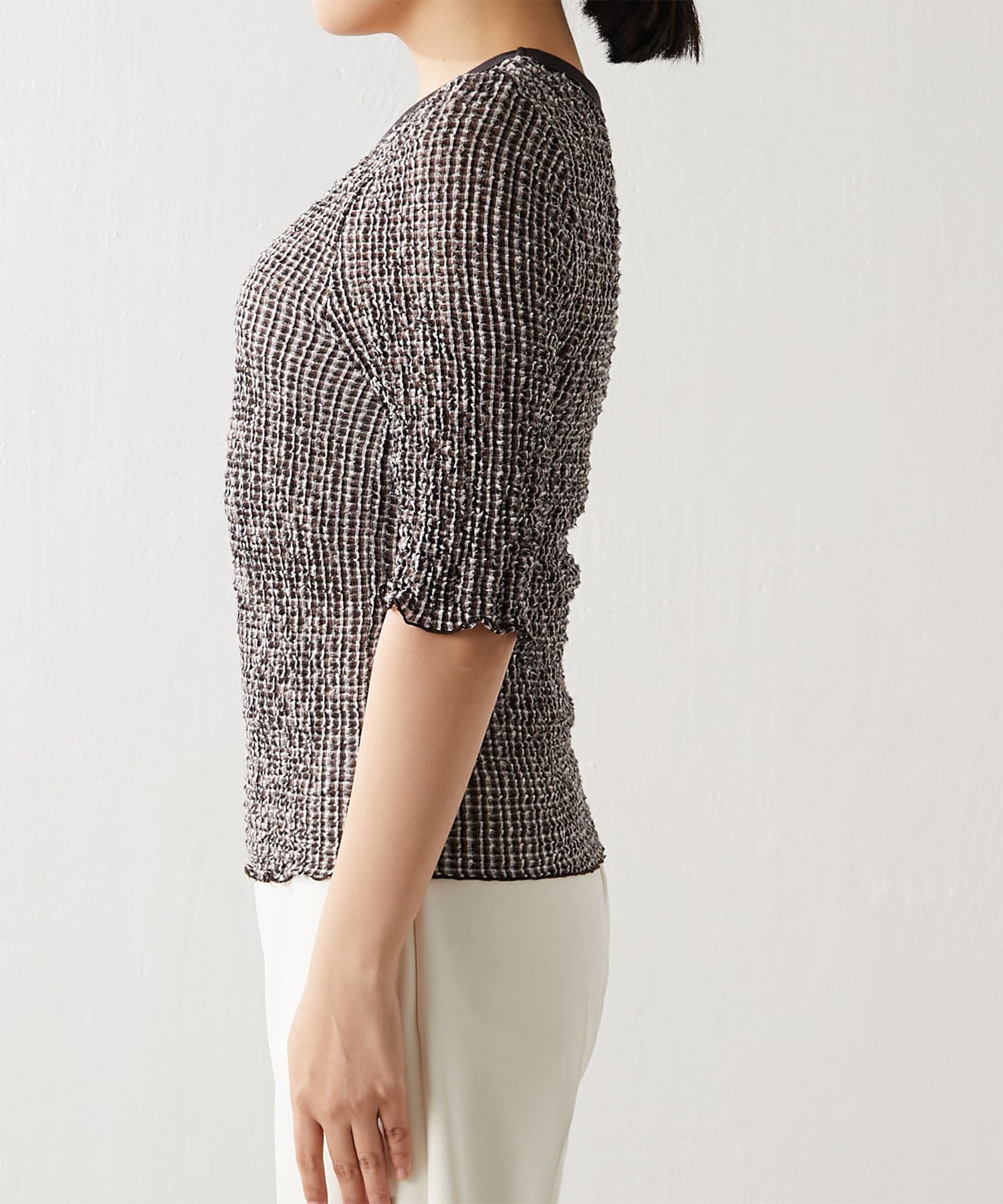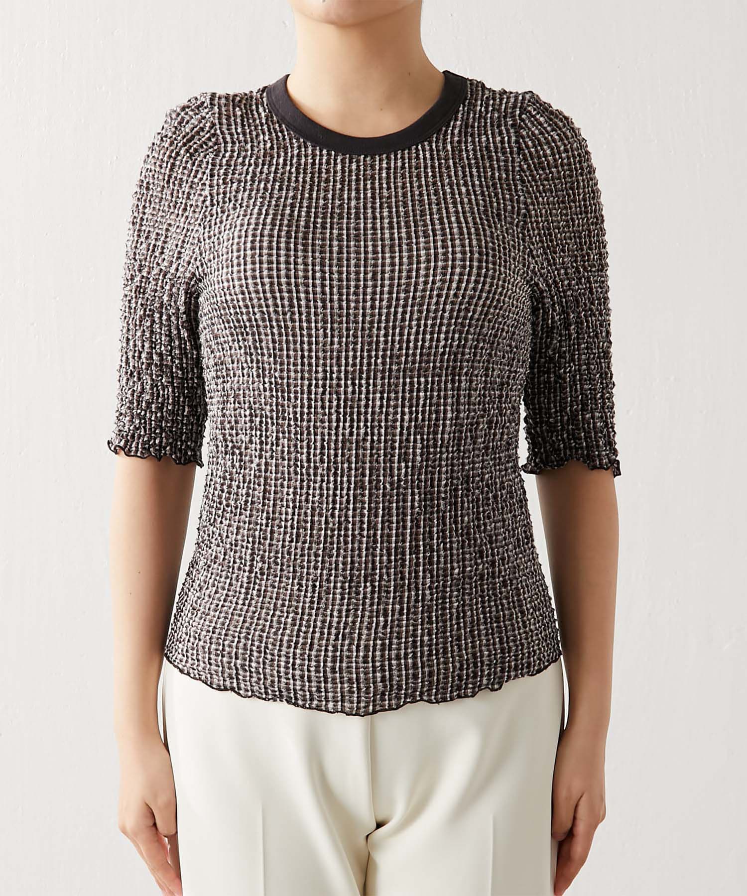 ■細やかなチェック柄とシャーリングが表情感のあるプルオーバー。