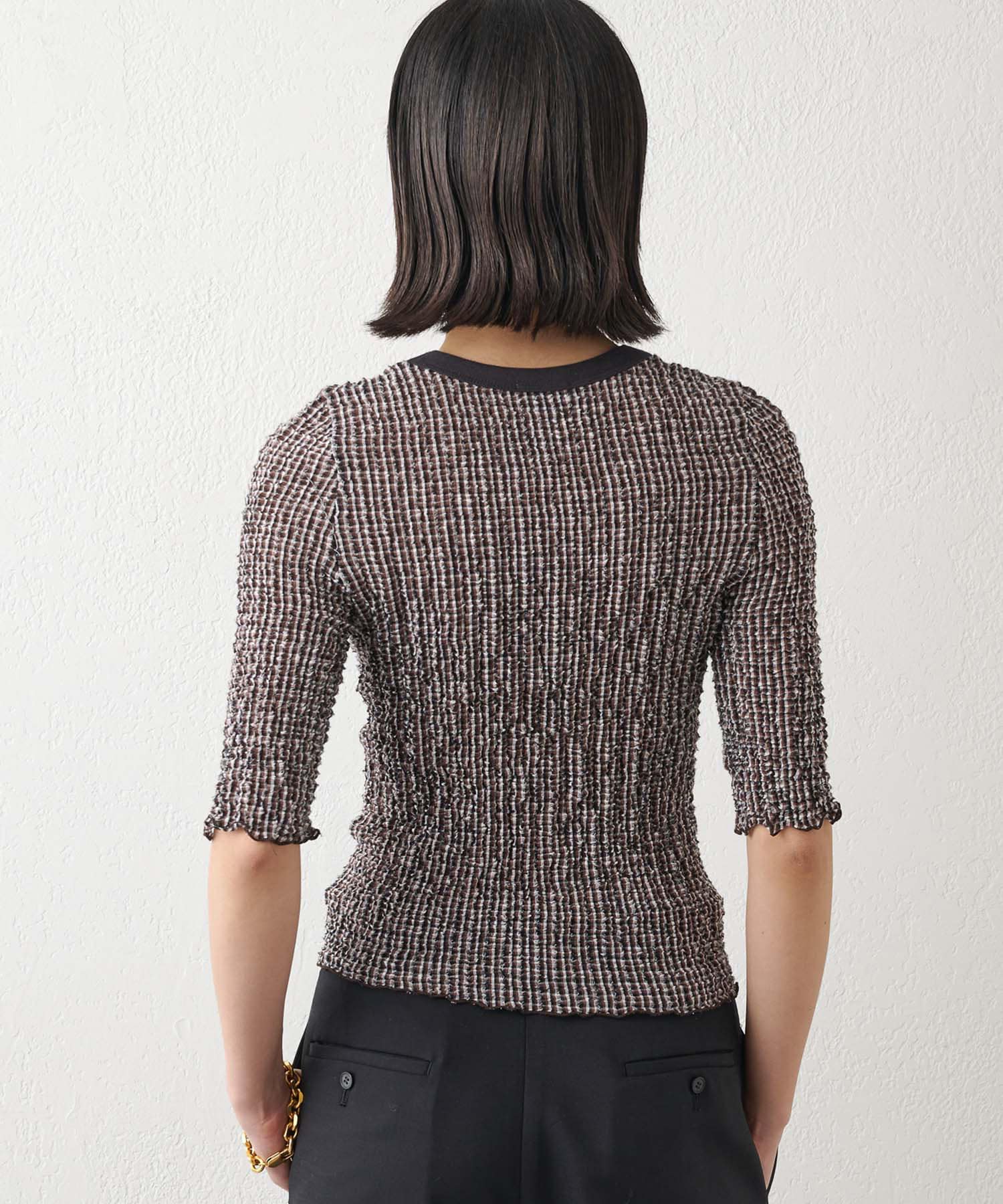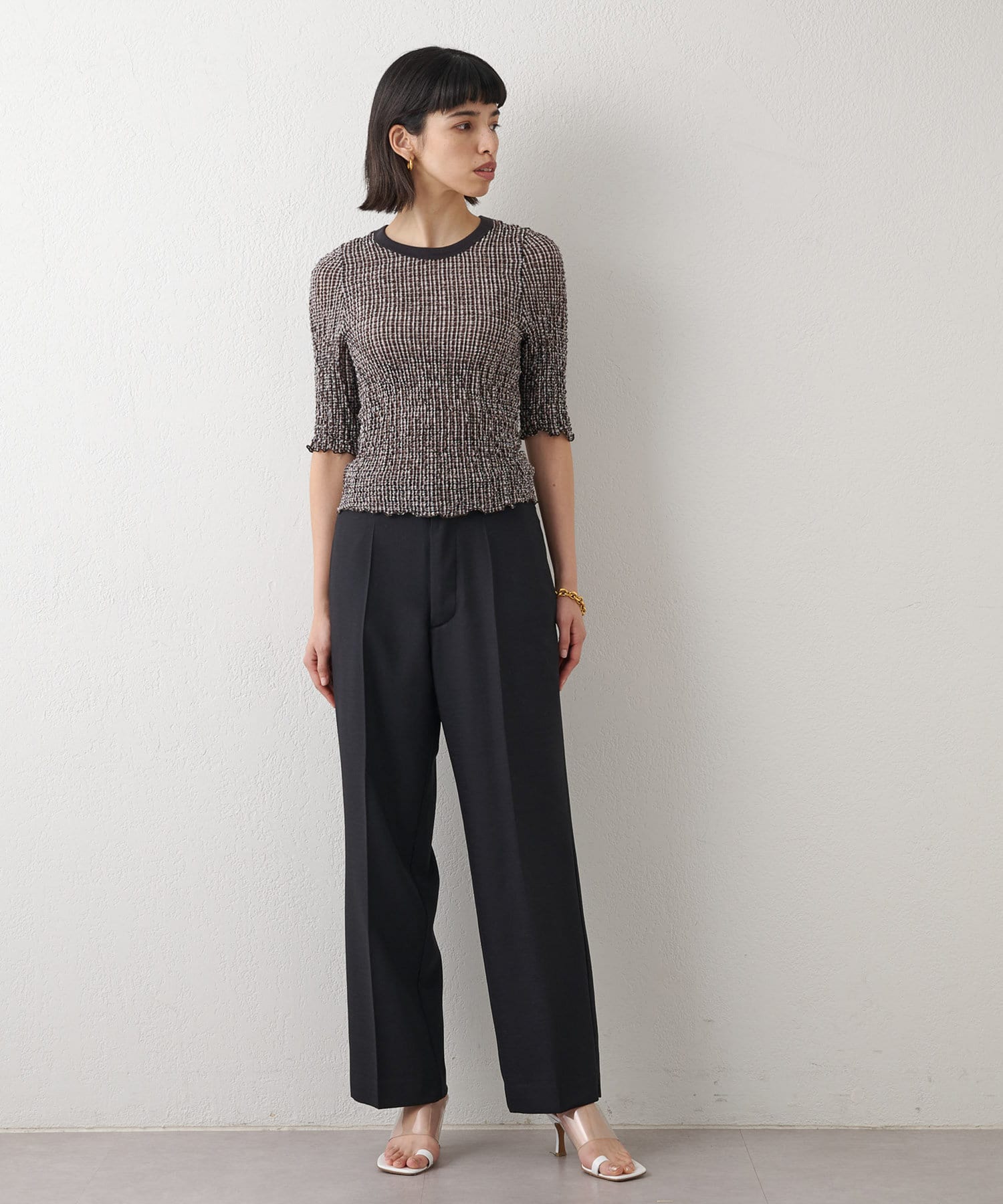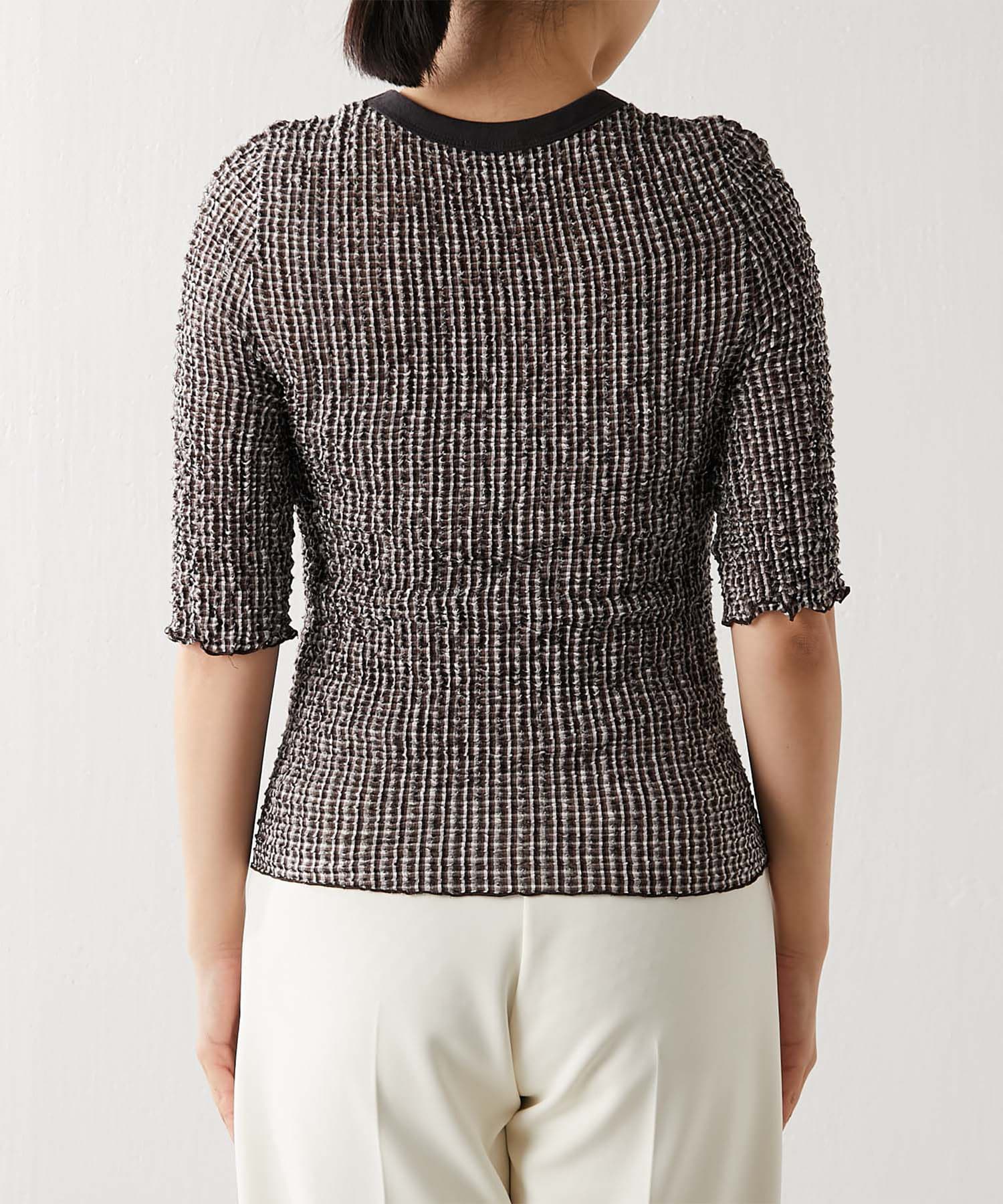 ■細やかなチェック柄とシャーリングが表情感のあるプルオーバー。
