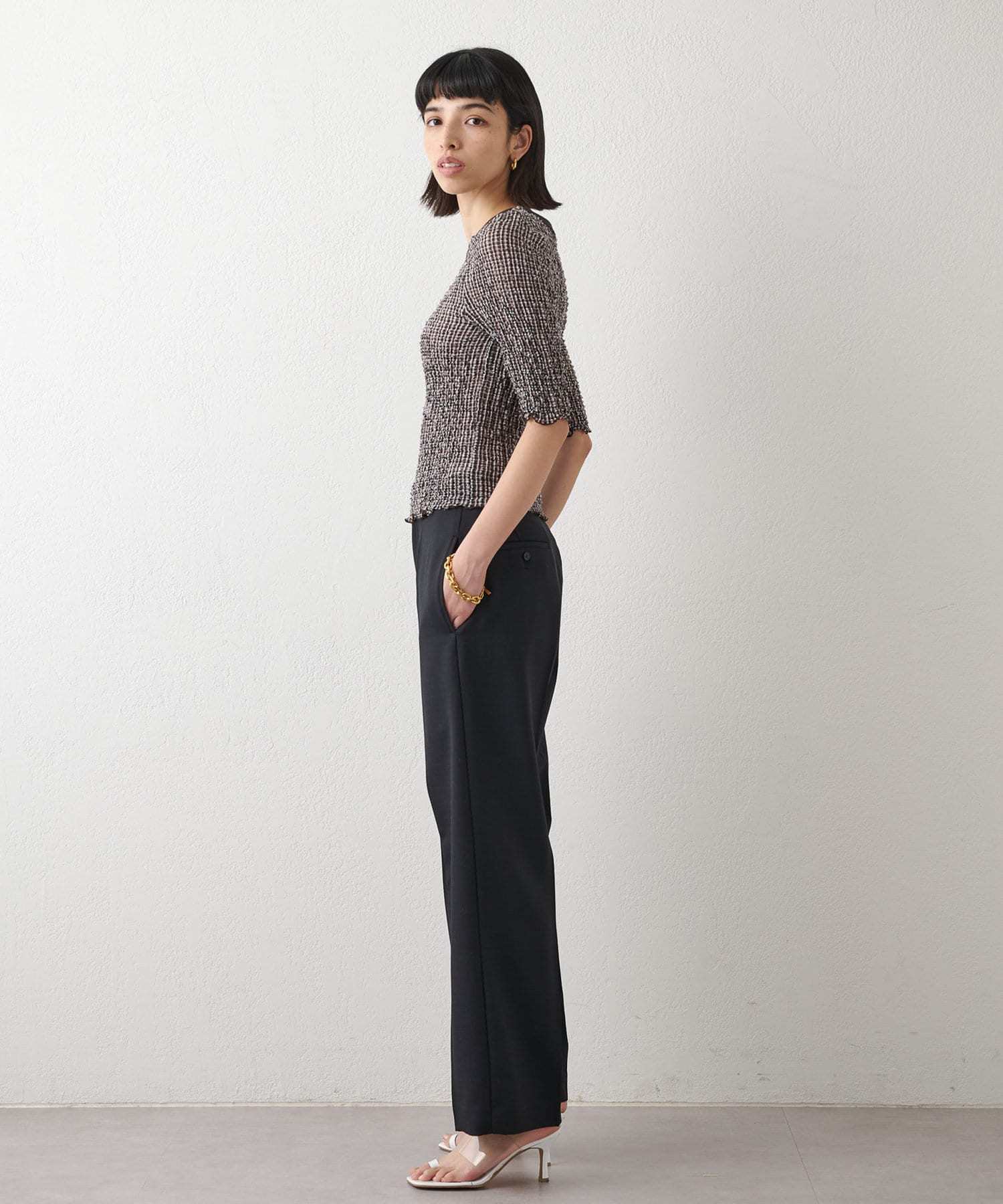 ■ハーフスリーブデザインが気になる二の腕をカバーし、大人っぽく品のある着こなしに。