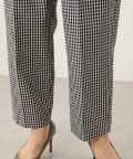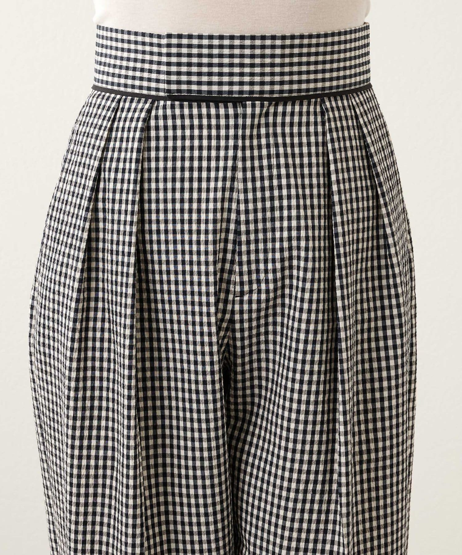 ■細かいギンガムチェック柄と表面感のある風合いが印象的なタックパンツ。