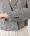 ■細やかなグレンチェックがポイントのリネンショートジャケット。