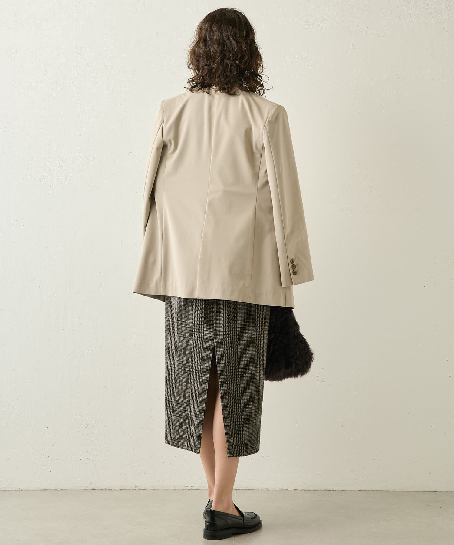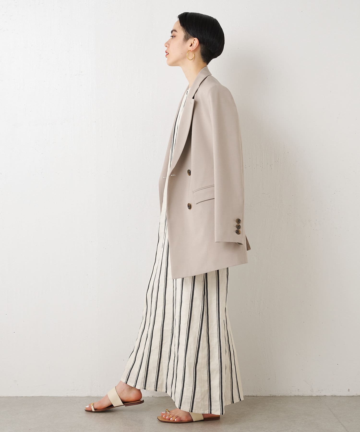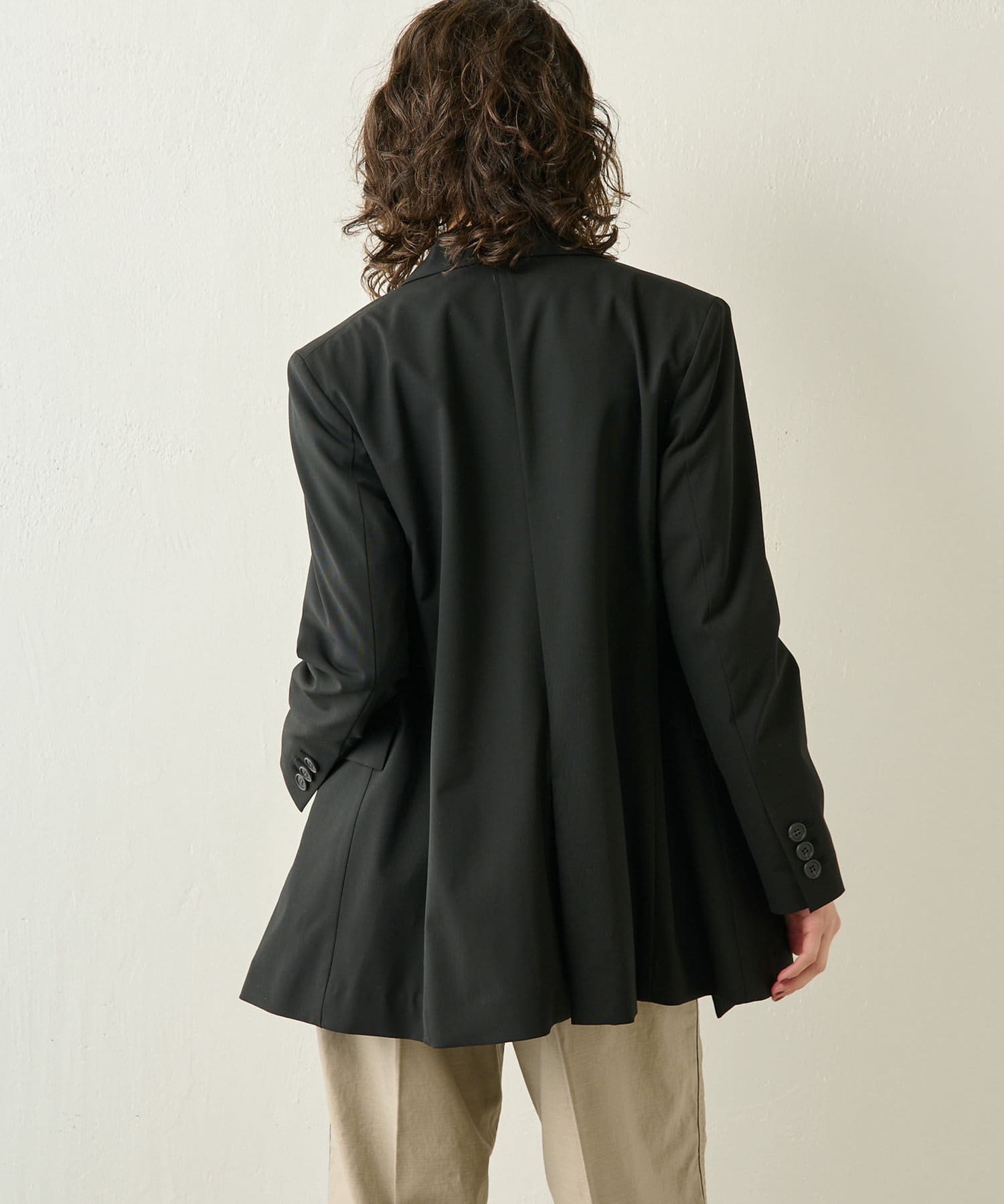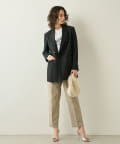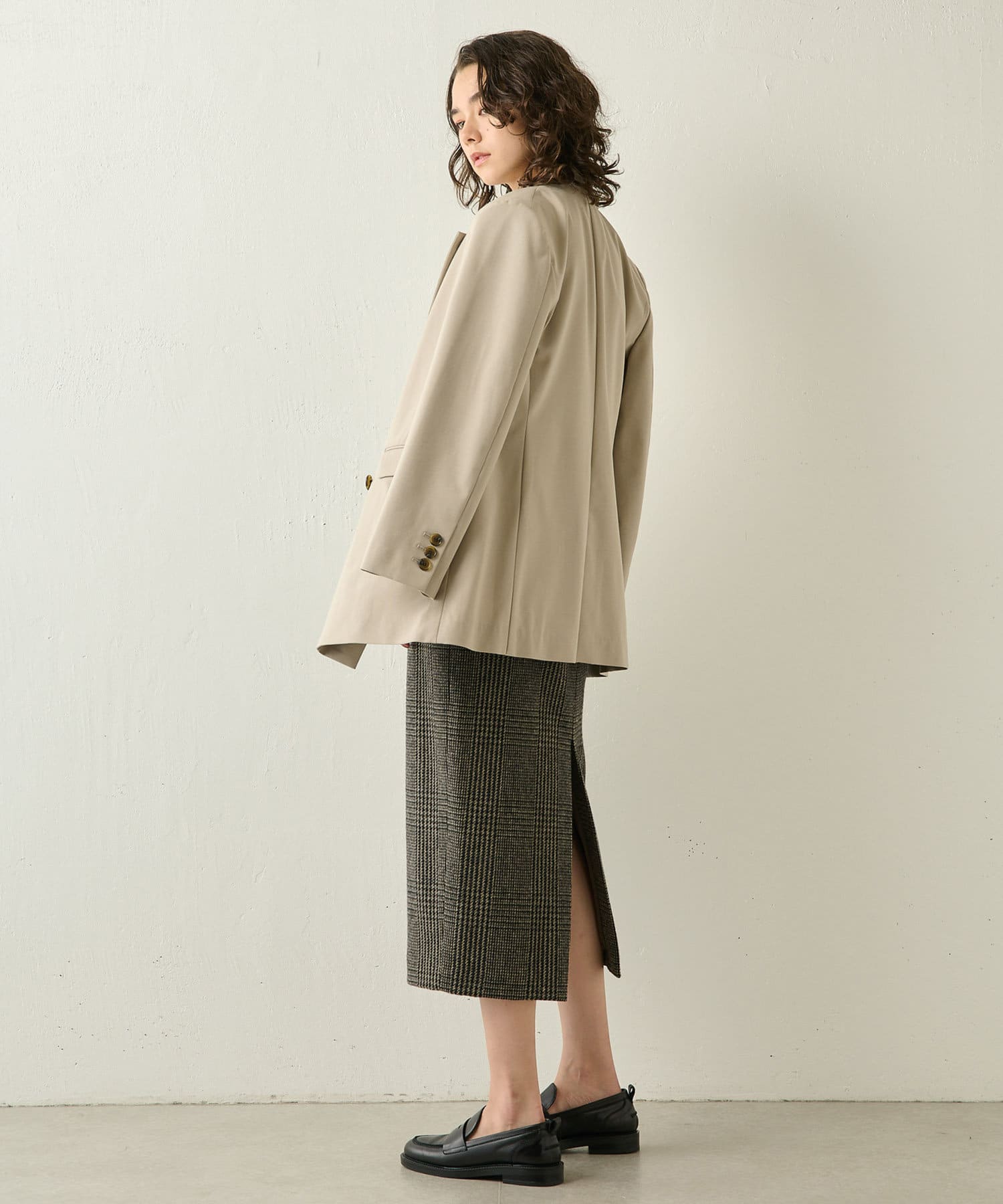■前を閉じてかっちりとした雰囲気を楽しんだり、オーバーなサイズ感を生かして前を開けてラフに羽織るスタイルもおすすめ。