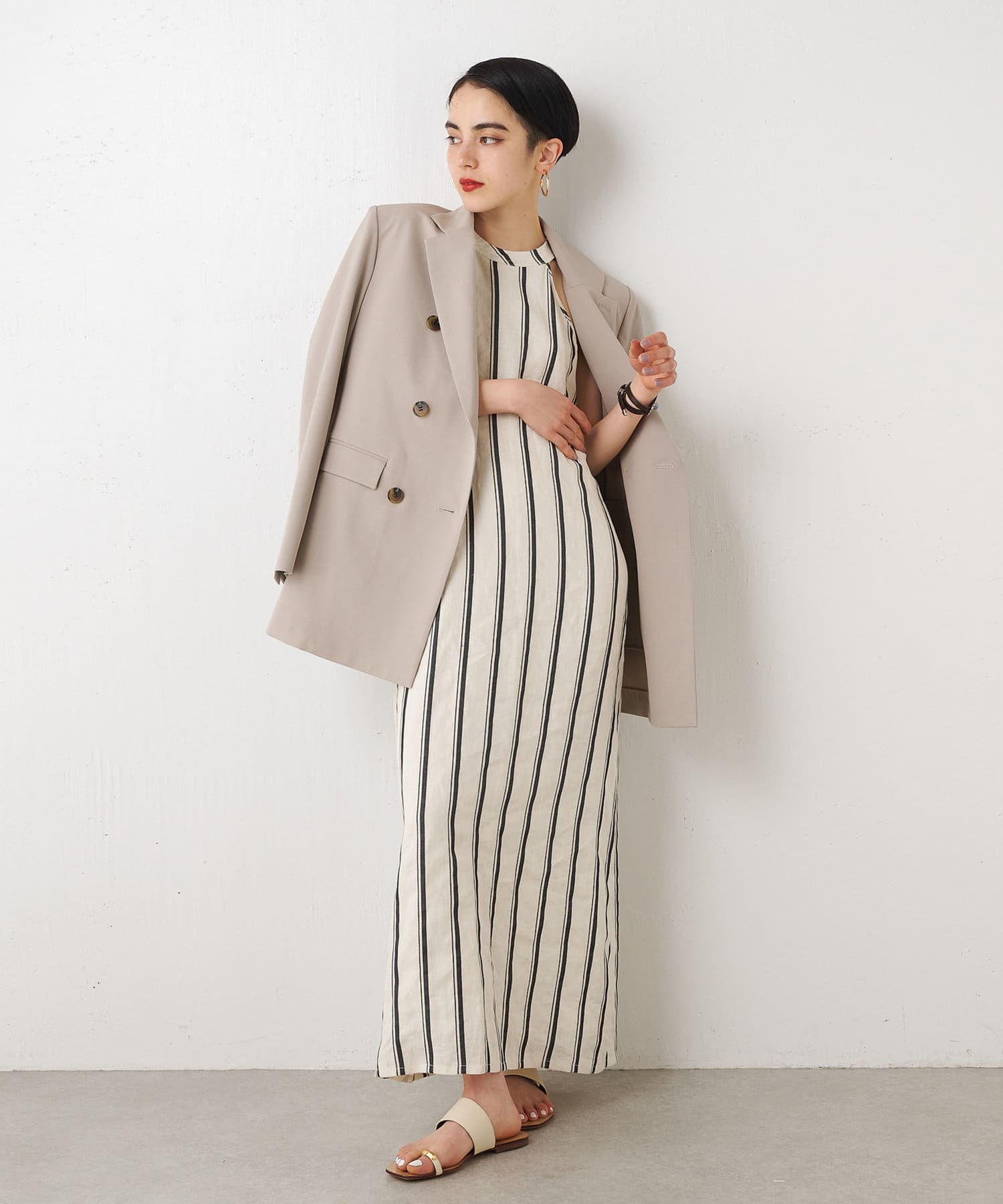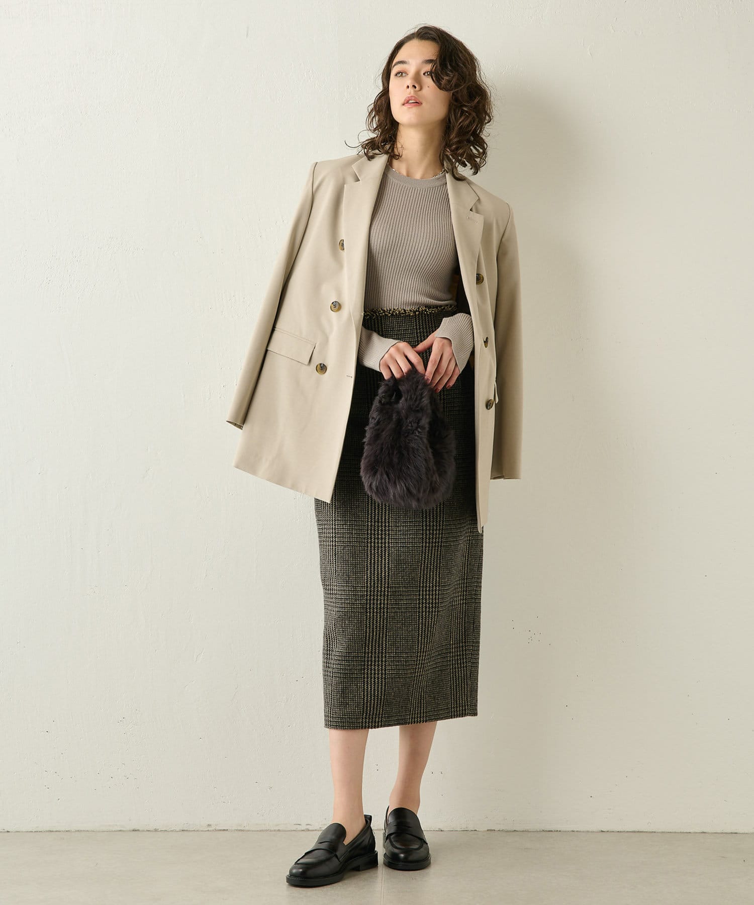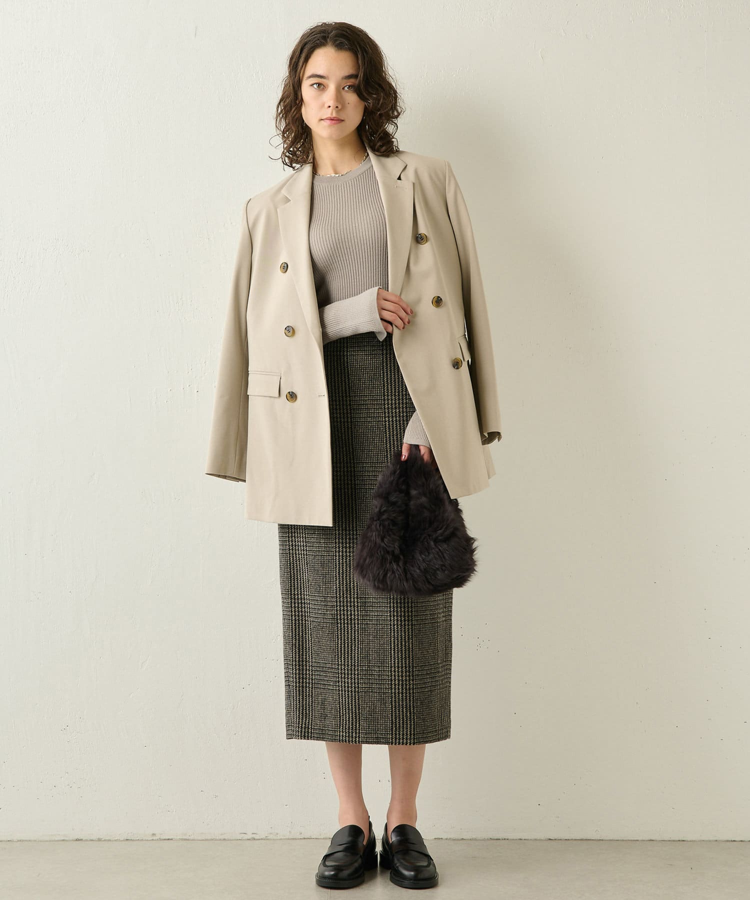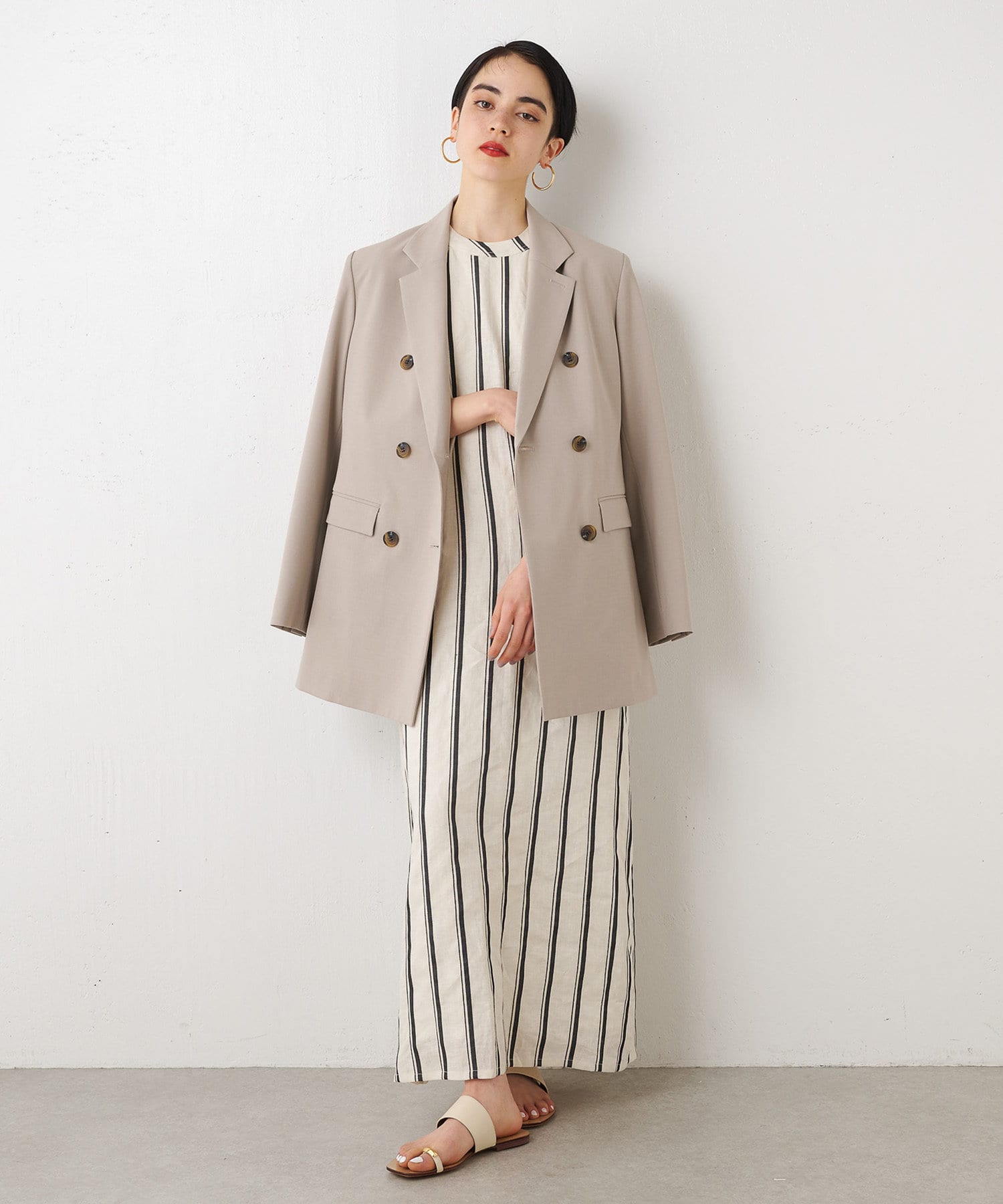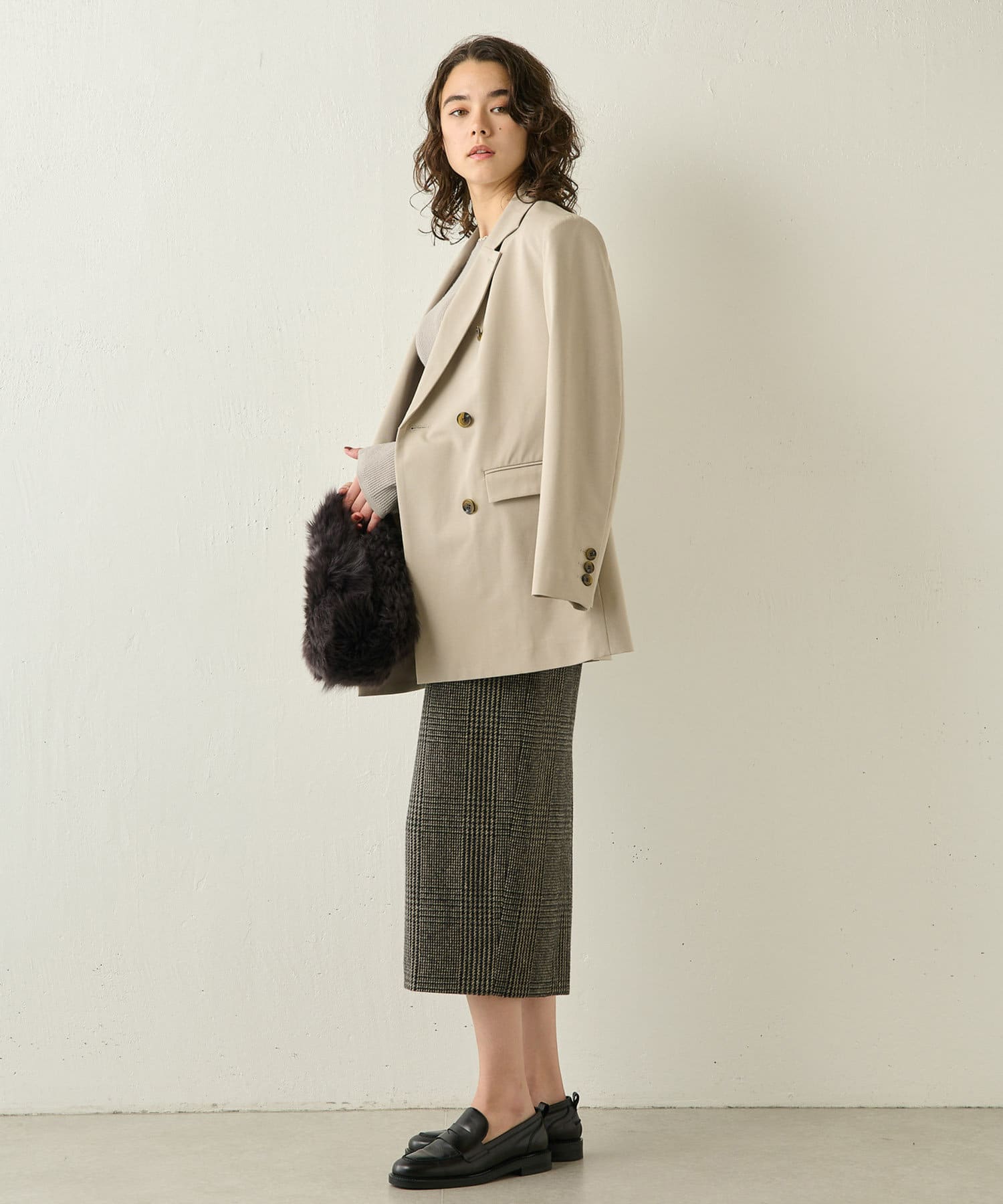 ■前を閉じてかっちりとした雰囲気を楽しんだり、オーバーなサイズ感を生かして前を開けてラフに羽織るスタイルもおすすめ。