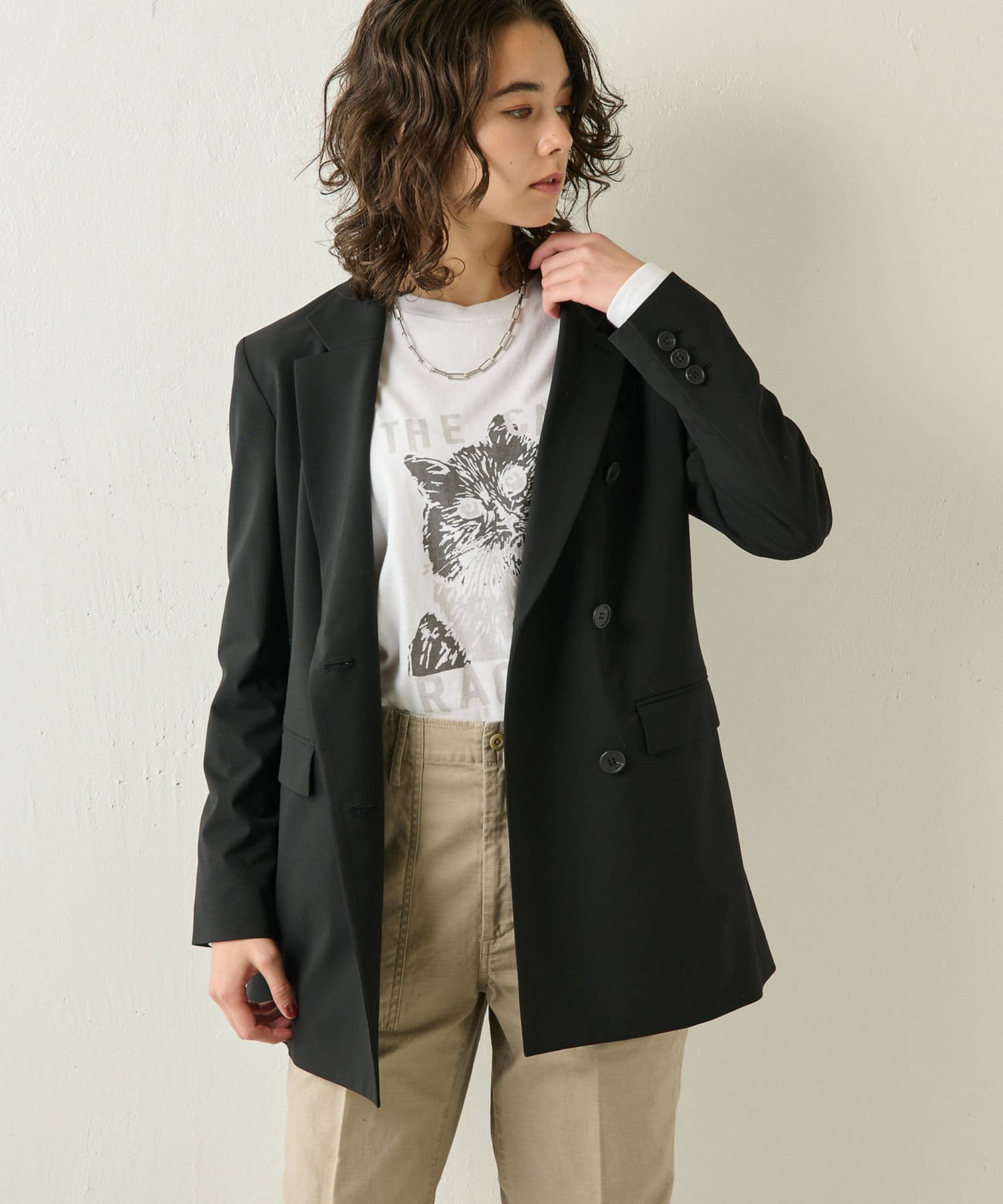 ■伸縮性と落ち感ある素材を使用したダブルストレッチジャケット。