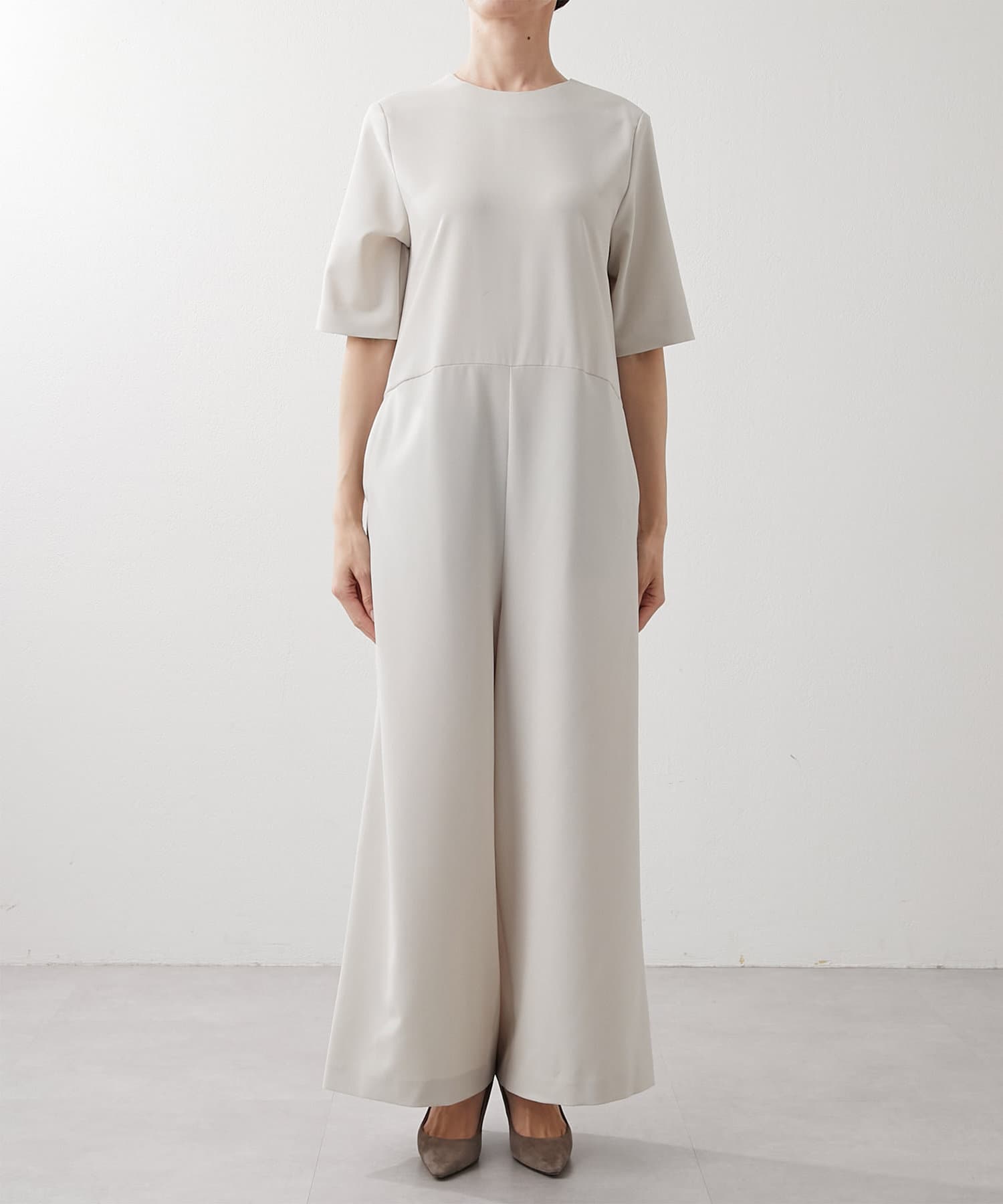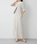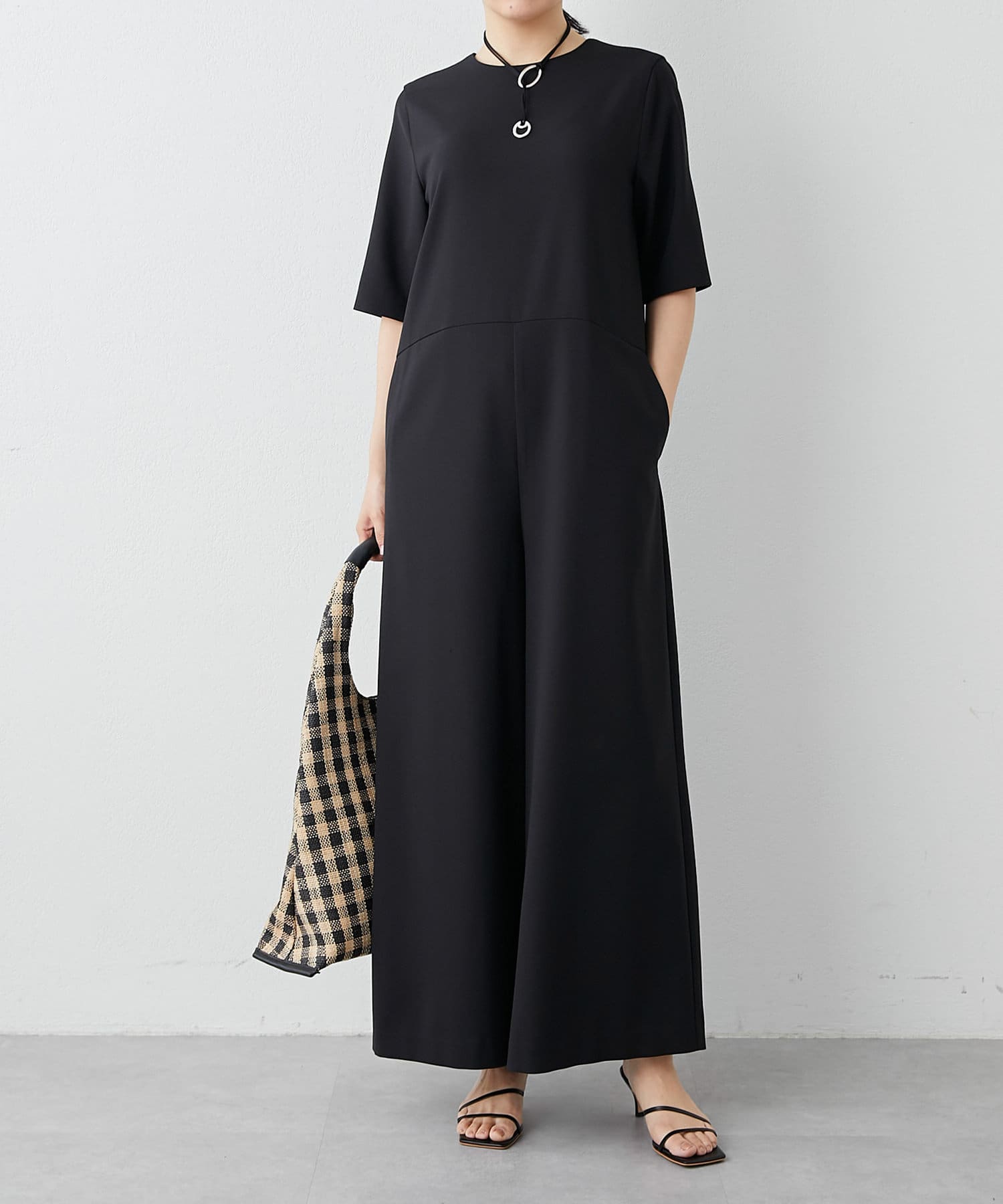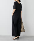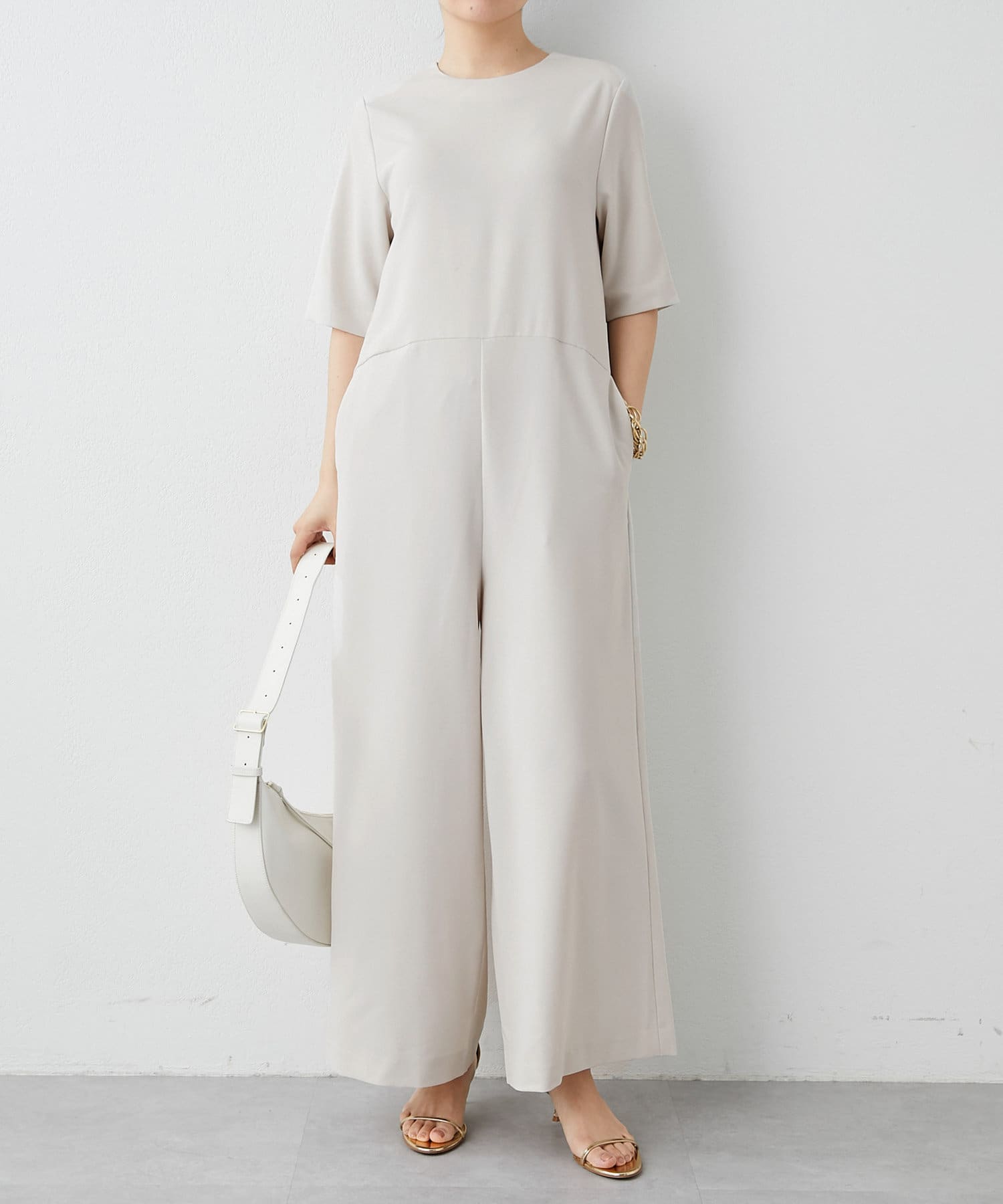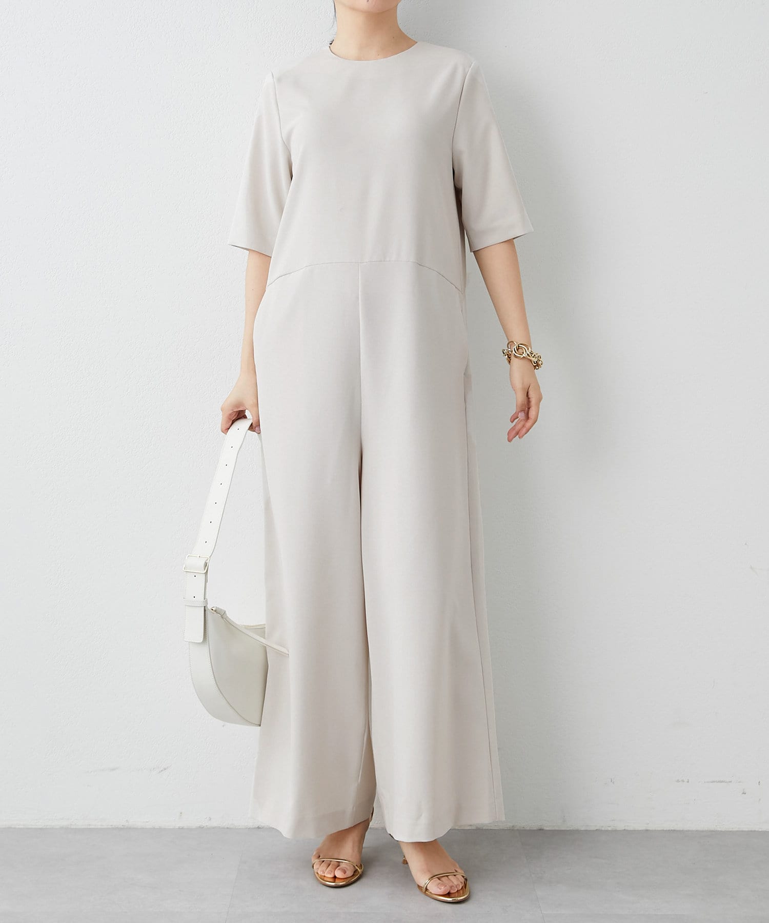 安心の長めの半袖。パンツ部分はゆったりとしたシルエットでこなれ感もプラスできます。シンプルだからこそ、小物でアレンジも効きますし、ジャケットやカーディガン合わせもおすすめです。