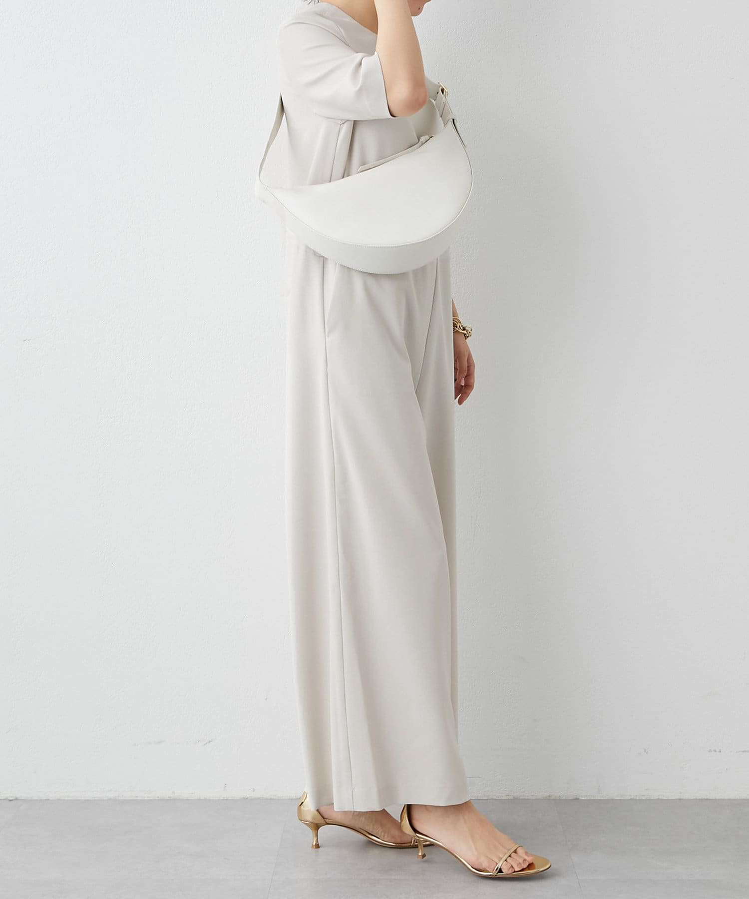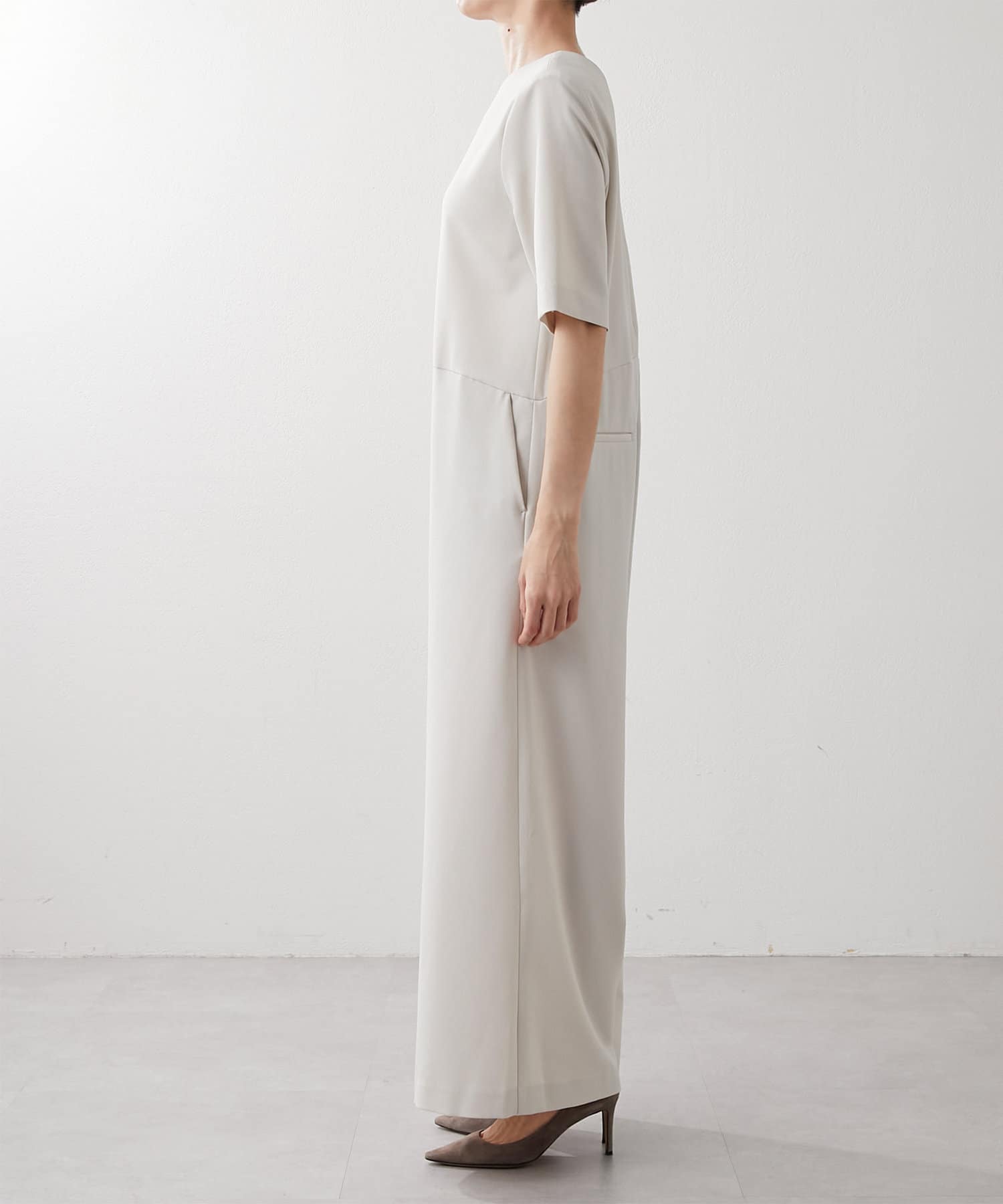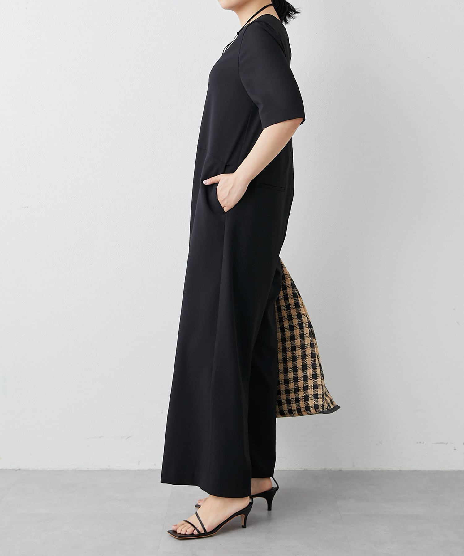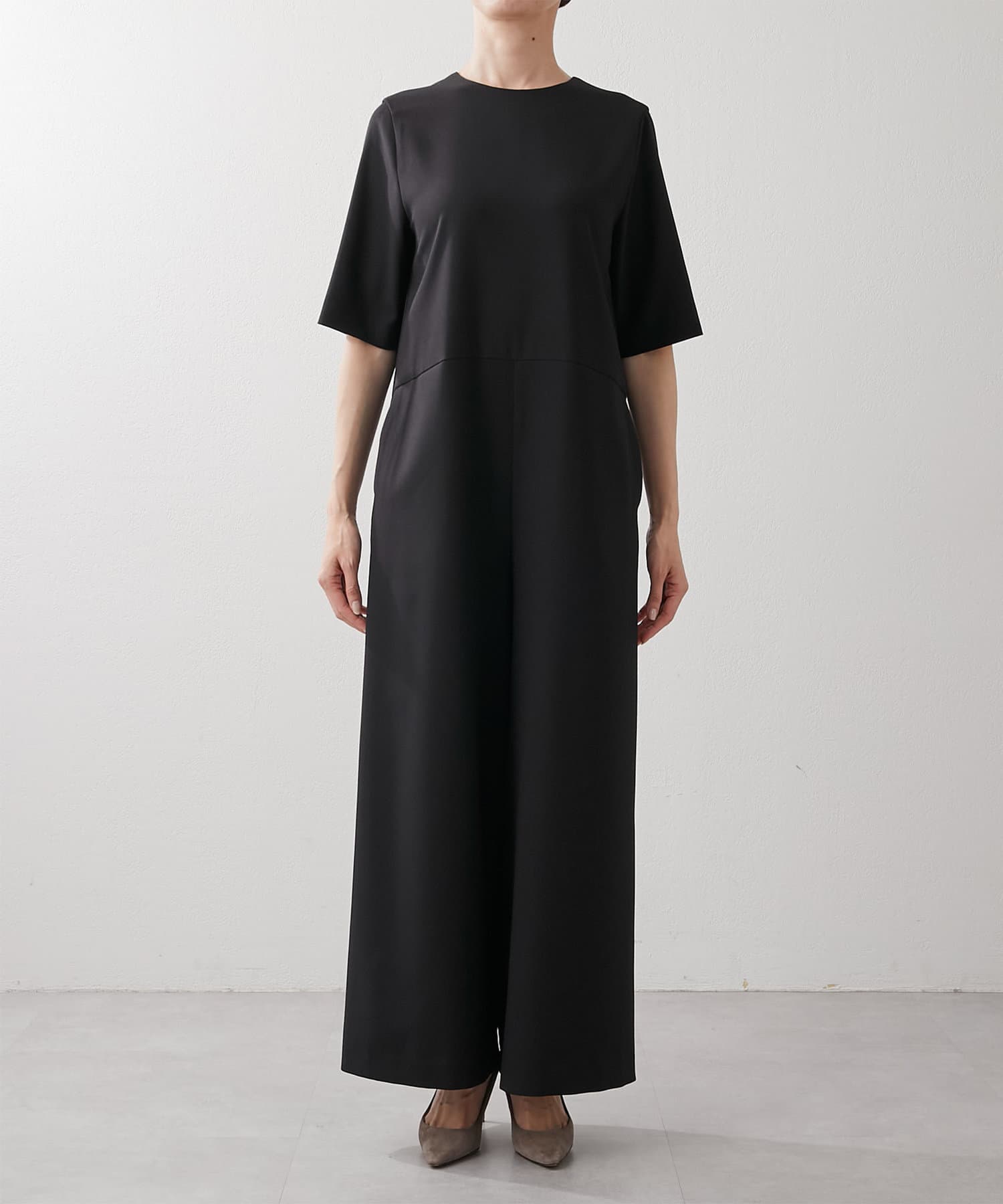 安心の長めの半袖。パンツ部分はゆったりとしたシルエットでこなれ感もプラスできます。シンプルだからこそ、小物でアレンジも効きますし、ジャケットやカーディガン合わせもおすすめです。