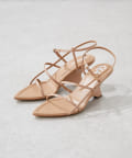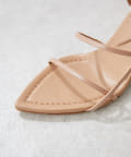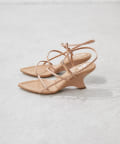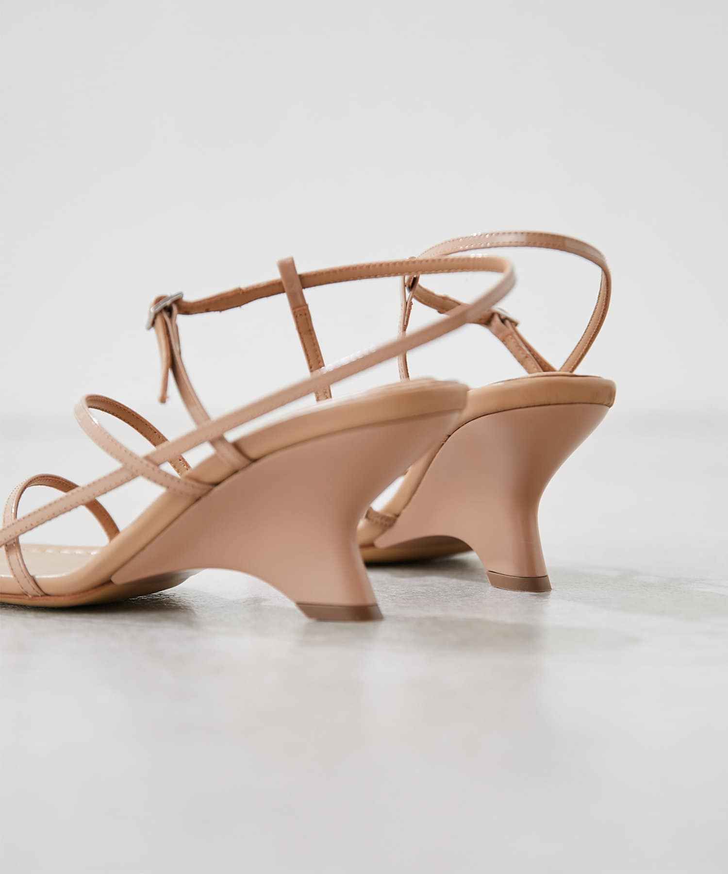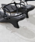 ■ポインテッドトゥとボリュームヒールのコントラストが特徴のウェッジサンダル。