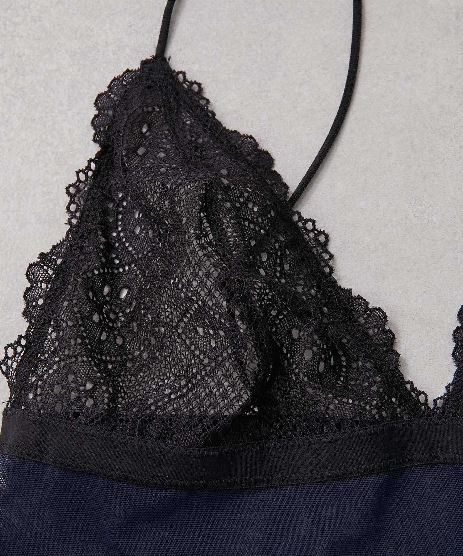 ■透け感のあるネット素材がヘルシーな印象をプラスし、ランジェリー感を抑えてデイリーにも着回しやすいデザイン。