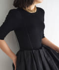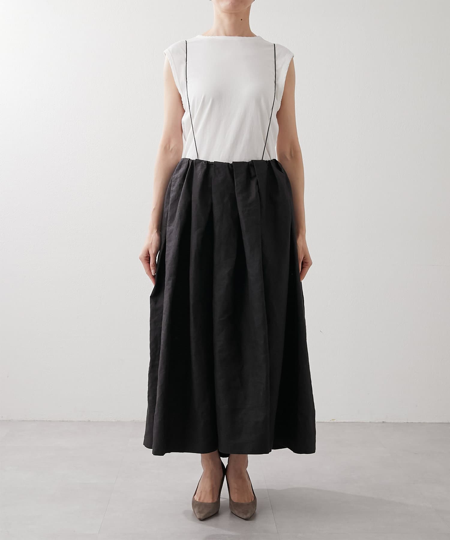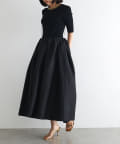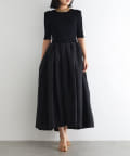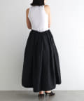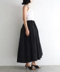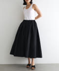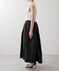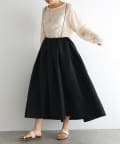■ハリ感とドライなタッチのある素材がフォルムをきれいに演出し、スタイリングを華やかに魅せてくれる着映えスカート。