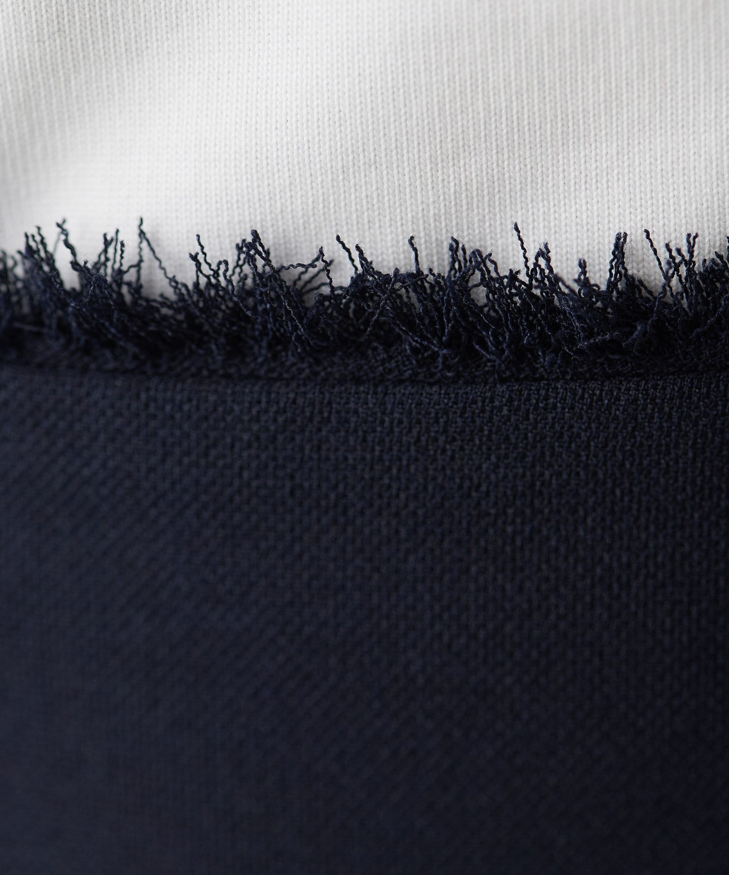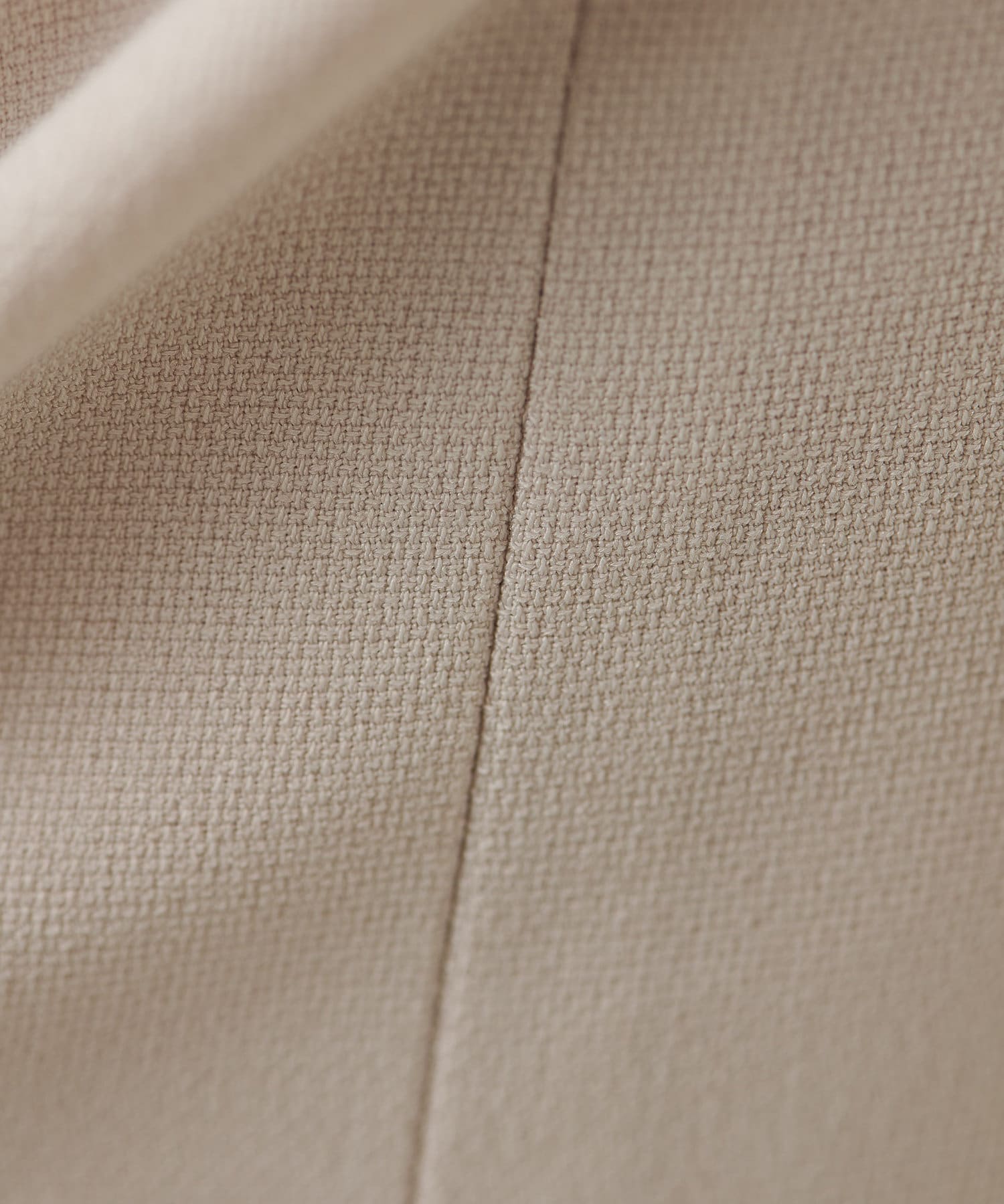 ポリエステル100%ながら、特殊な糸により麻のようなドライタッチとメランジ感を再現した素材。
