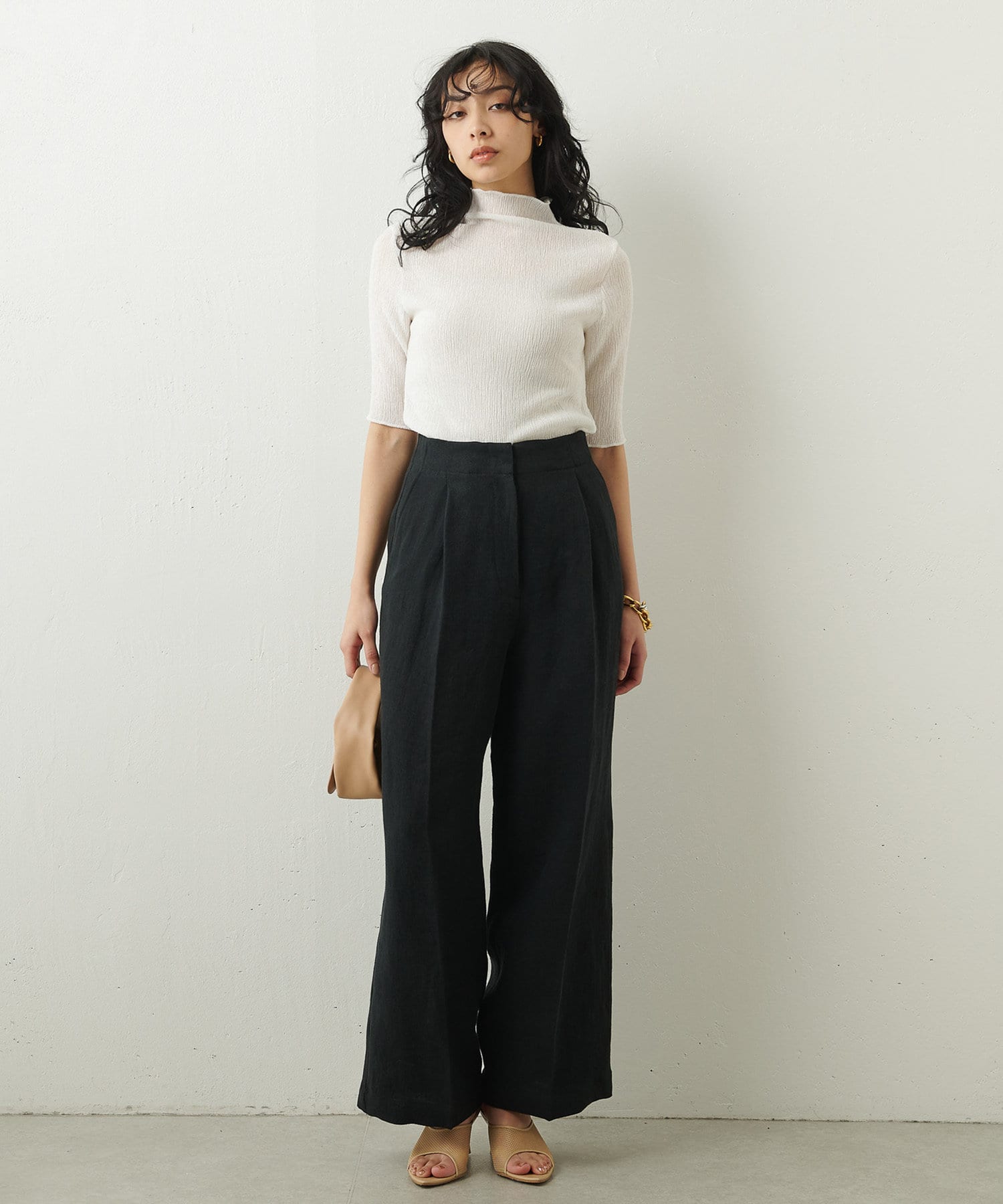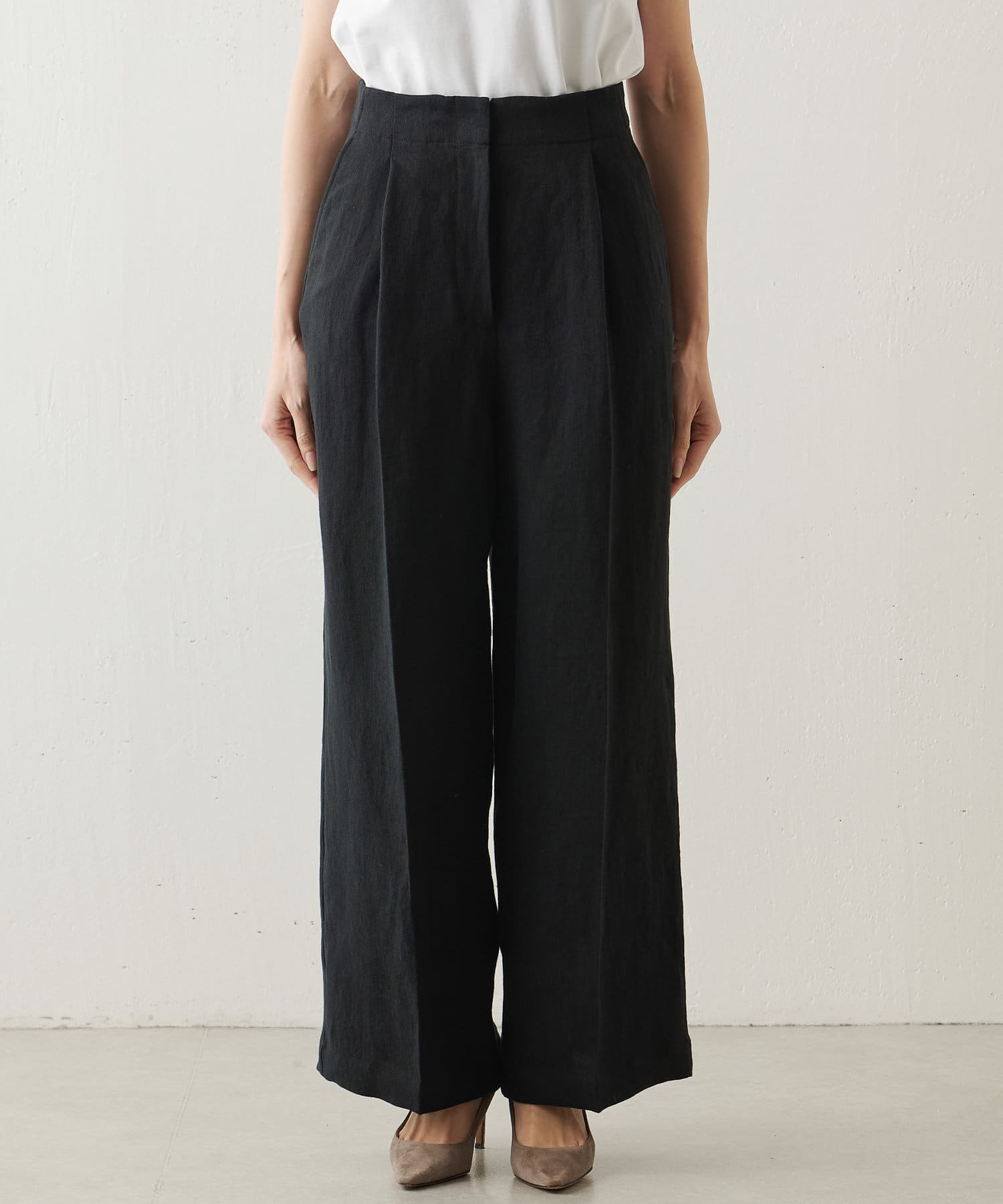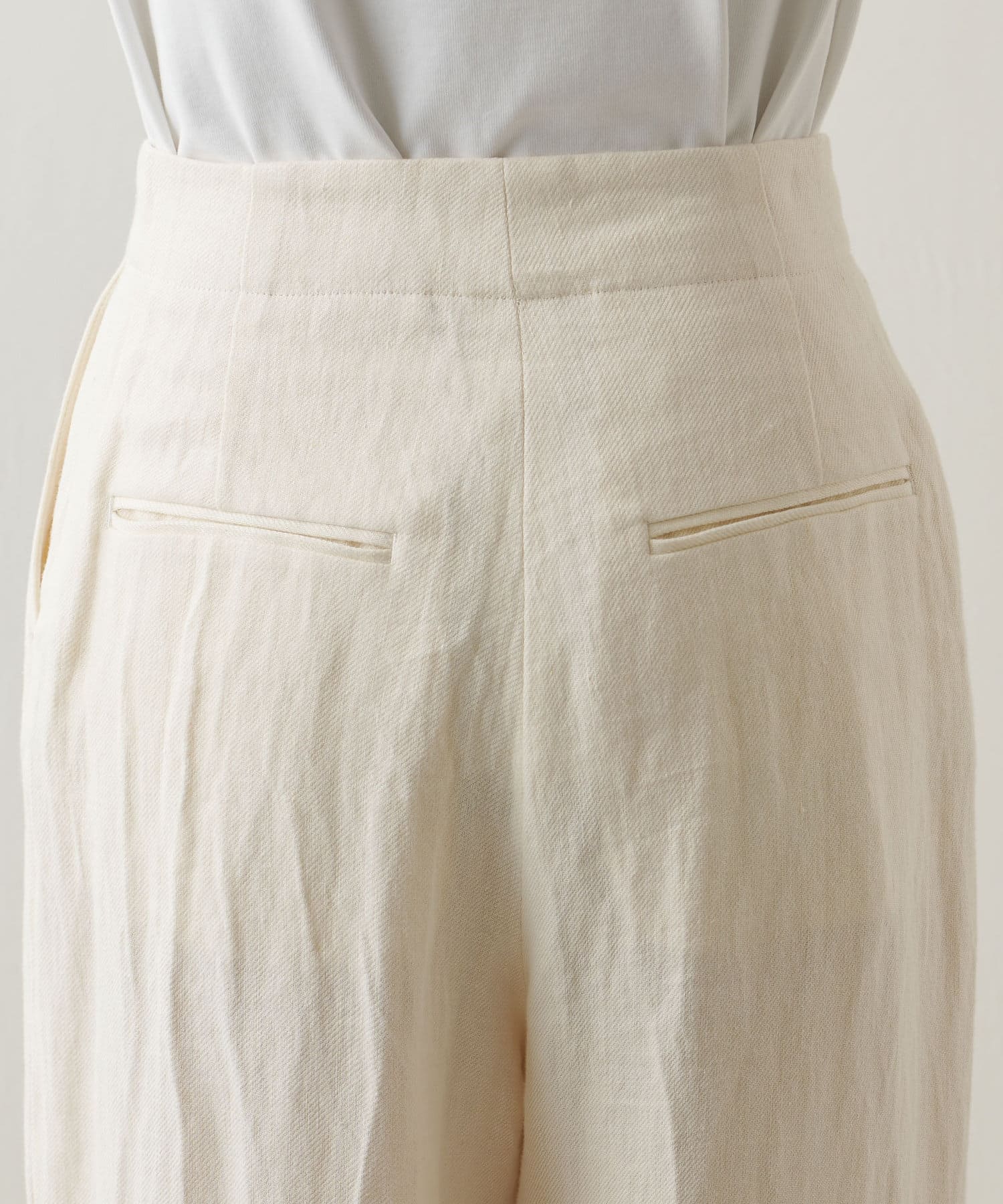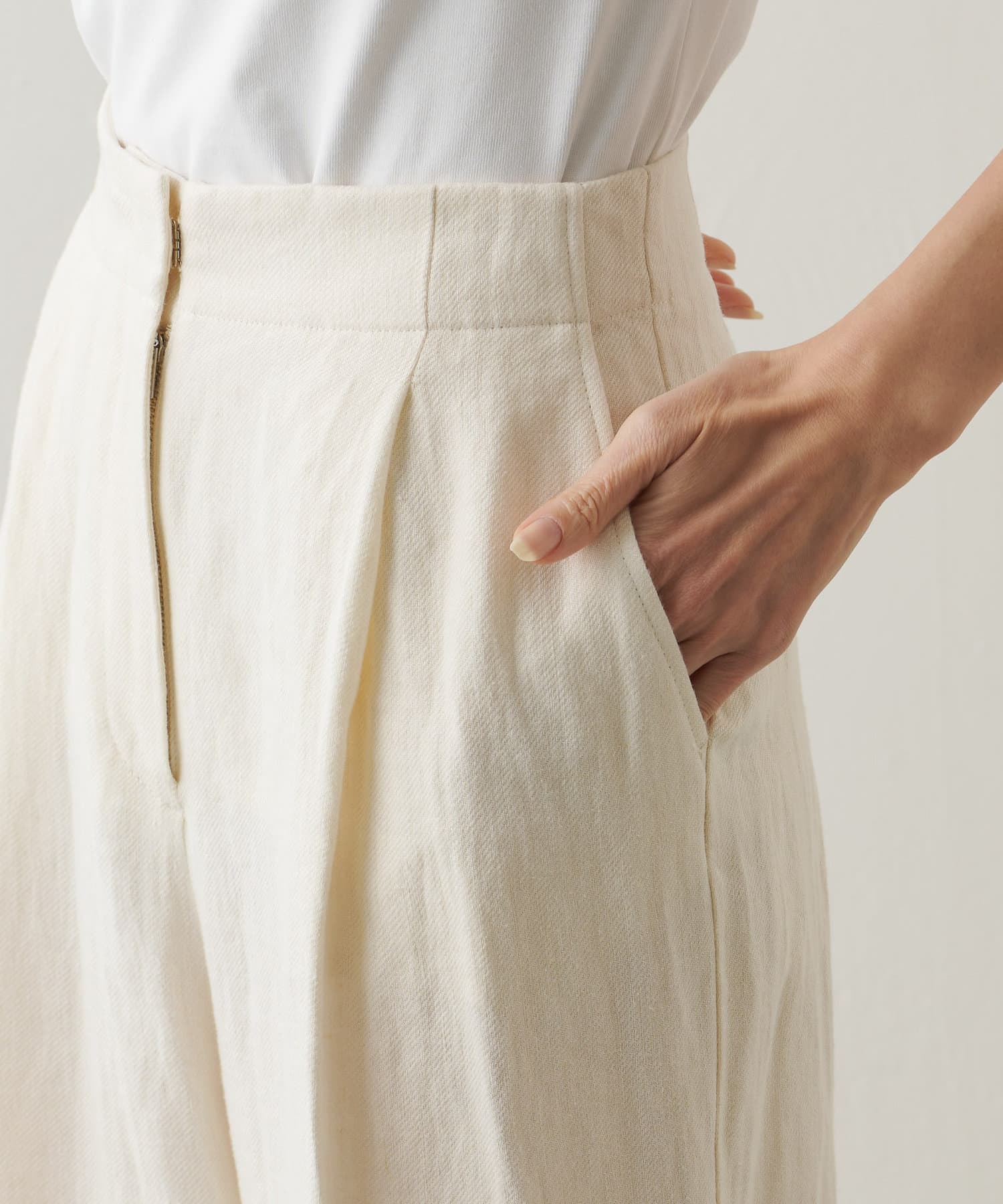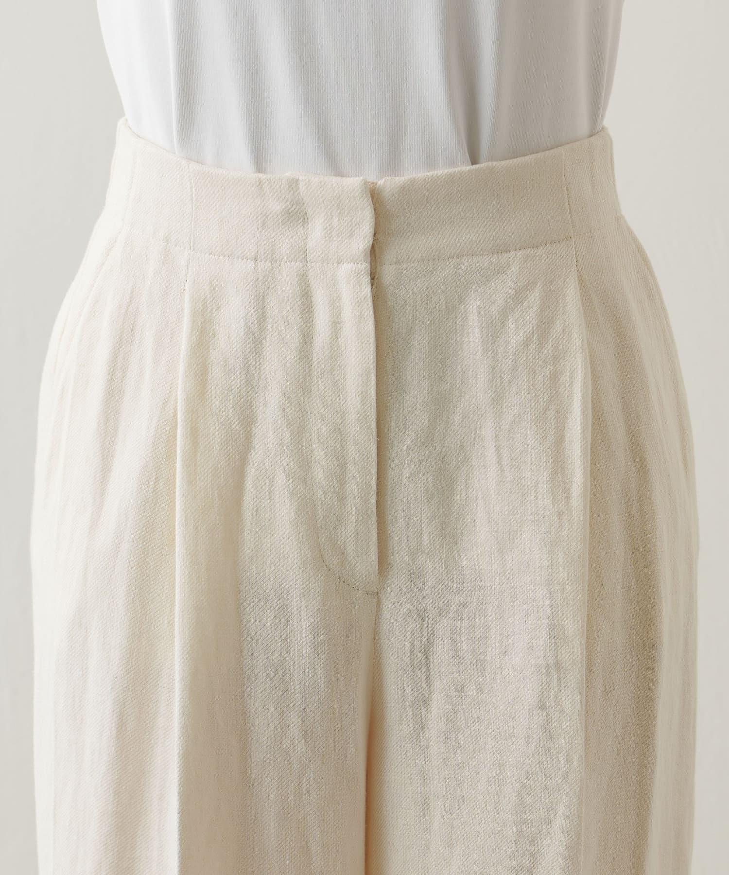 ■リネン素材で清涼感たっぷりに仕上げたタックパンツ。
