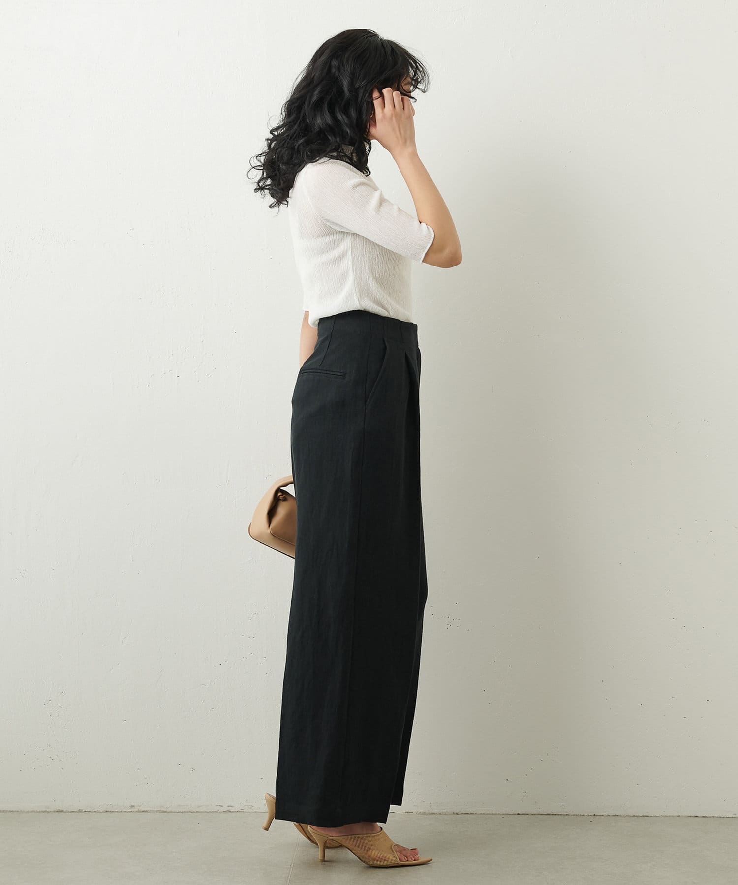 大人のこなれ感を演出する、美脚リネンワイドパンツ
