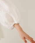 ■袖や裾にたっぷりとギャザーを入れたフェミニンなデザインがポイント。