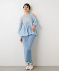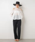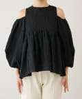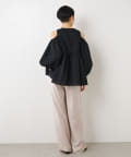 ■ボリューム感がありながら、デコルテとバストはすっきりと、オープンショルダーで抜け感をプラスし着太りしないシルエットに。