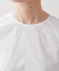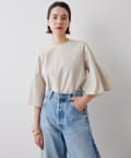 二の腕の中間部分からデザインが入っているので、肩が華奢見えします。詰まりすぎないクルーネックで顔まわりをすっきりと見せてくれるのも嬉しいポイントです。
