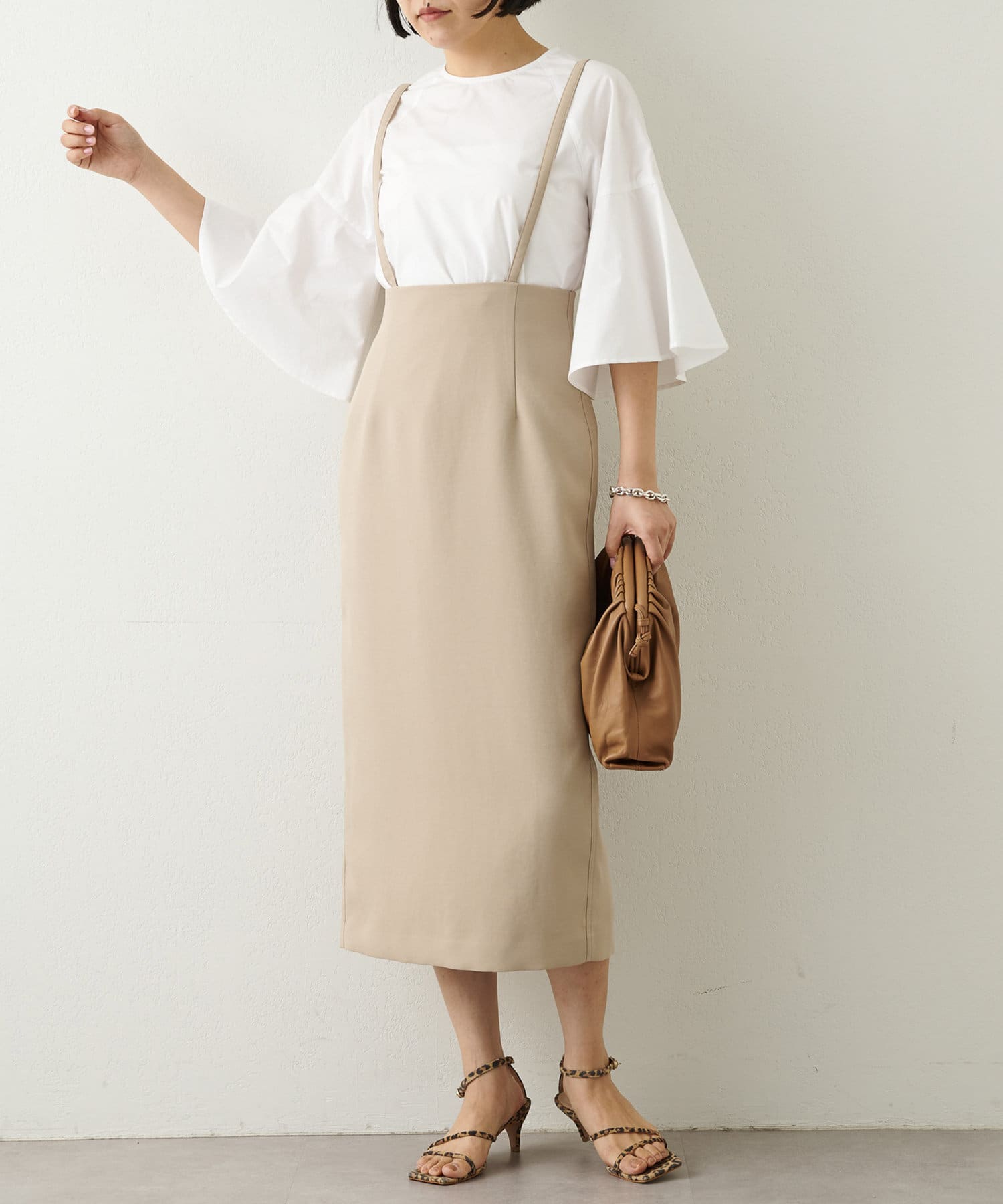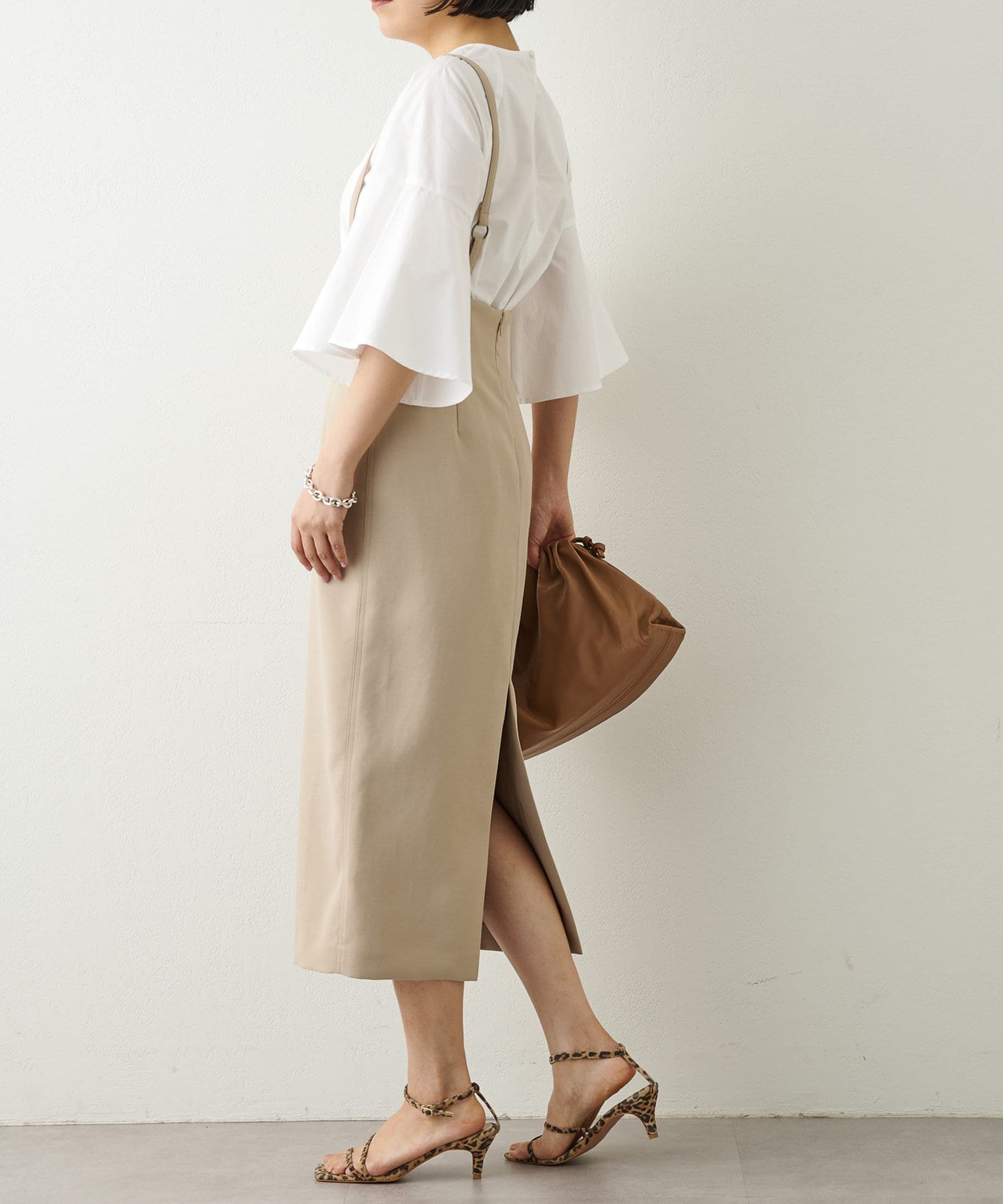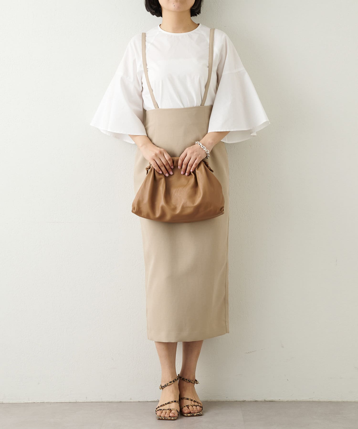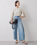 気になる二の腕周りをカバーしつつ、手首を華奢に見せてくれます。長めの着丈なのでインして着るのもおすすめです!