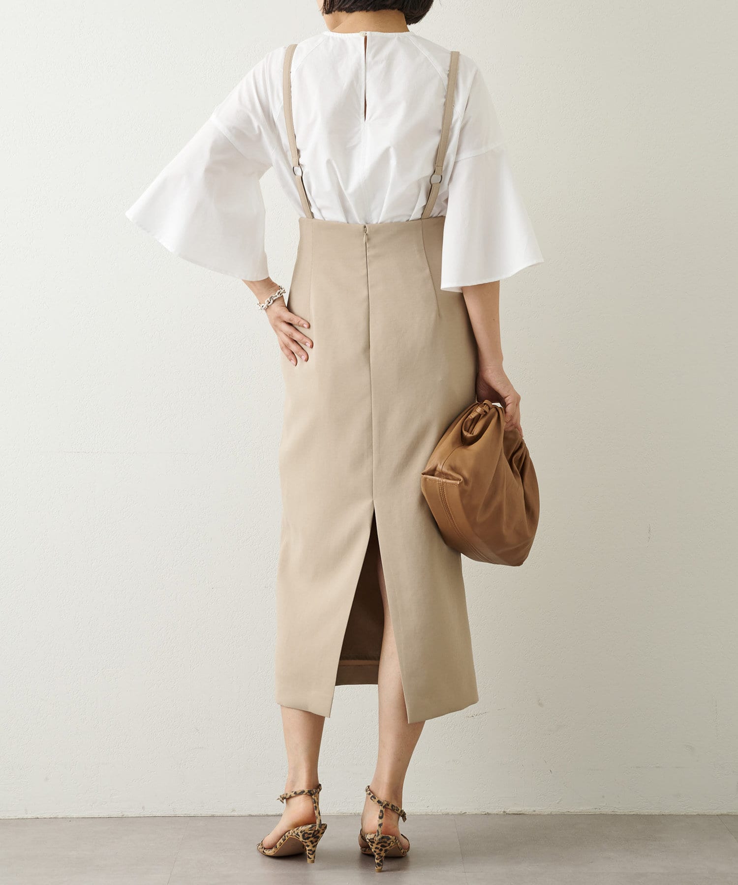 ■程よく詰まったクルーネックがこなれた印象を叶え、背中のスリットが女性らしさも演出。