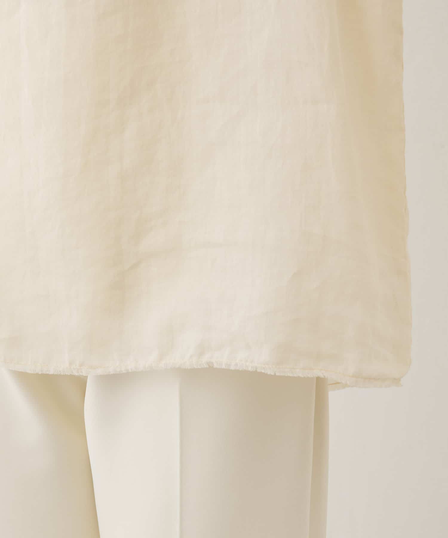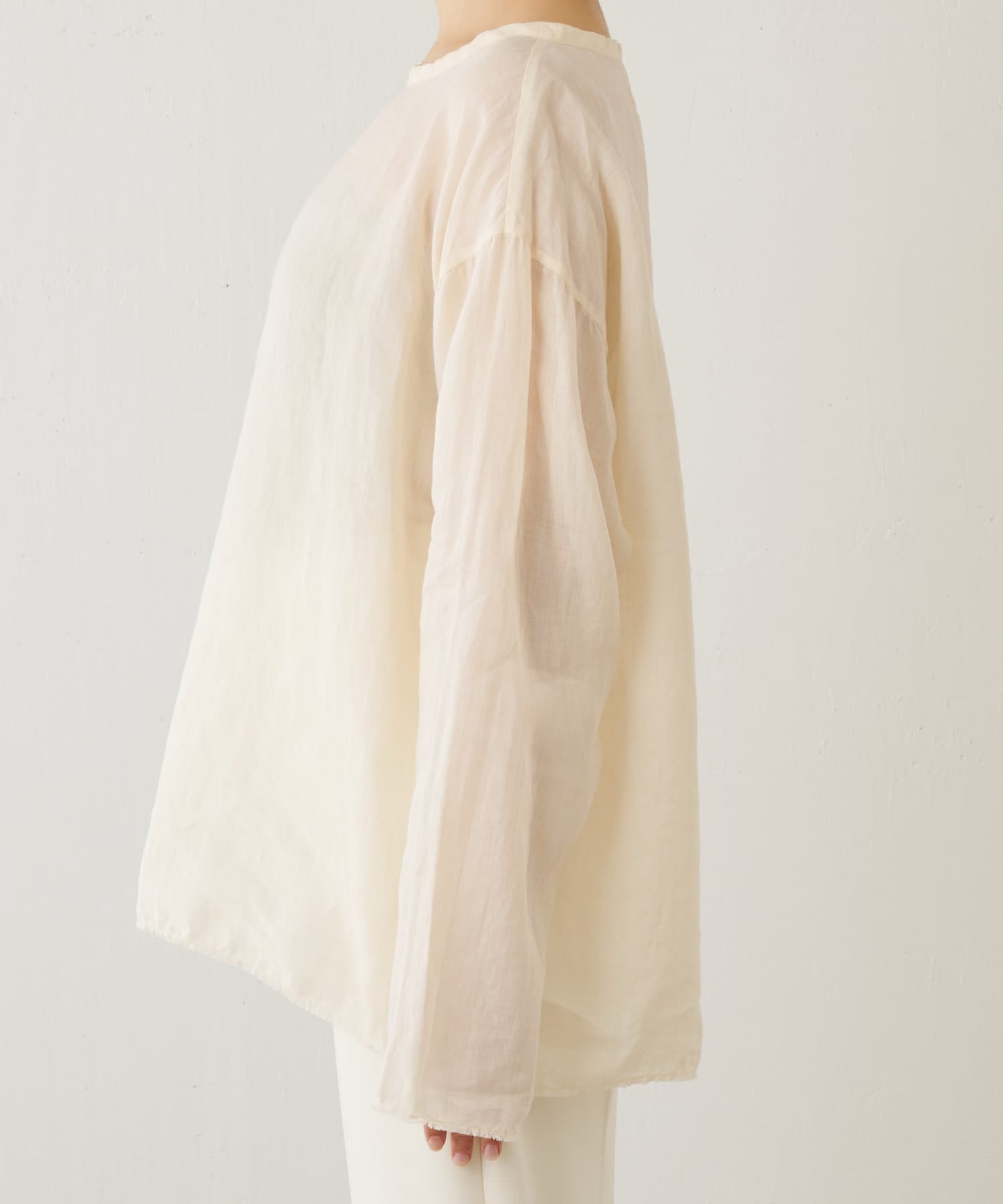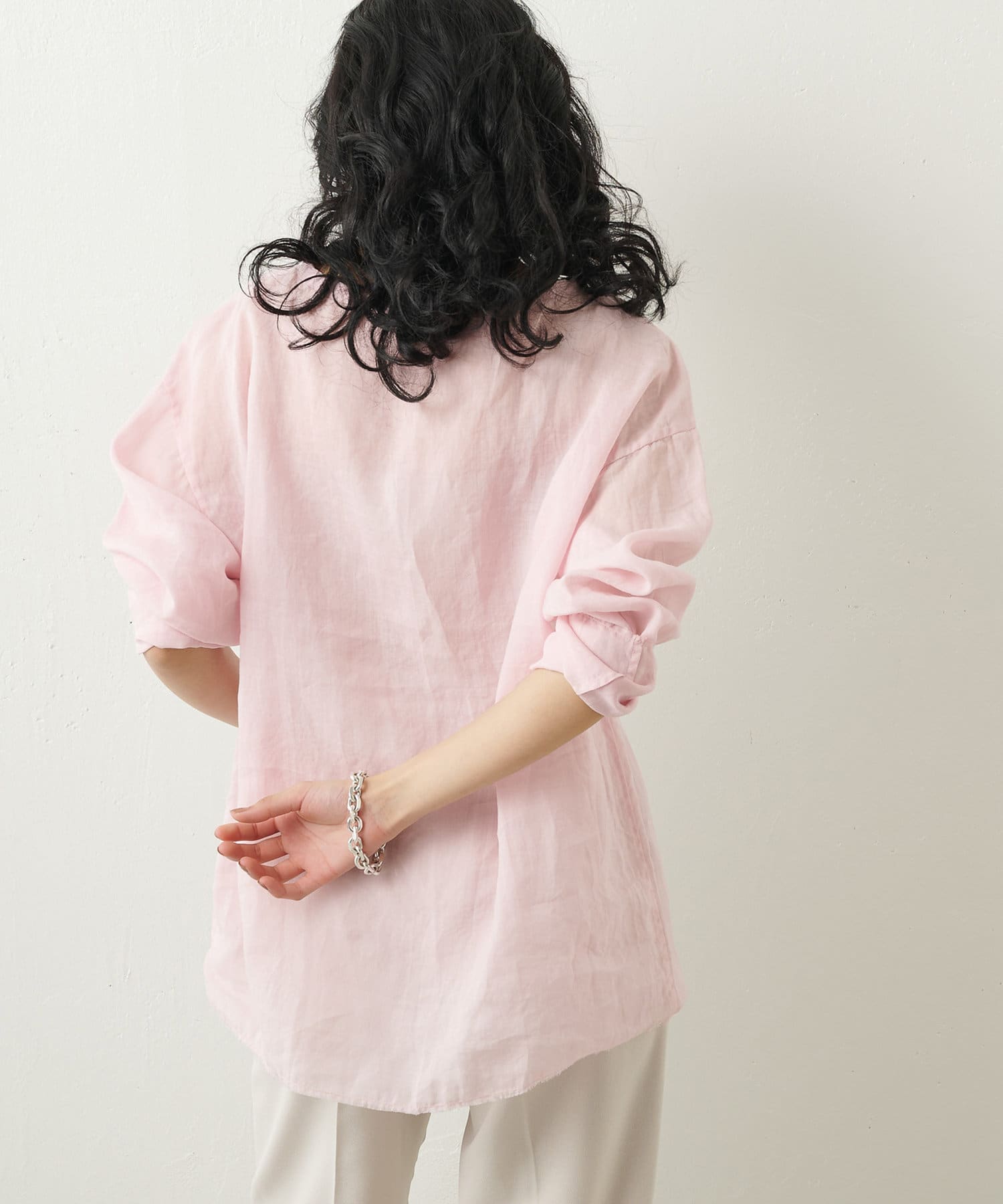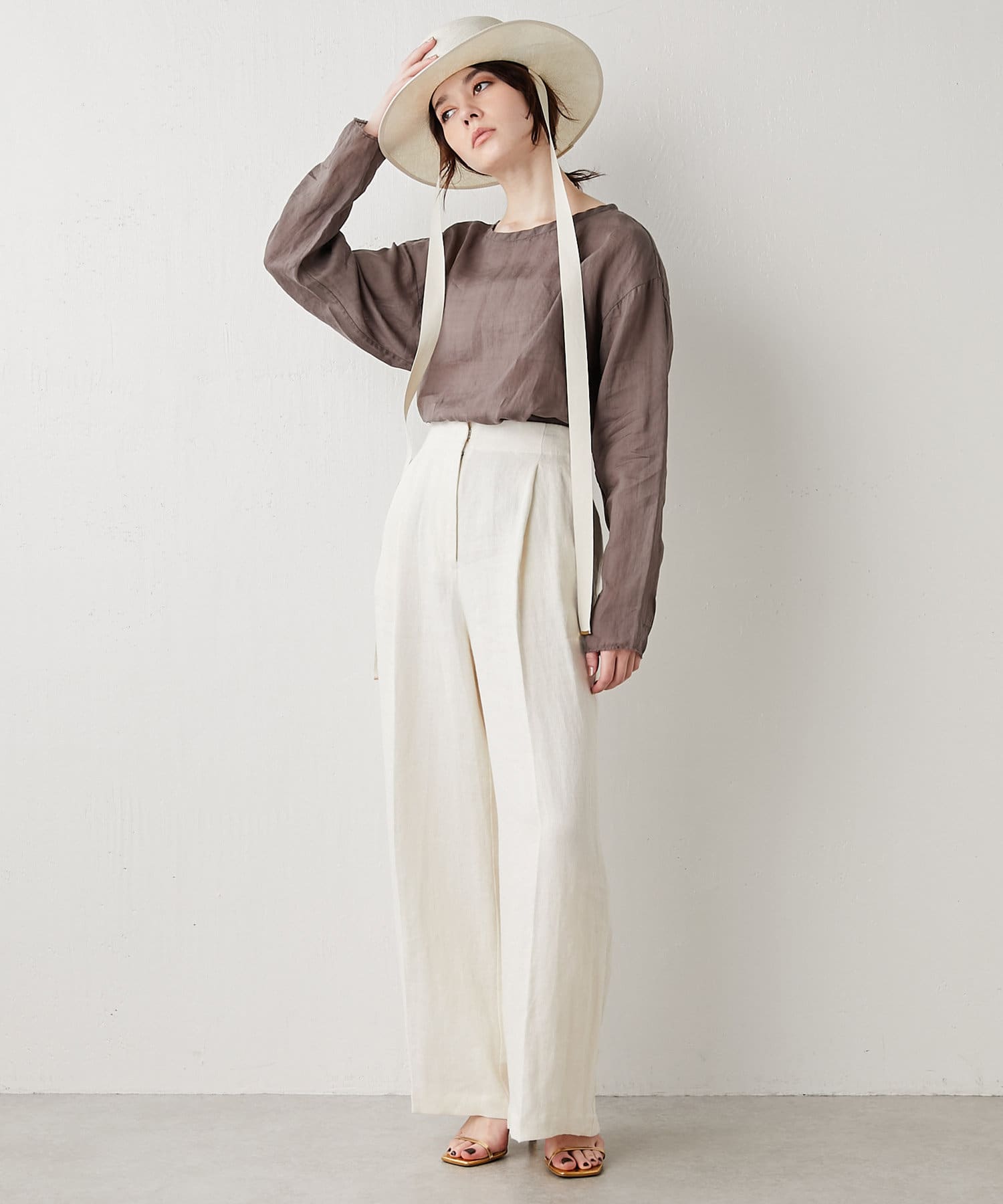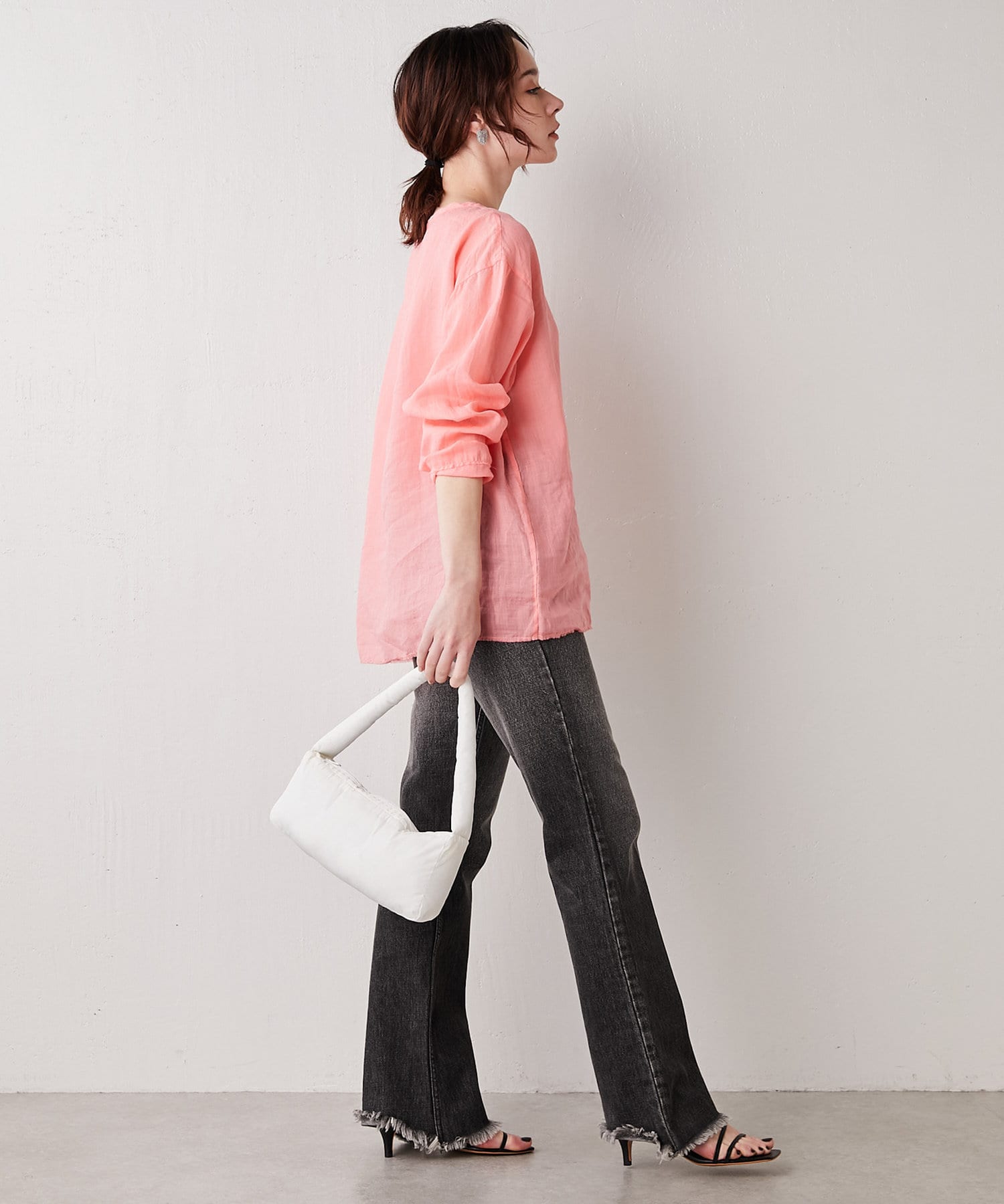 麻というとチクチクしたりするイメージもありますが、このブラウスはくたっとした加工が施されていて柔らかく、肌触りもとても優しいです!春や秋はインナーに長袖をレイヤードすれば長いシーズン使えるのも魅力です!