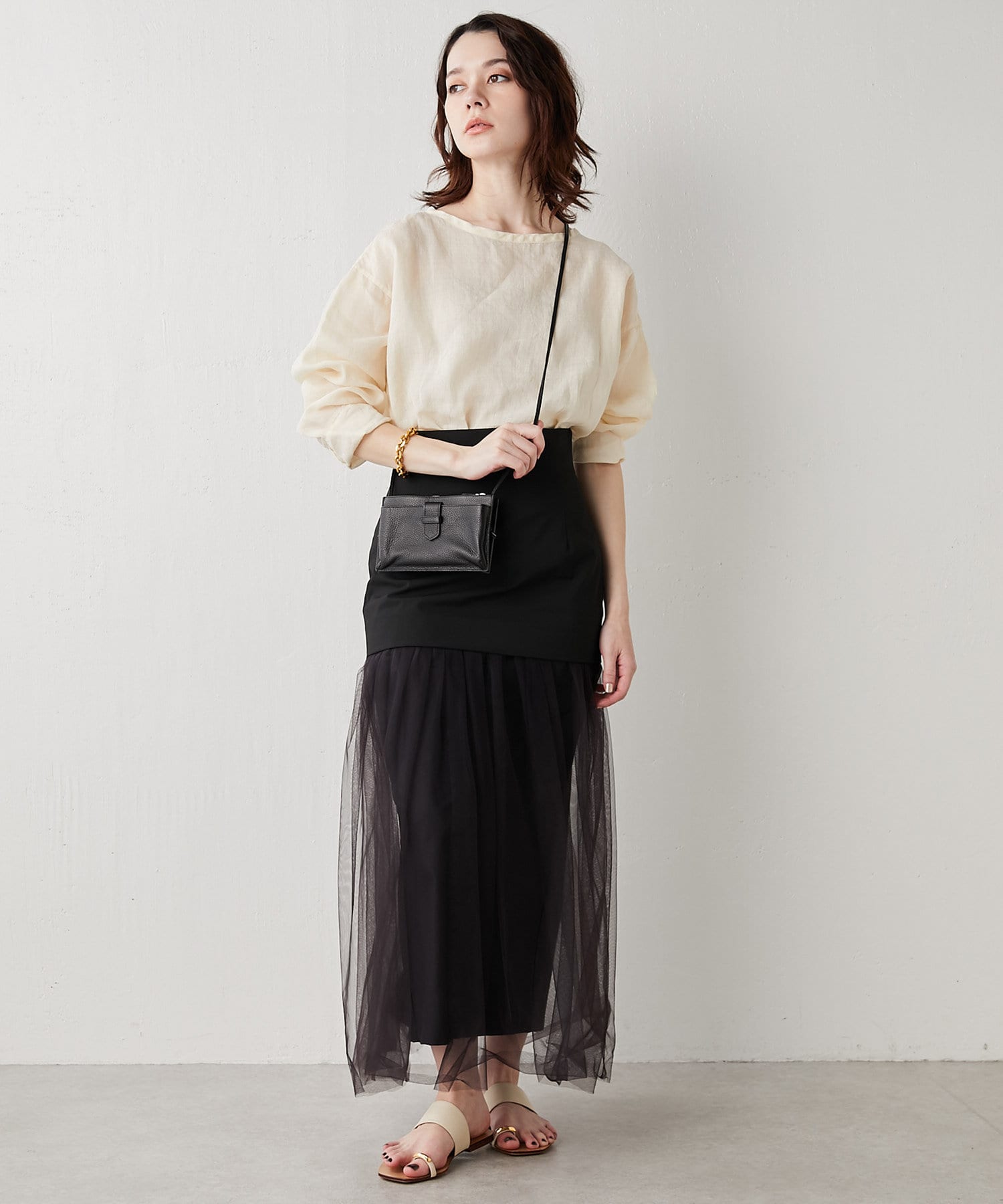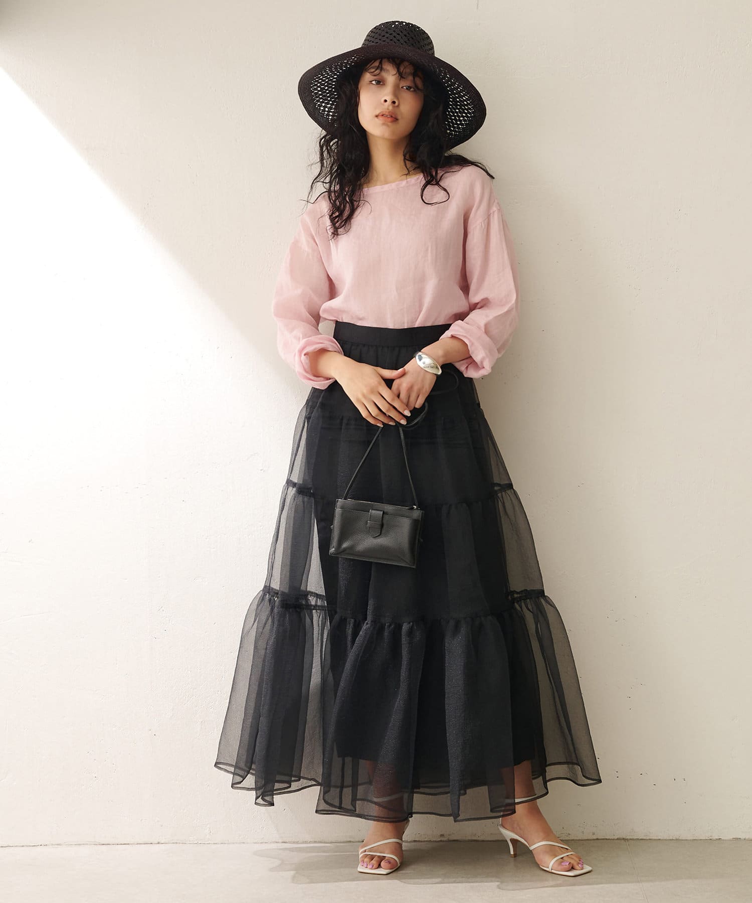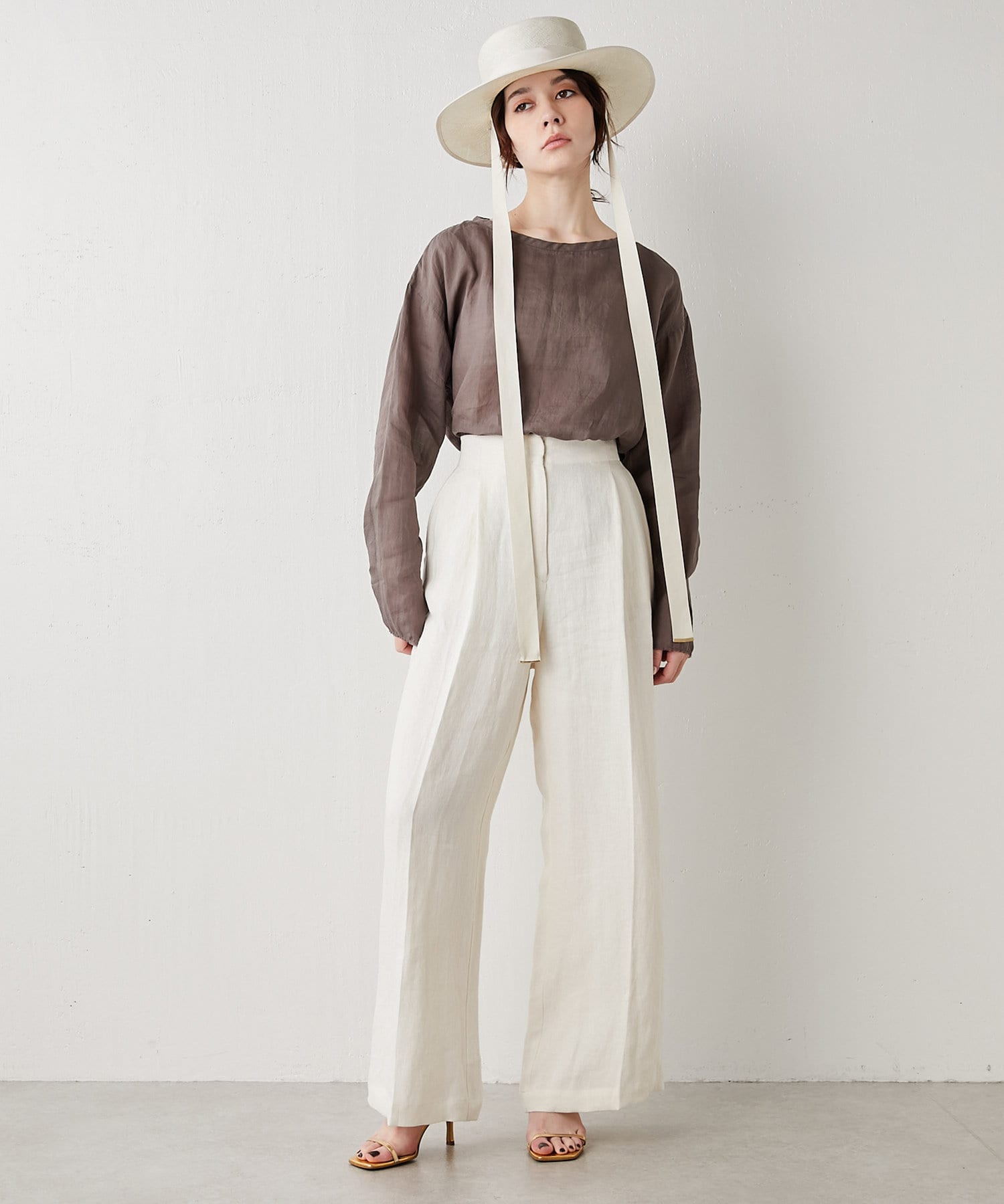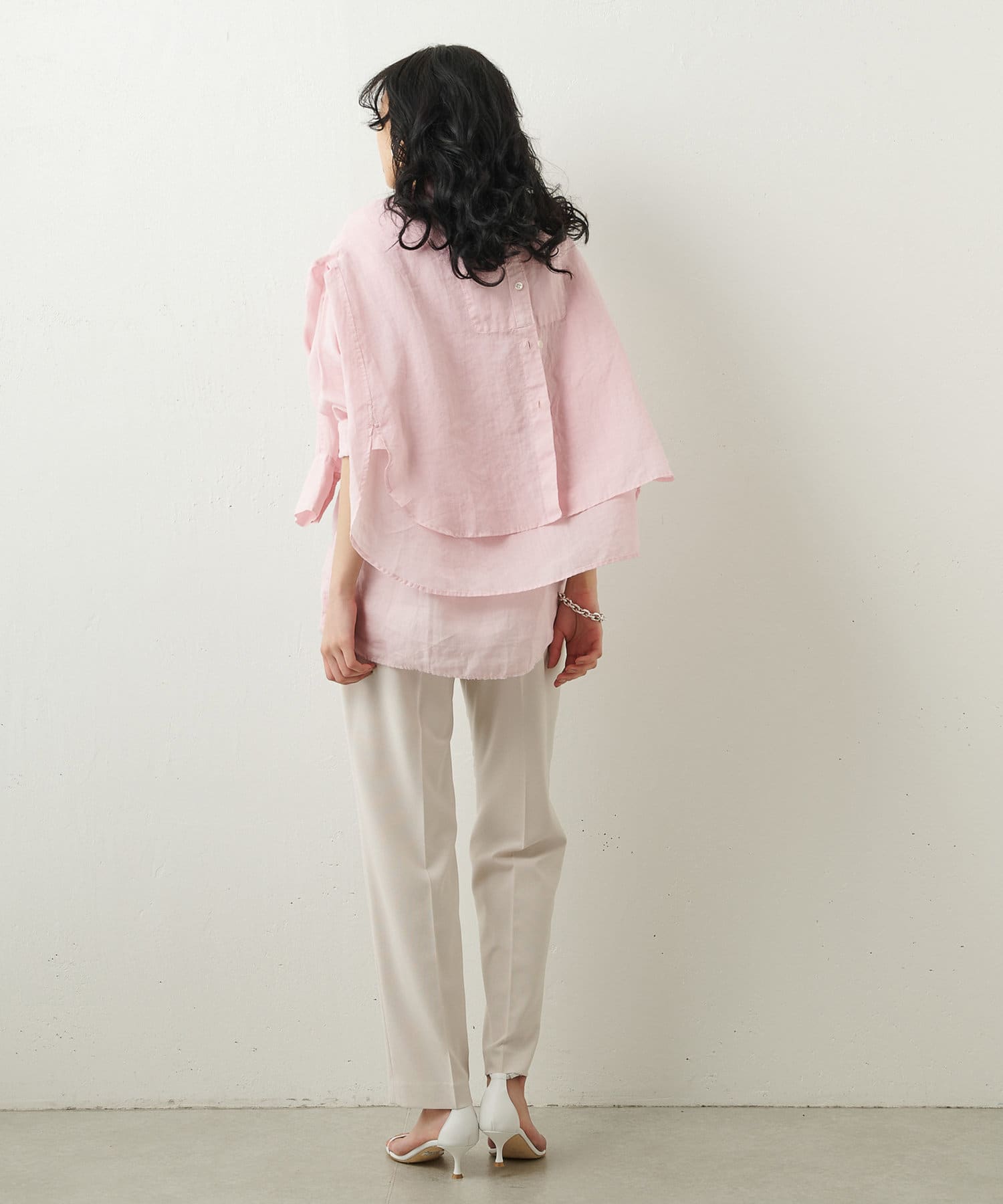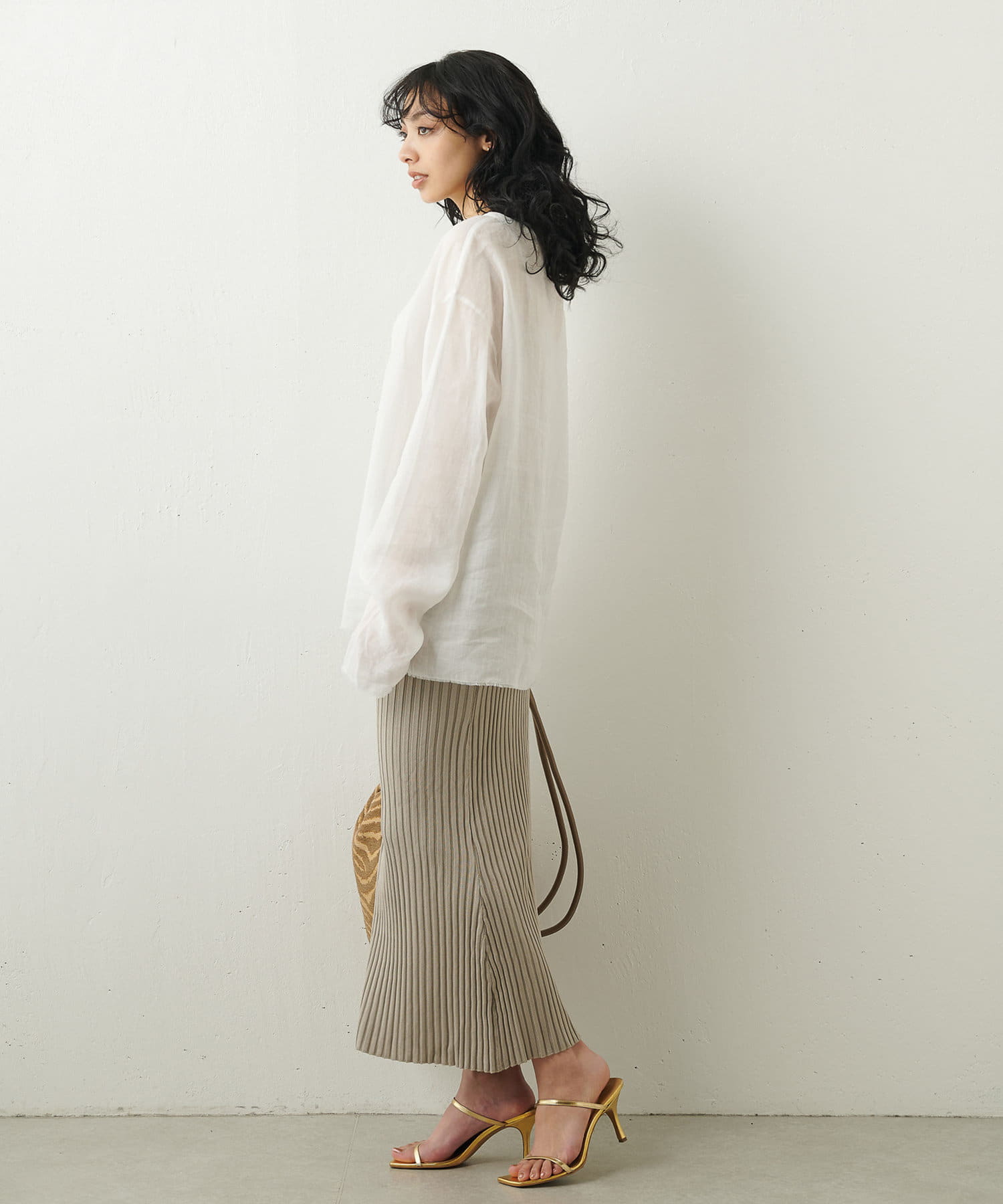 麻というとチクチクしたりするイメージもありますが、このブラウスはくたっとした加工が施されていて柔らかく、肌触りもとても優しいです!春や秋はインナーに長袖をレイヤードすれば長いシーズン使えるのも魅力です!