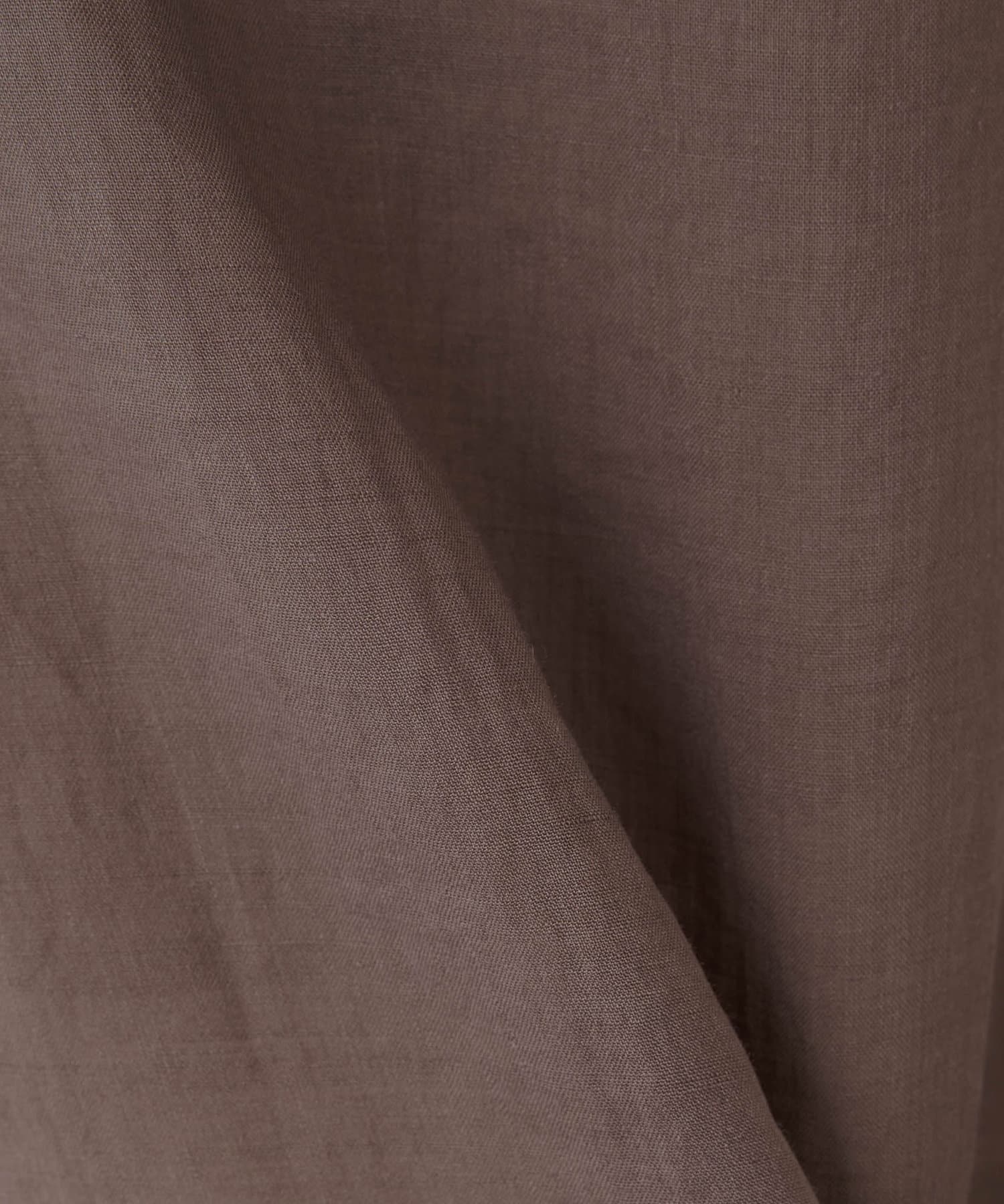 カジュアルすぎない程よい光沢とハリ感がポイントの、珍しい高番手のラミー素材を製品染めした素材。
