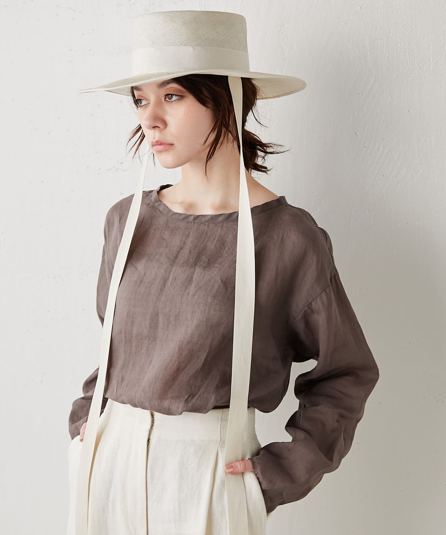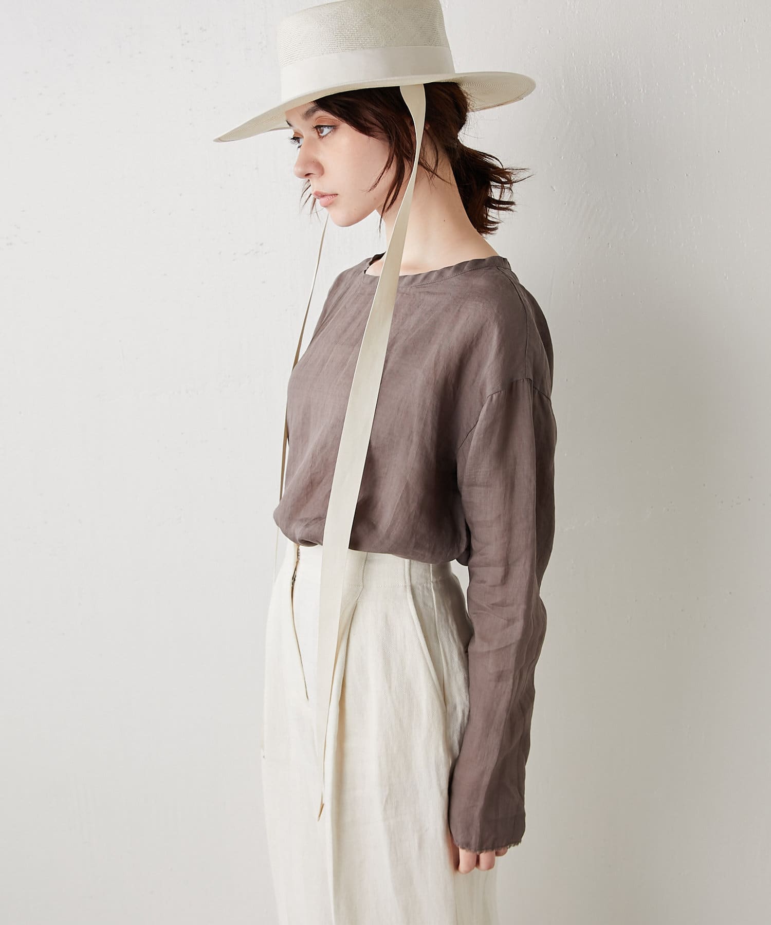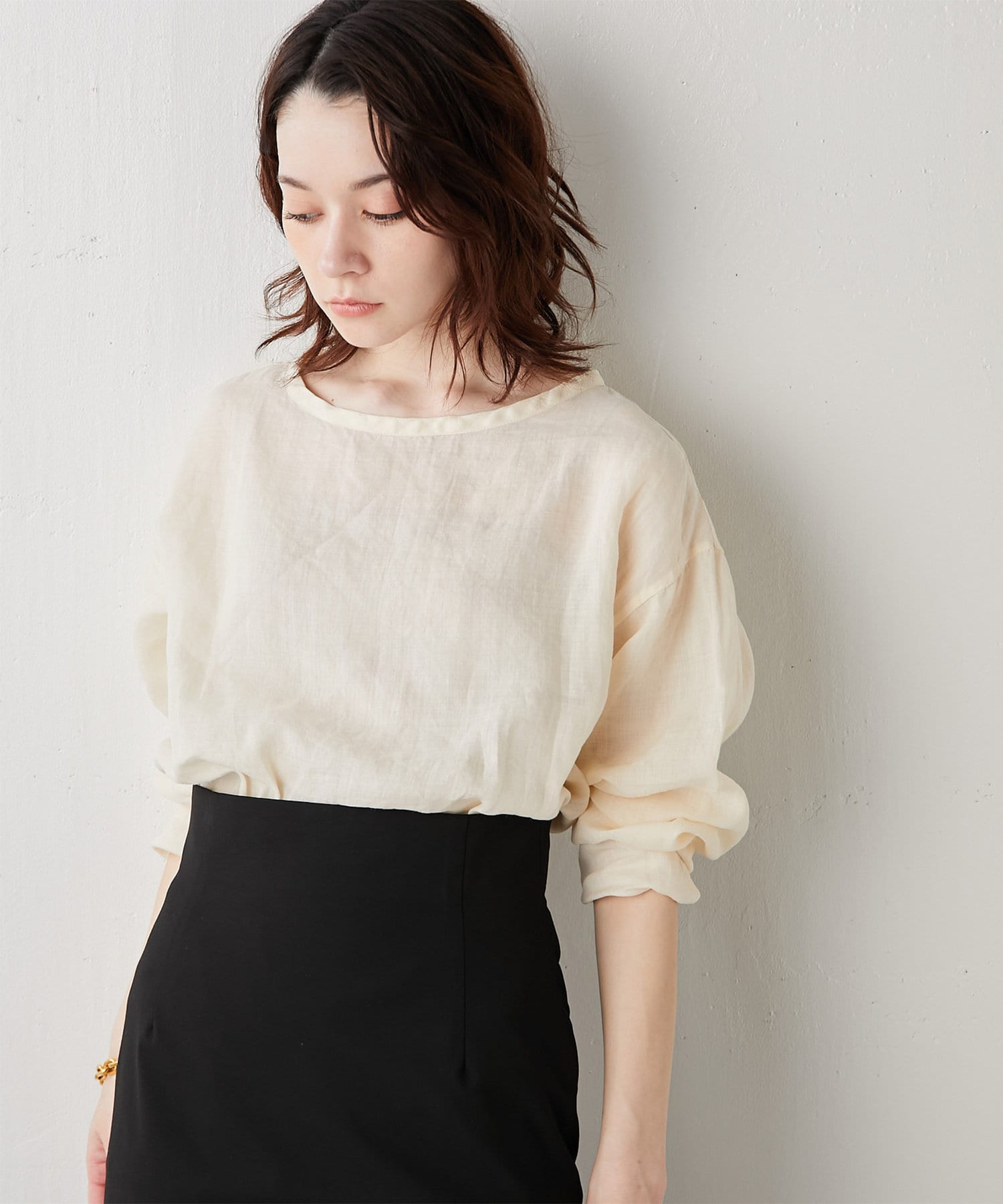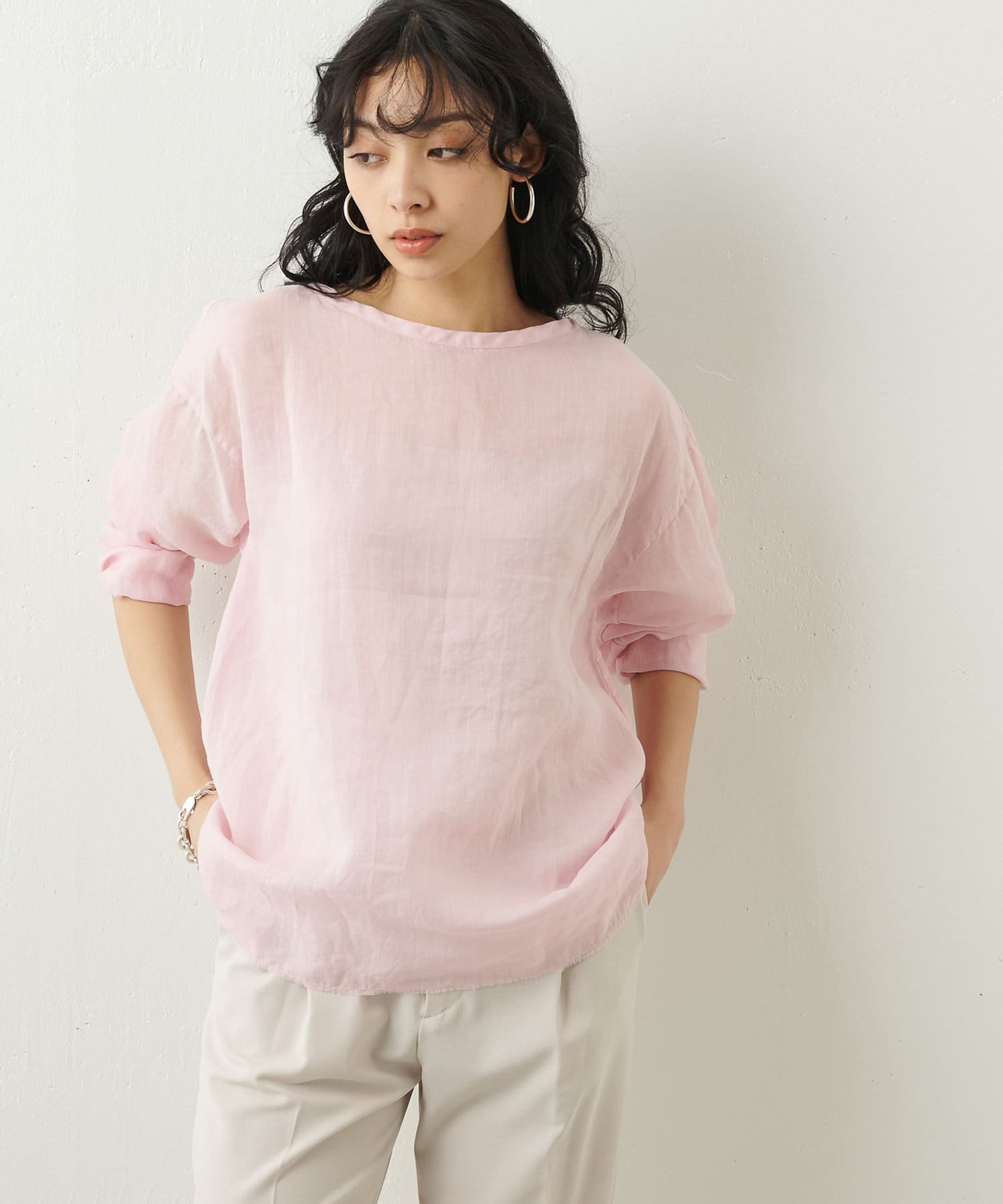 ■夏の定番素材、ラミーを使用したボートネックプルオーバー。