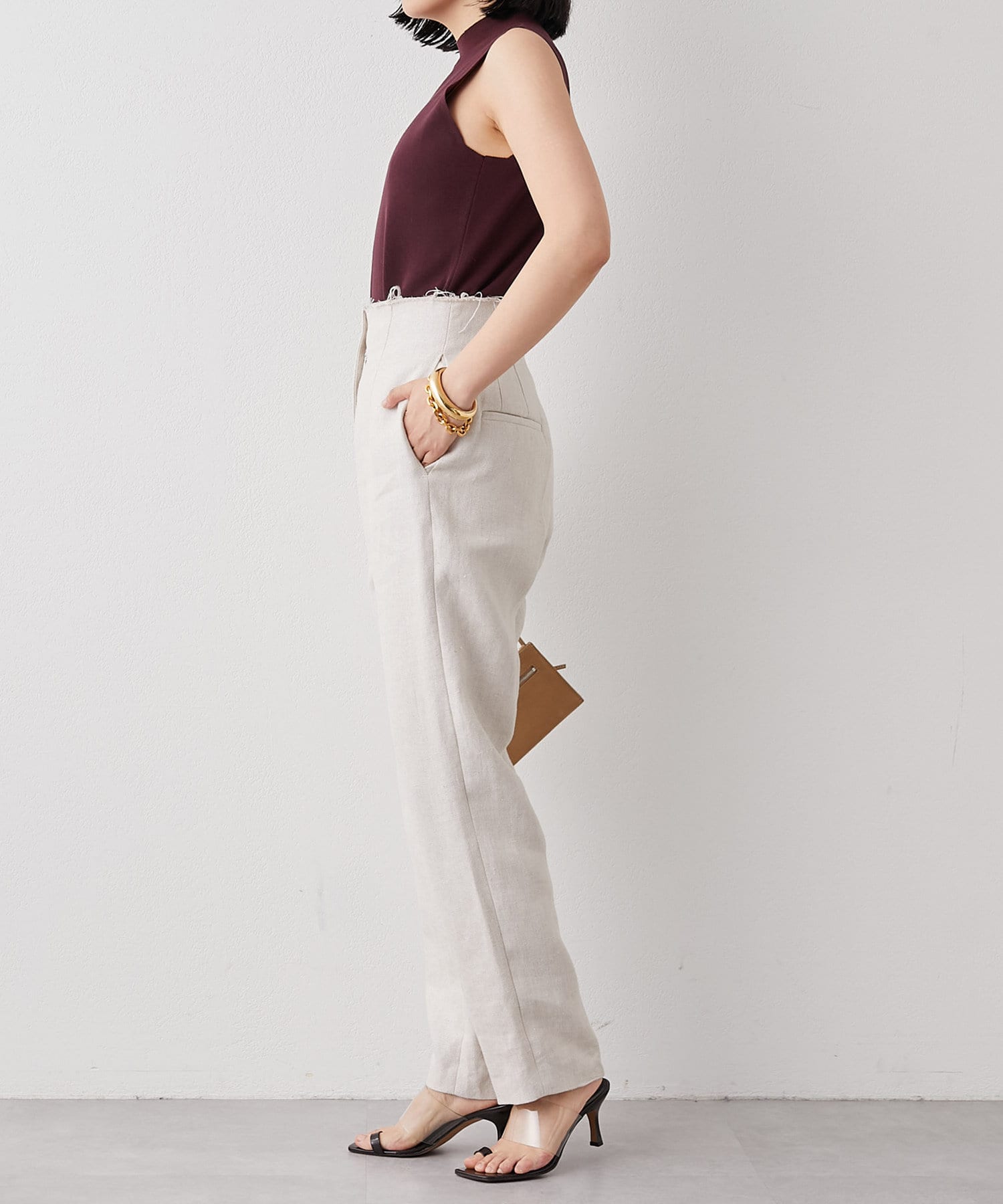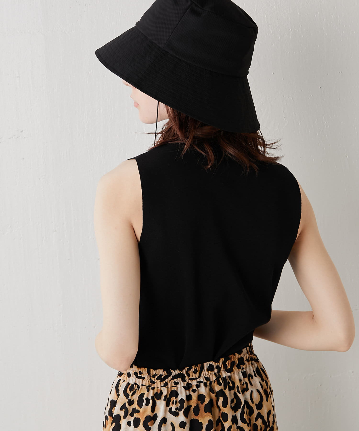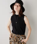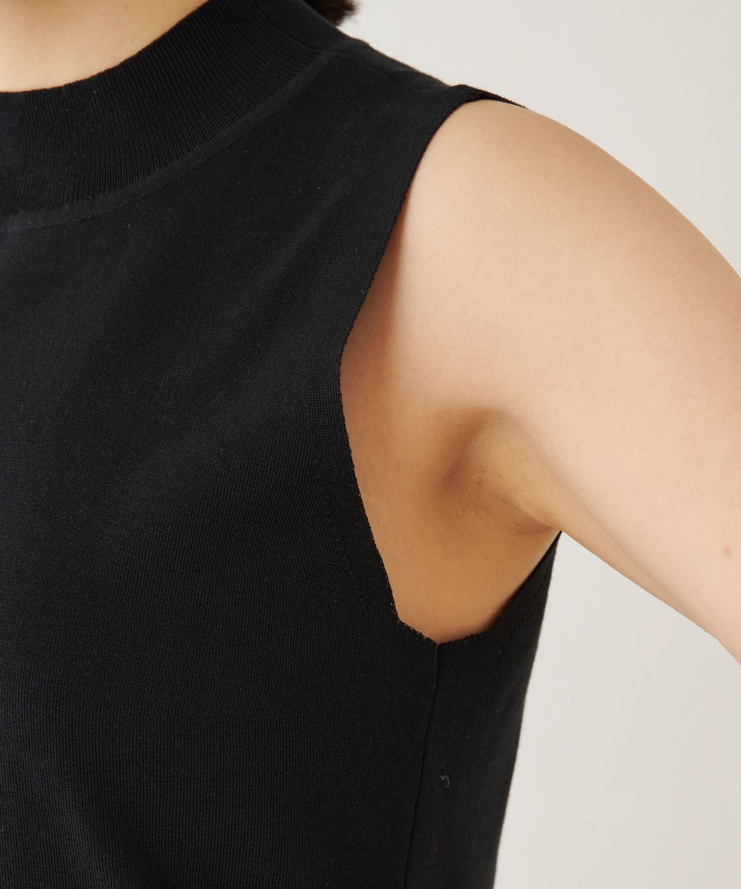 ■すっきりとした肩周りのシルエットが印象的なノースリーブニット。