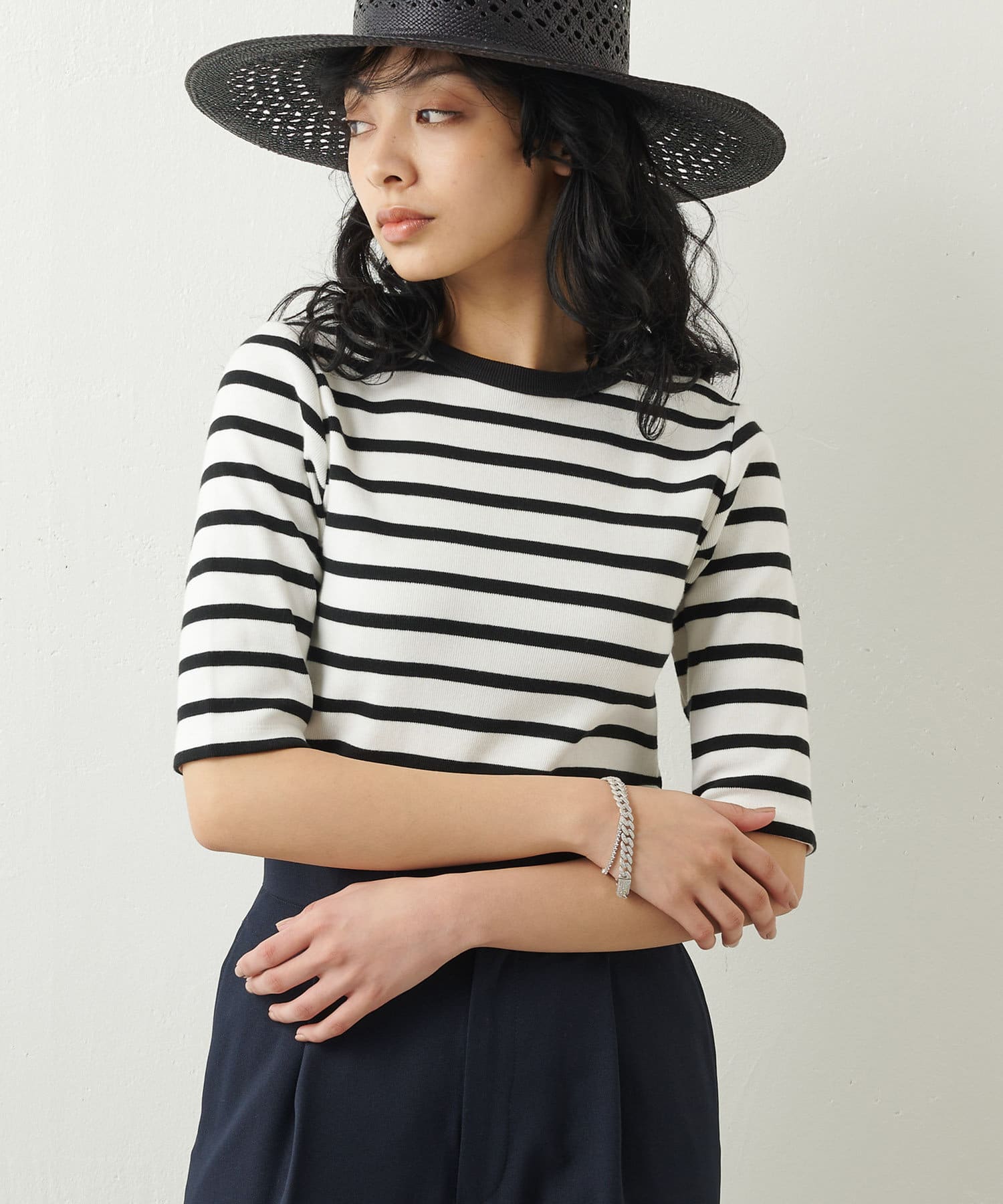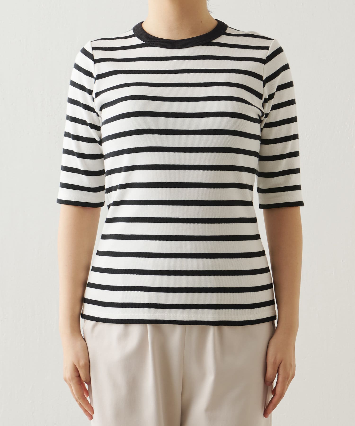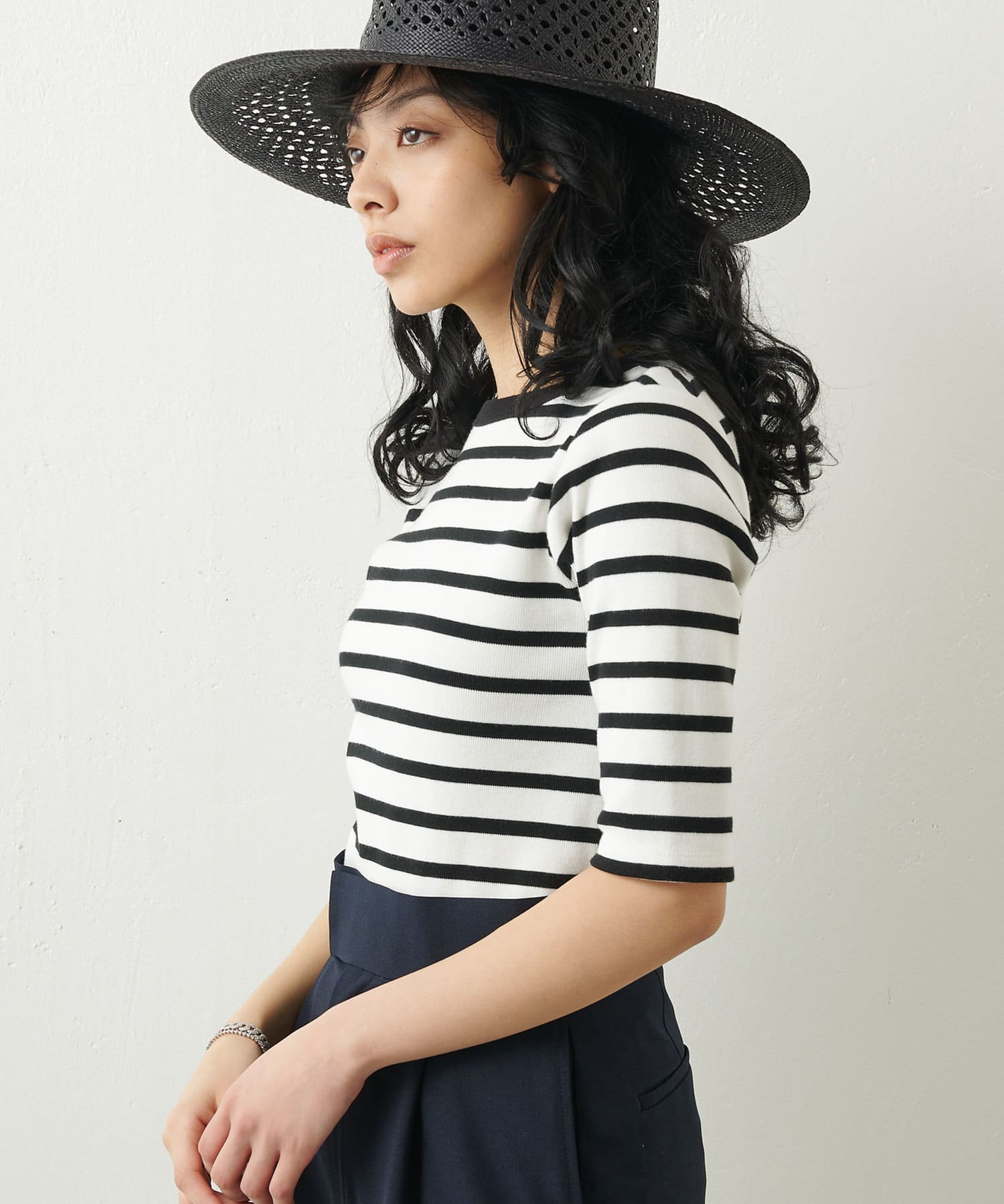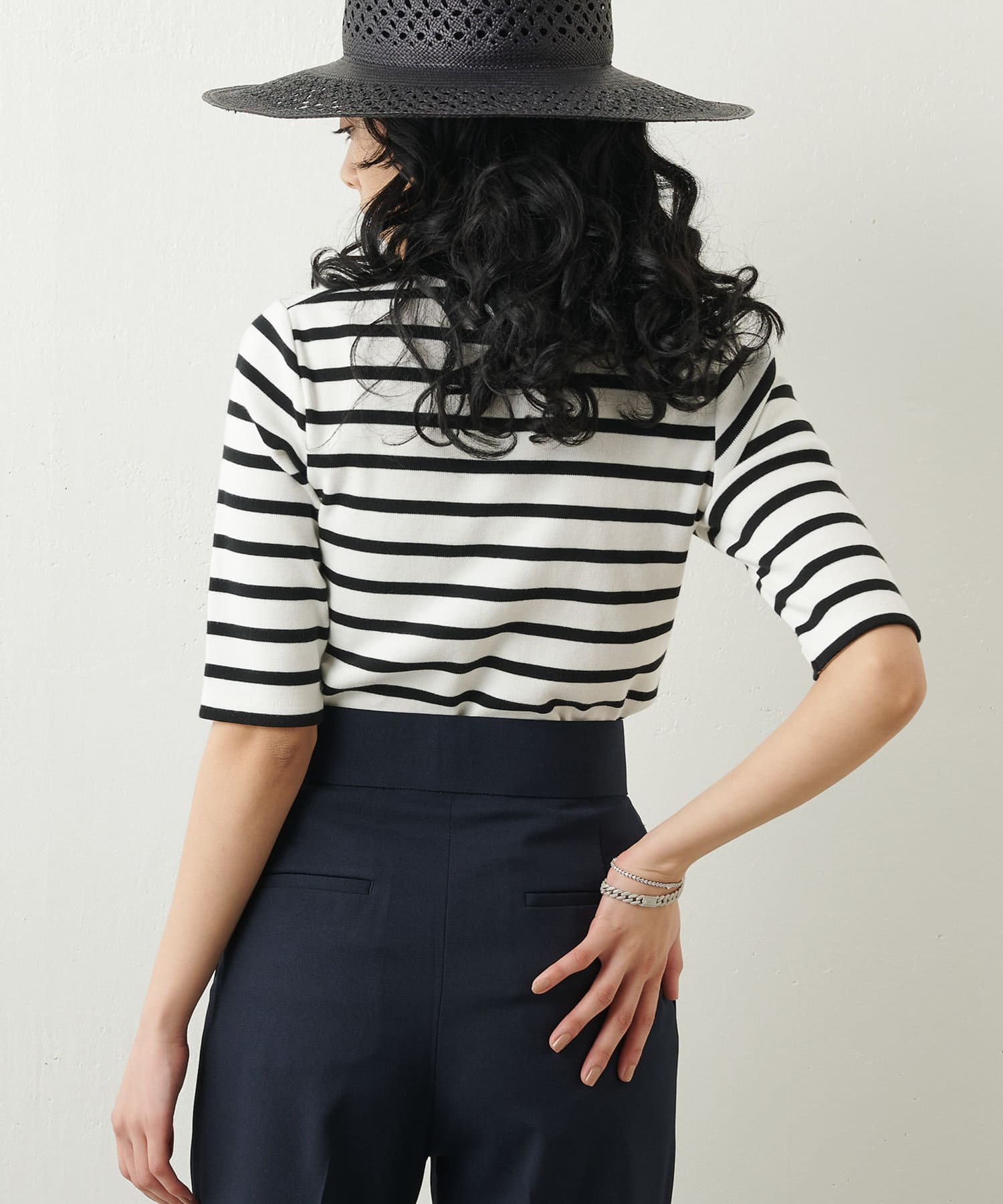 ブラック:一枚は持っておきたい定番ボーダー。ネックラインのブラックがアクセントに。