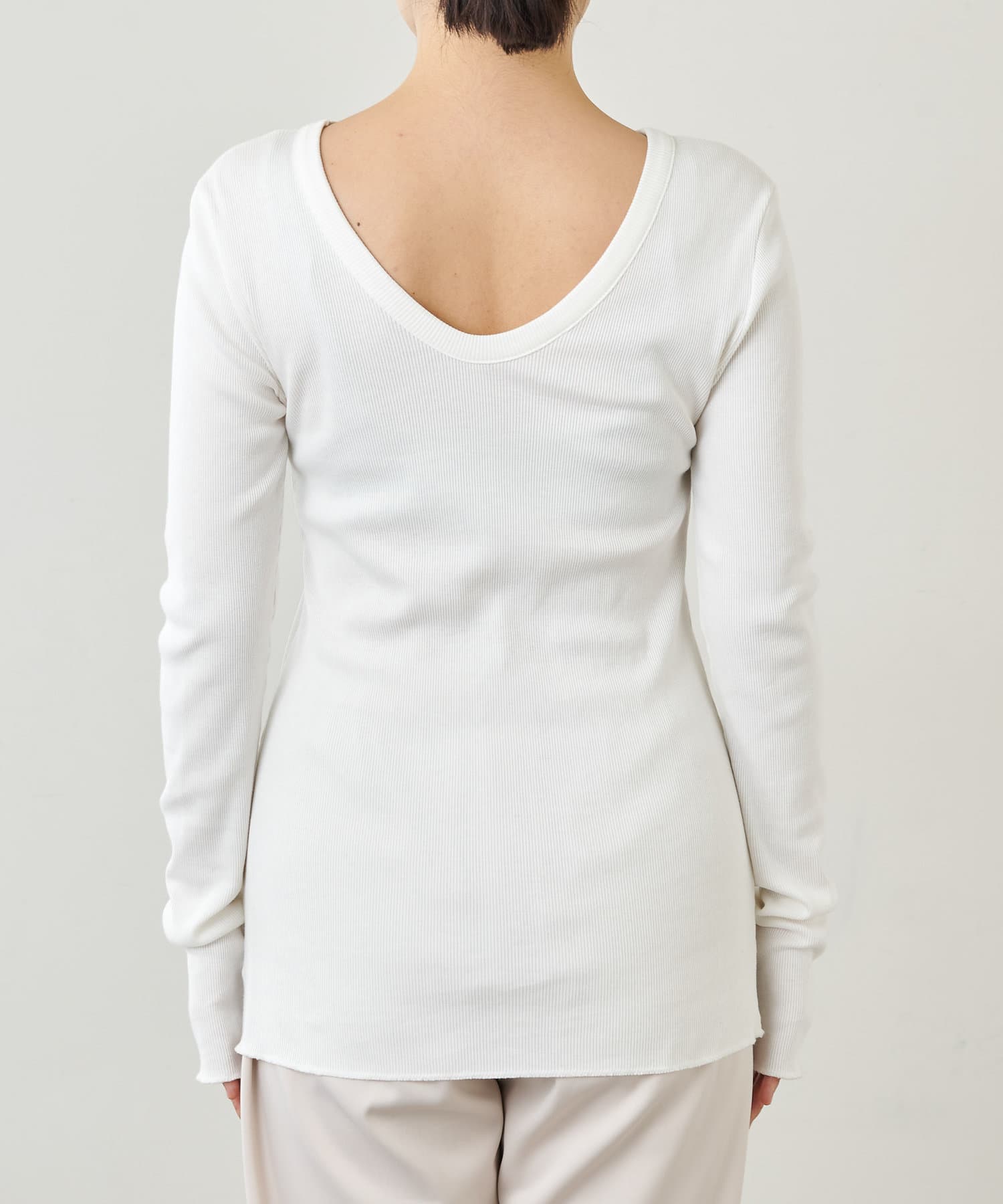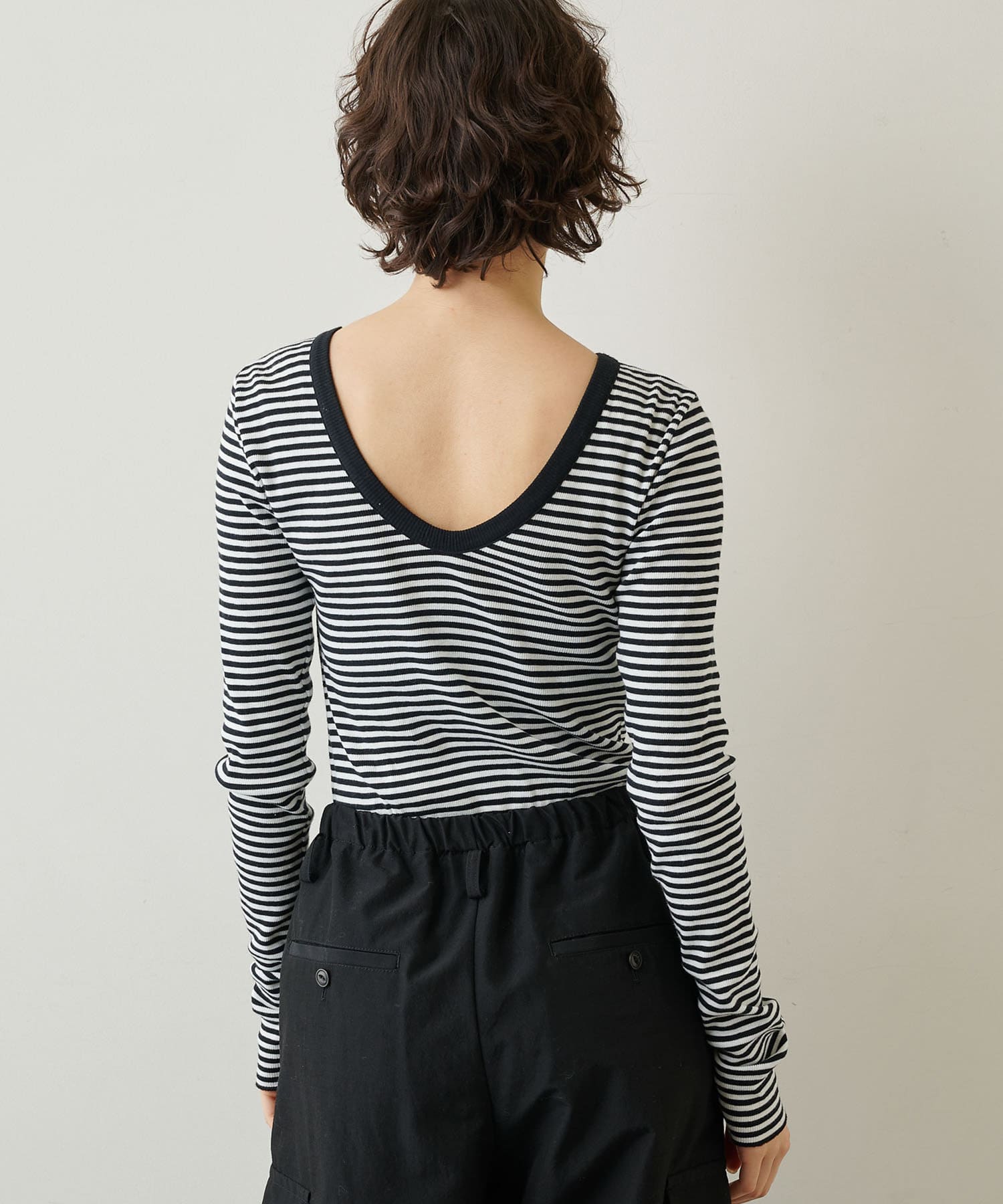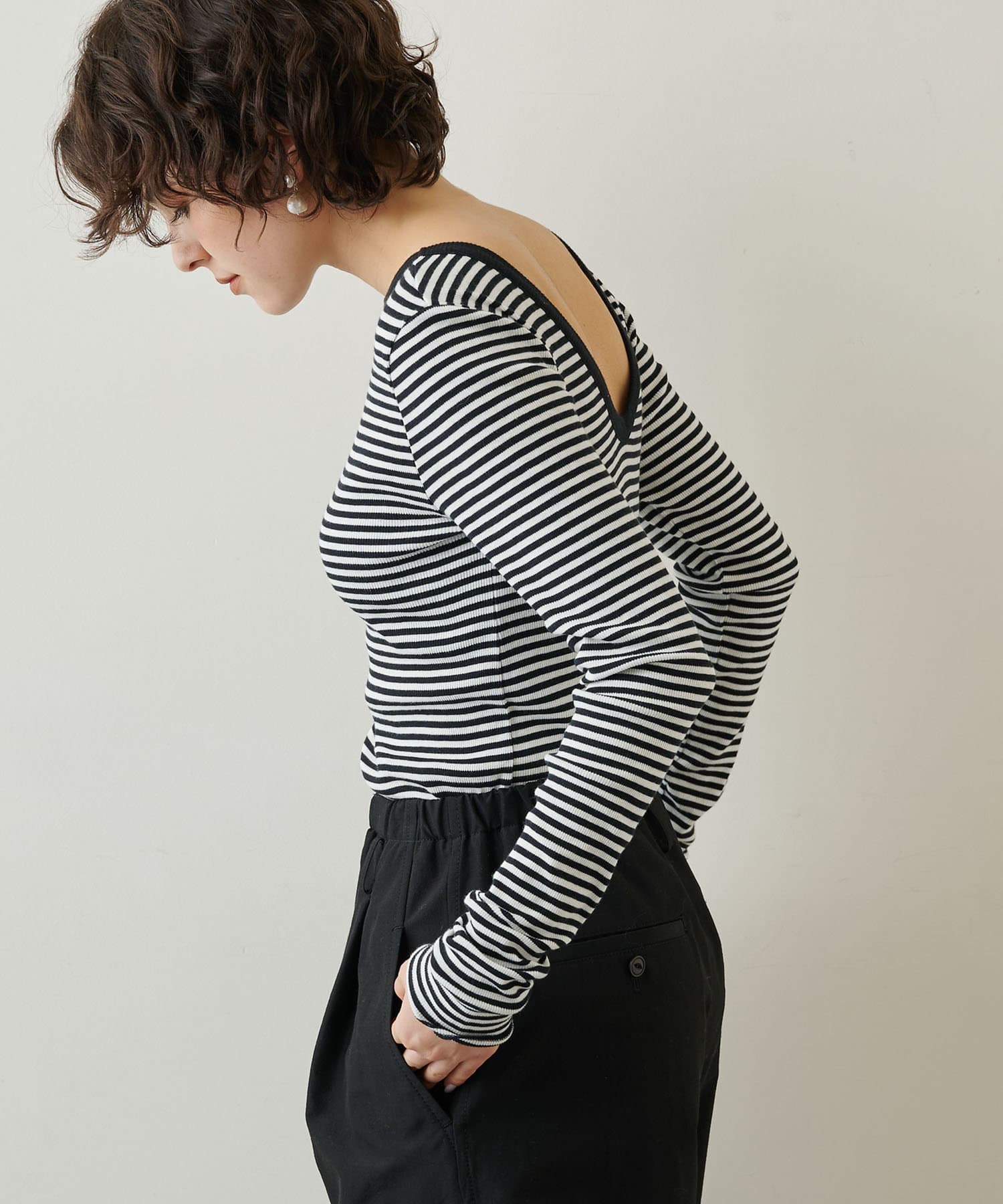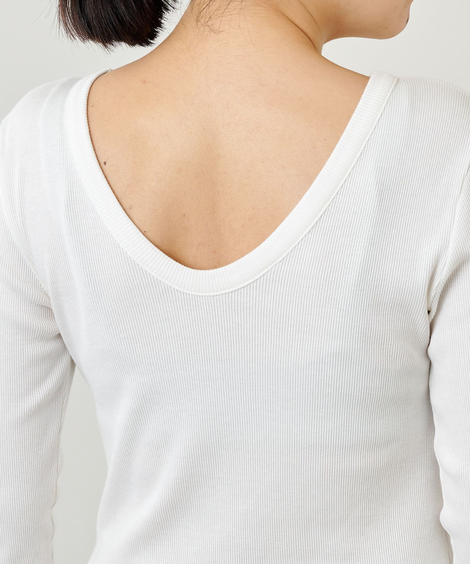 大胆な背中の開きが女性らしいVバックシャンカットソー。インナーが見えない開きになっています。ジャケットなどインナーは勿論、シルエットが綺麗なので1枚着でもおすすめです。