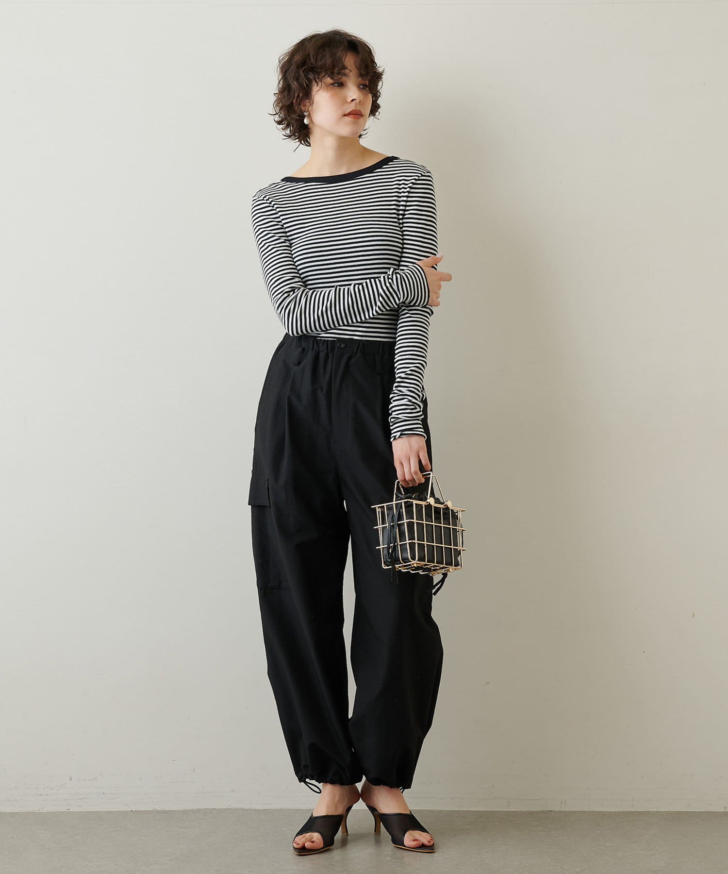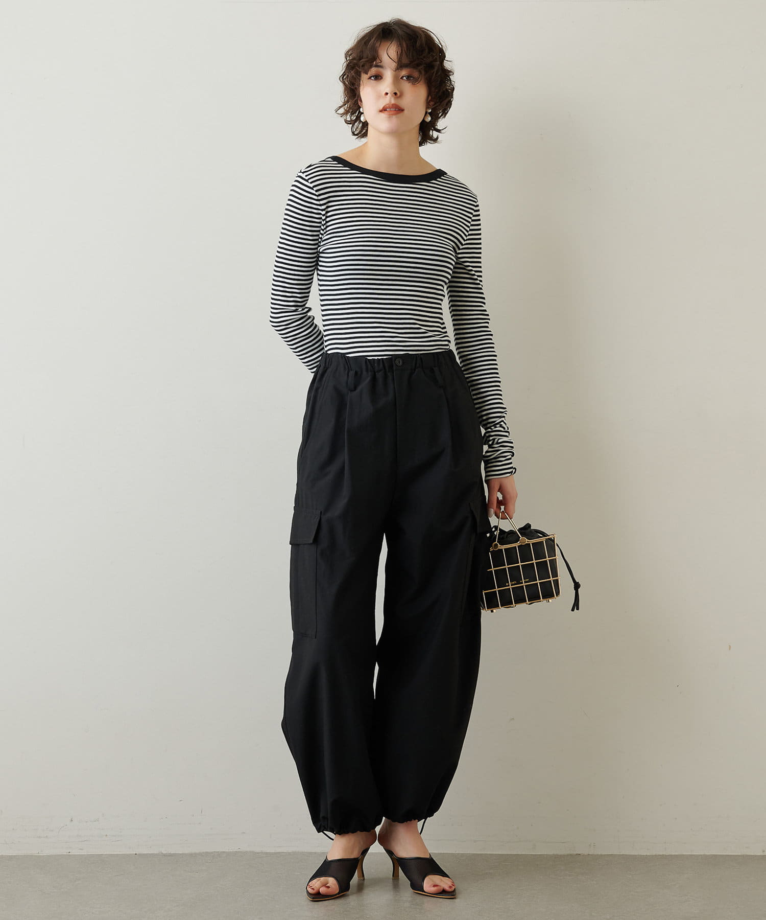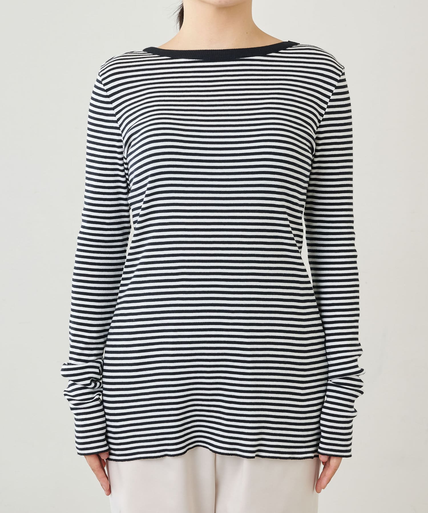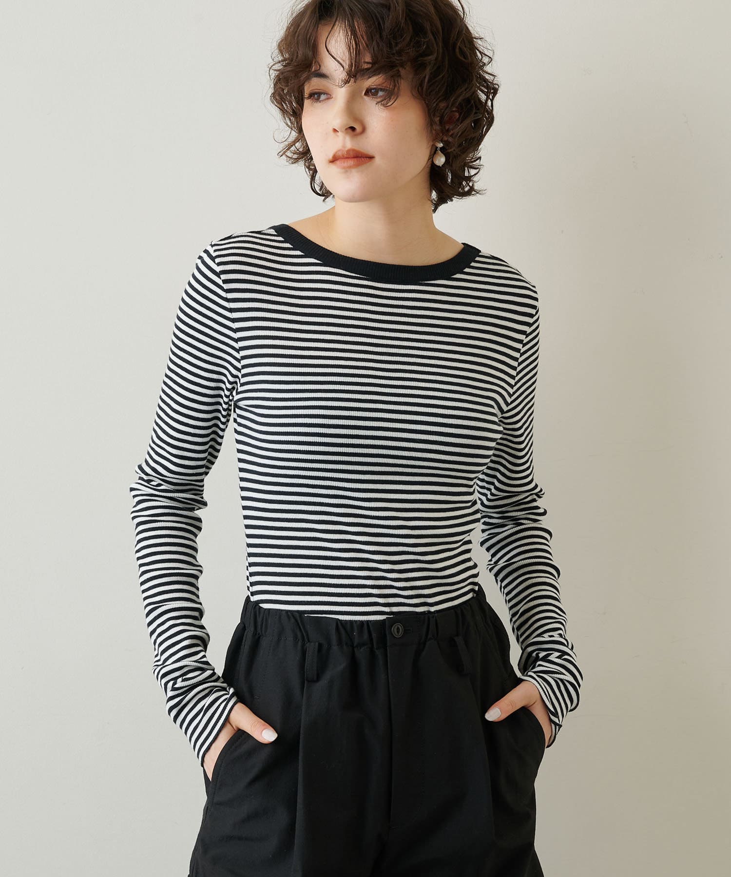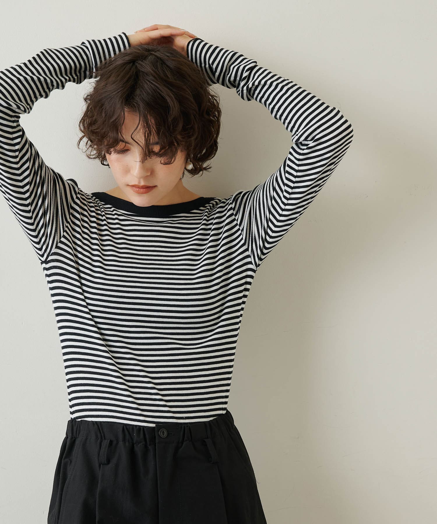 ブラック:大人も着こなしやすい細めボーダー。 ネックラインのブラックがアクセントに。