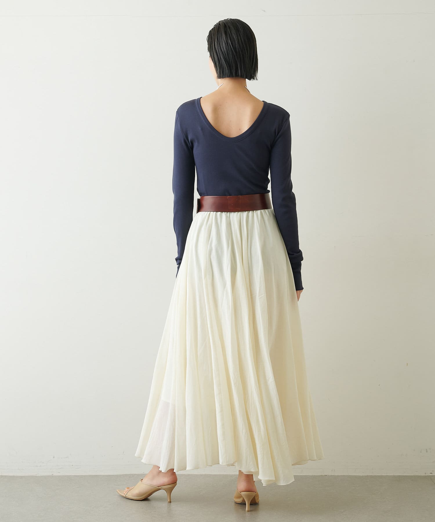ビスチェなどのレイヤードアイテムとしても使いやすいです。薄手の柔らかい綿素材なので着心地も◎。着用のオフホワイトは少し透け感がありよりヘルシーな雰囲気になりますよ。