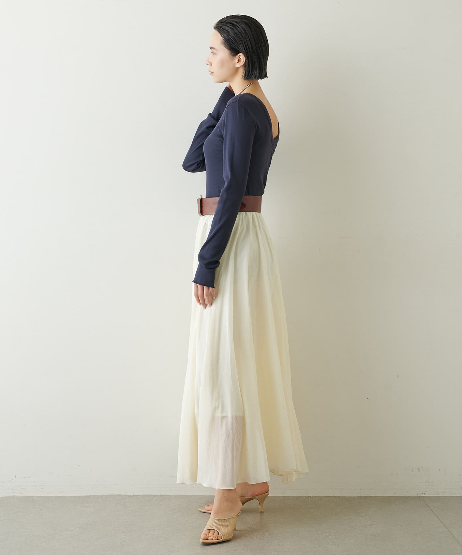 ■長めにとった袖丈がフェミニンなシルエットに抜け感をプラス。