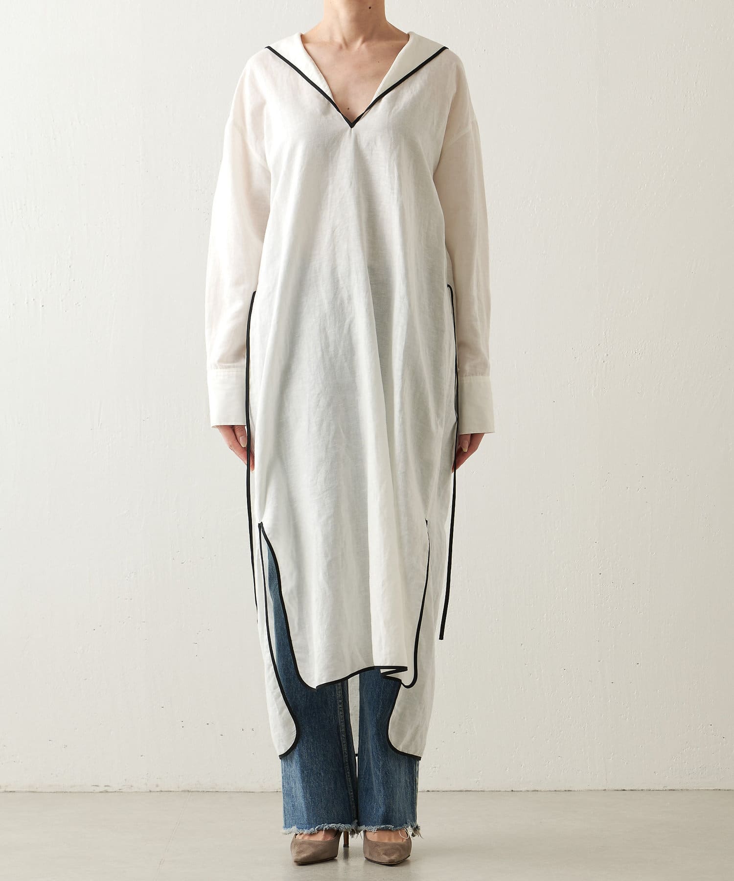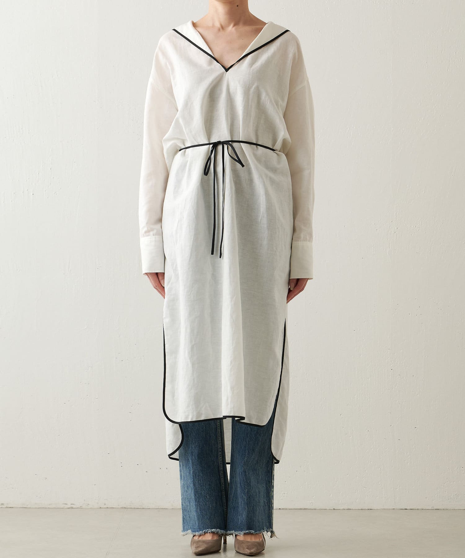 ■ボディラインを拾わずにリラクシーに楽しめるシルエットで、ウエストリボンをあえてラフに垂らすスタイルもおすすめ。