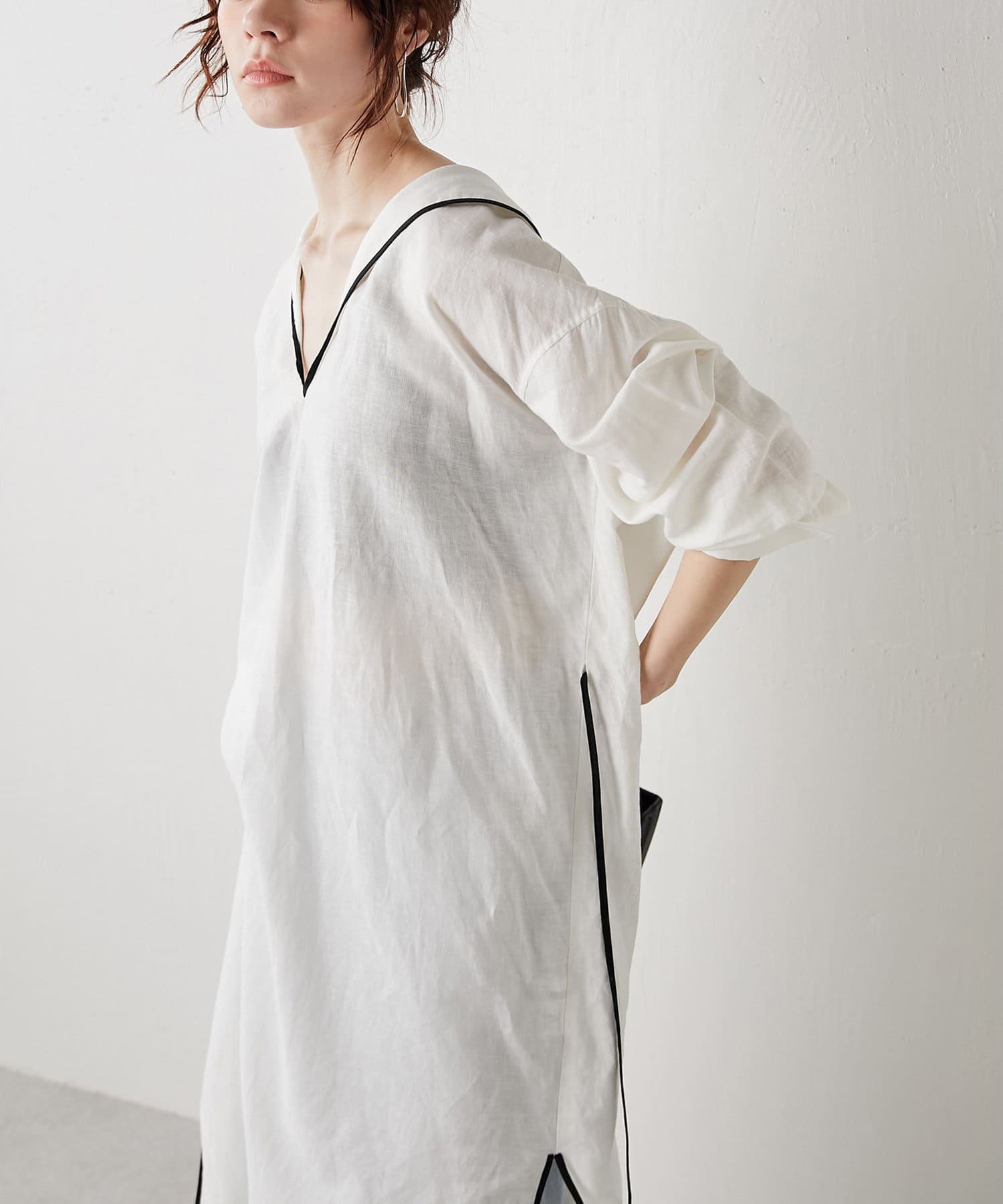 甘さもモードな雰囲気も作れる、大人のセーラーワンピース