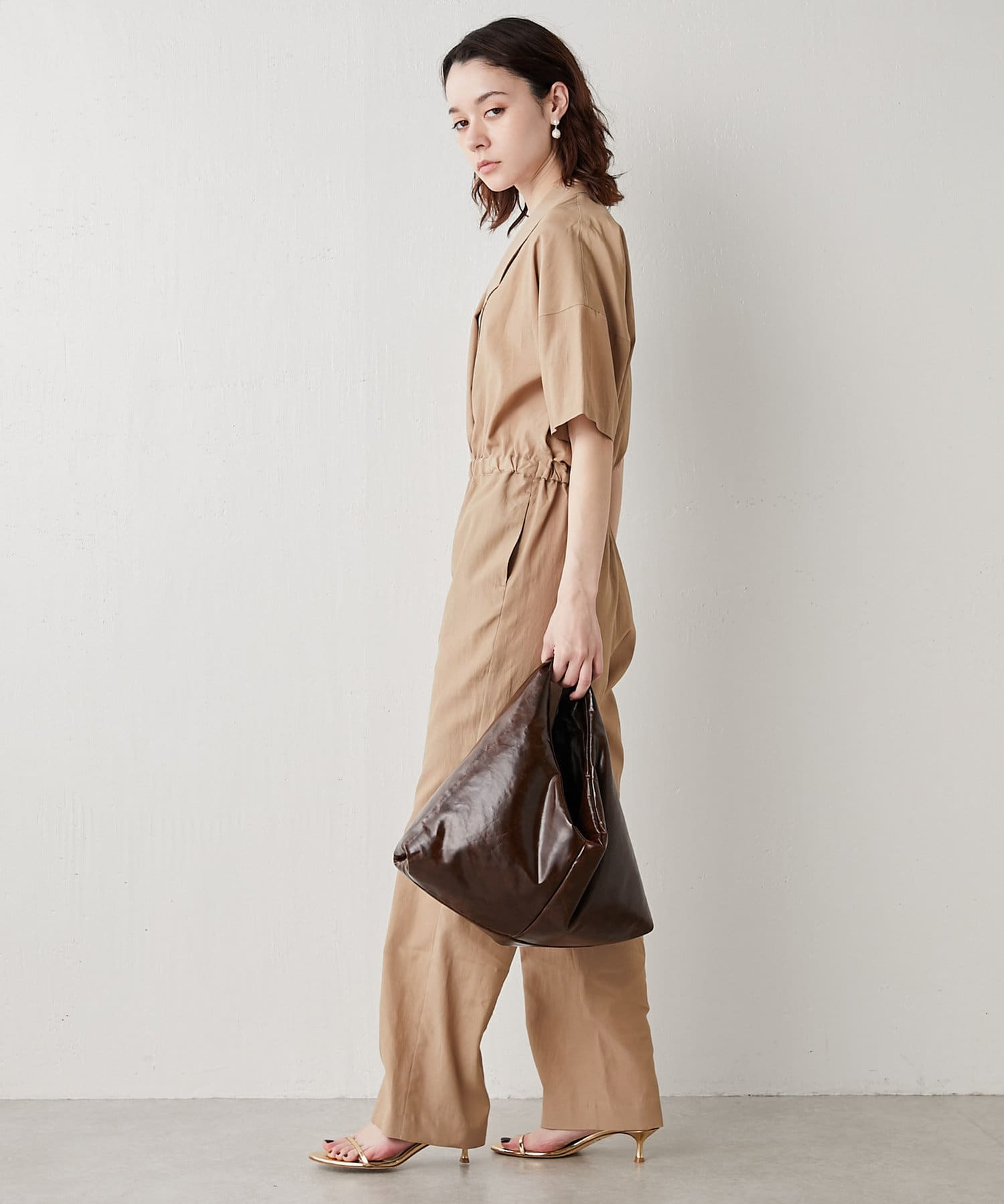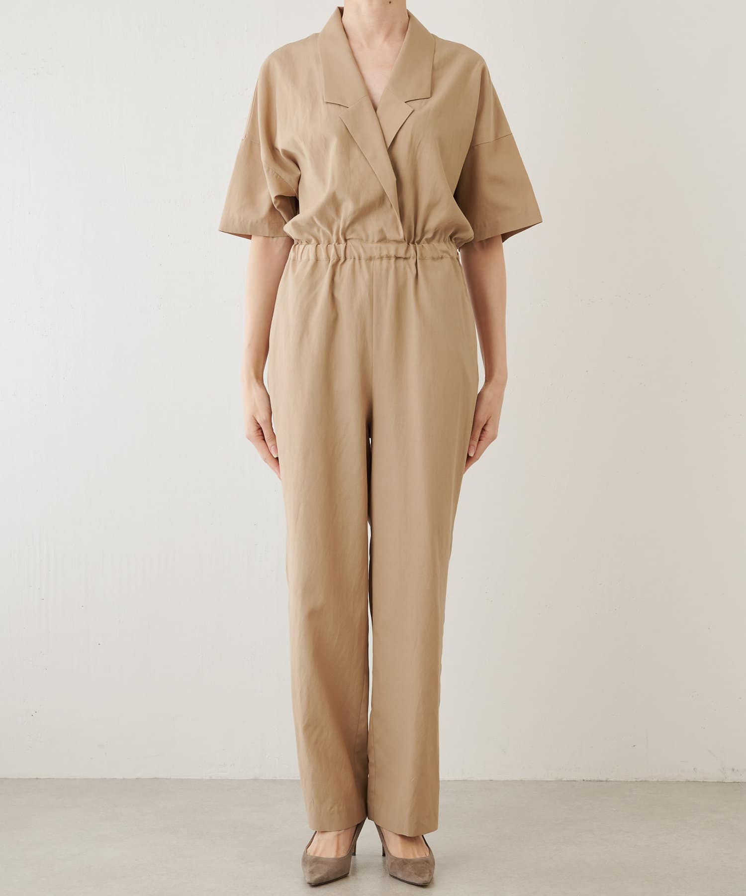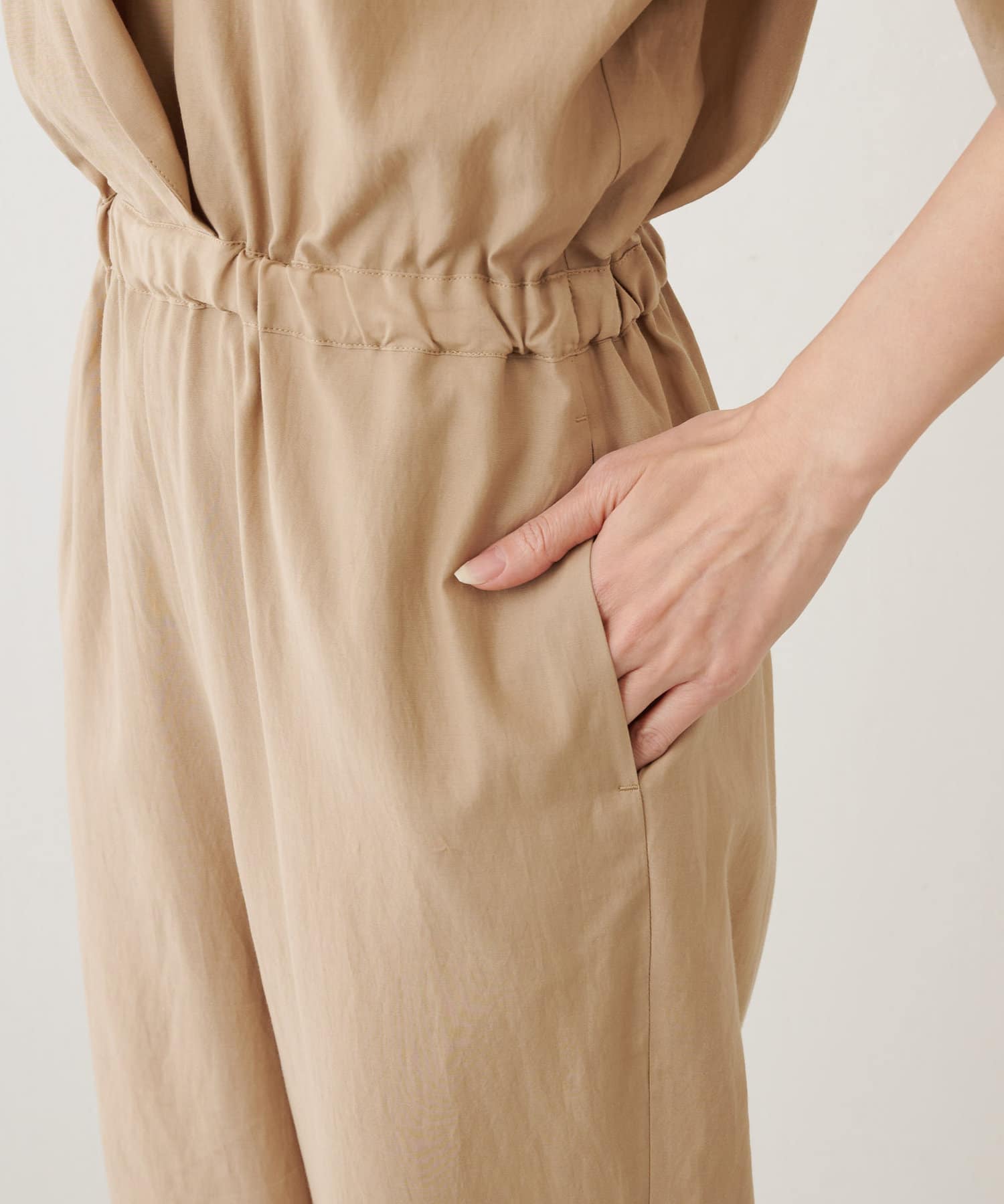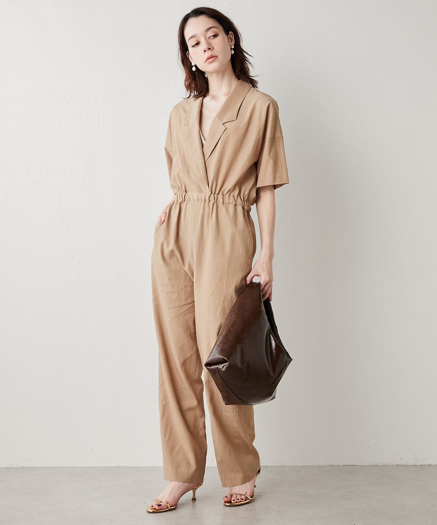 夏にピッタリな麻のジャンプスーツ。凄く涼しくて梅雨時期から長く使えそうです。着丈は長めなので小柄さんはヒール合わせか裾直しがオススメです。オープンカラーで首周りもスッキリ見えますよ。