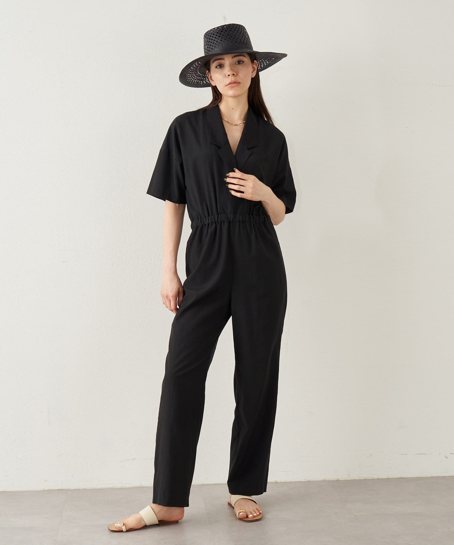 ■すっきりとしたオープンカラーが格好良いジャンプスーツ。