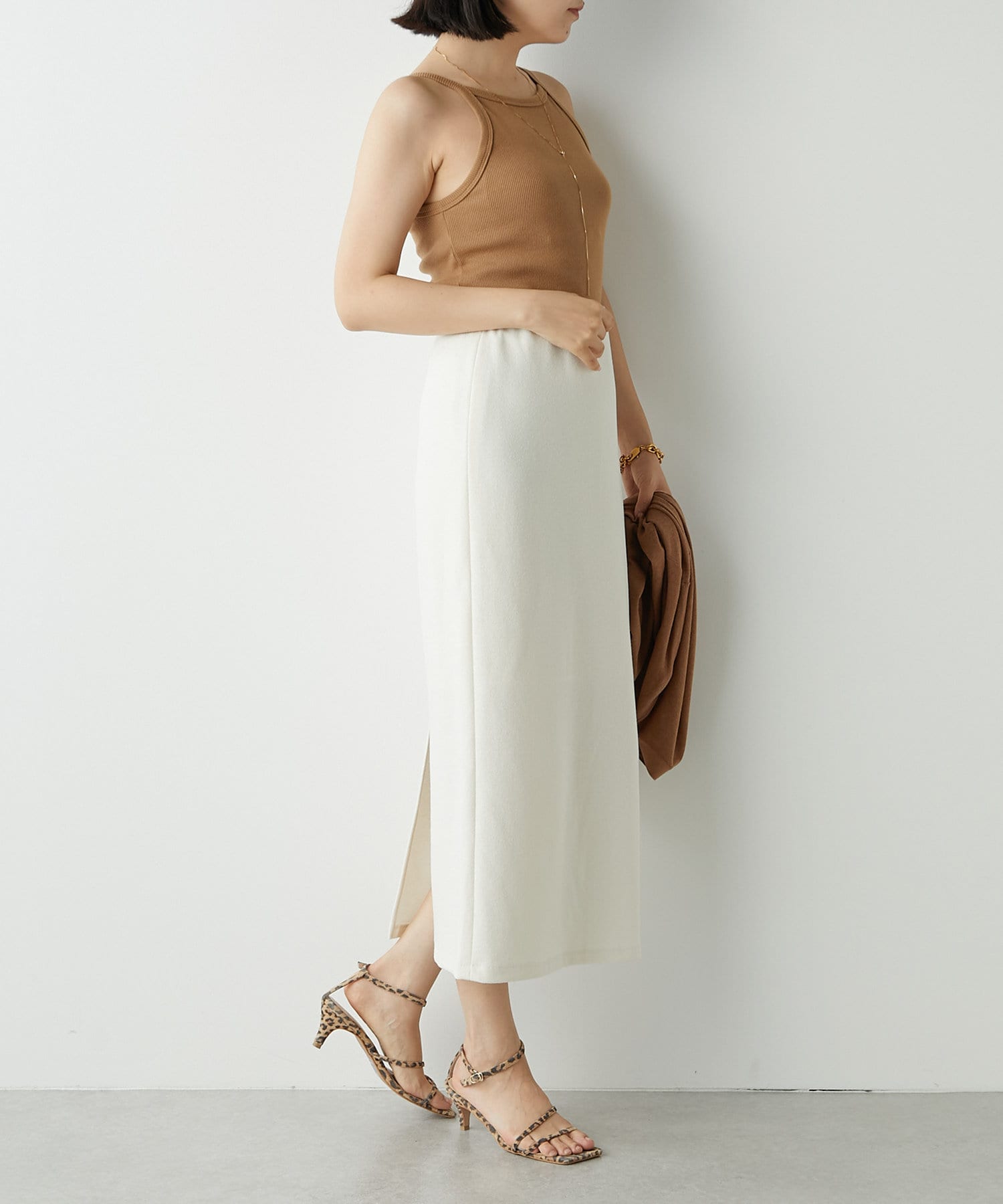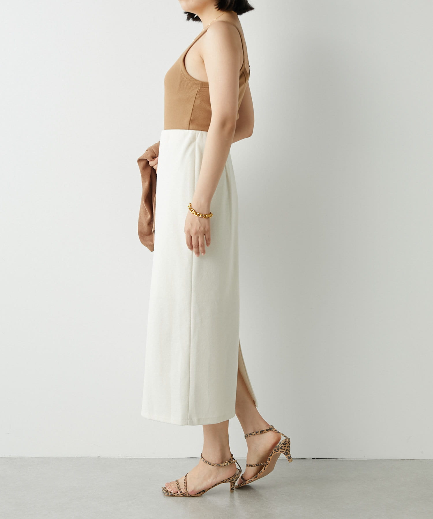 ■バックスリット入りで足捌きも良く、程よい肌見せが足元に抜け感を演出。