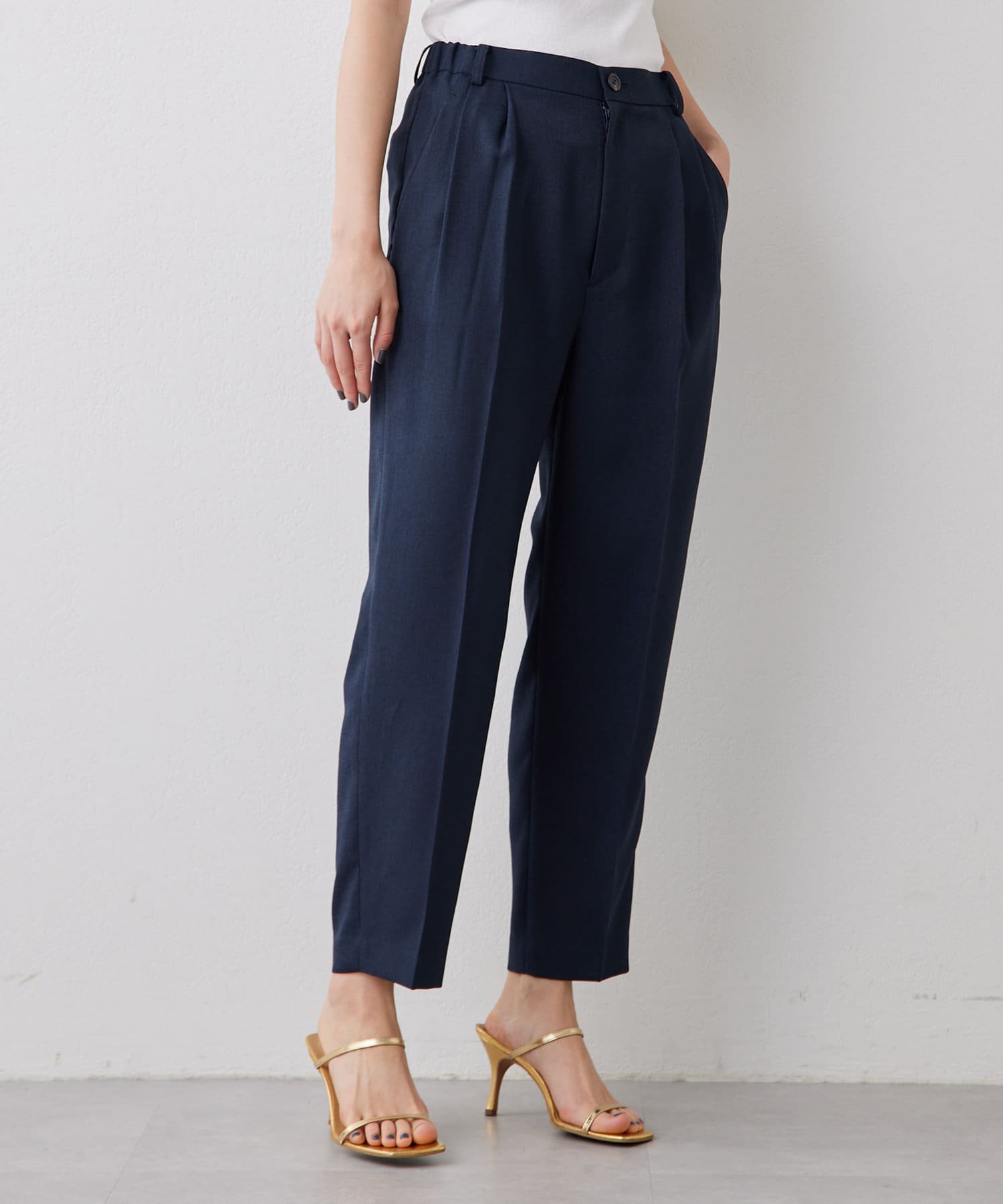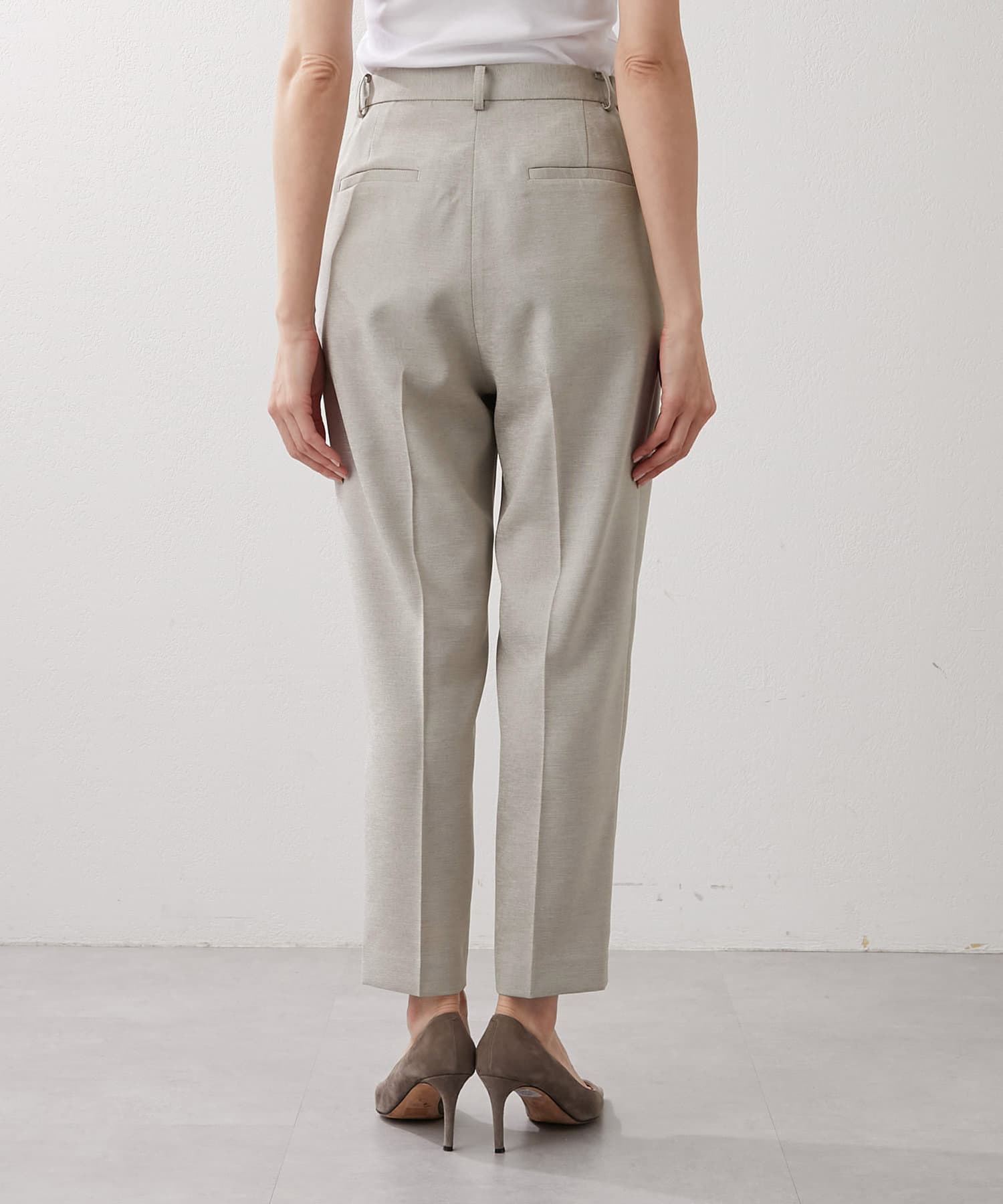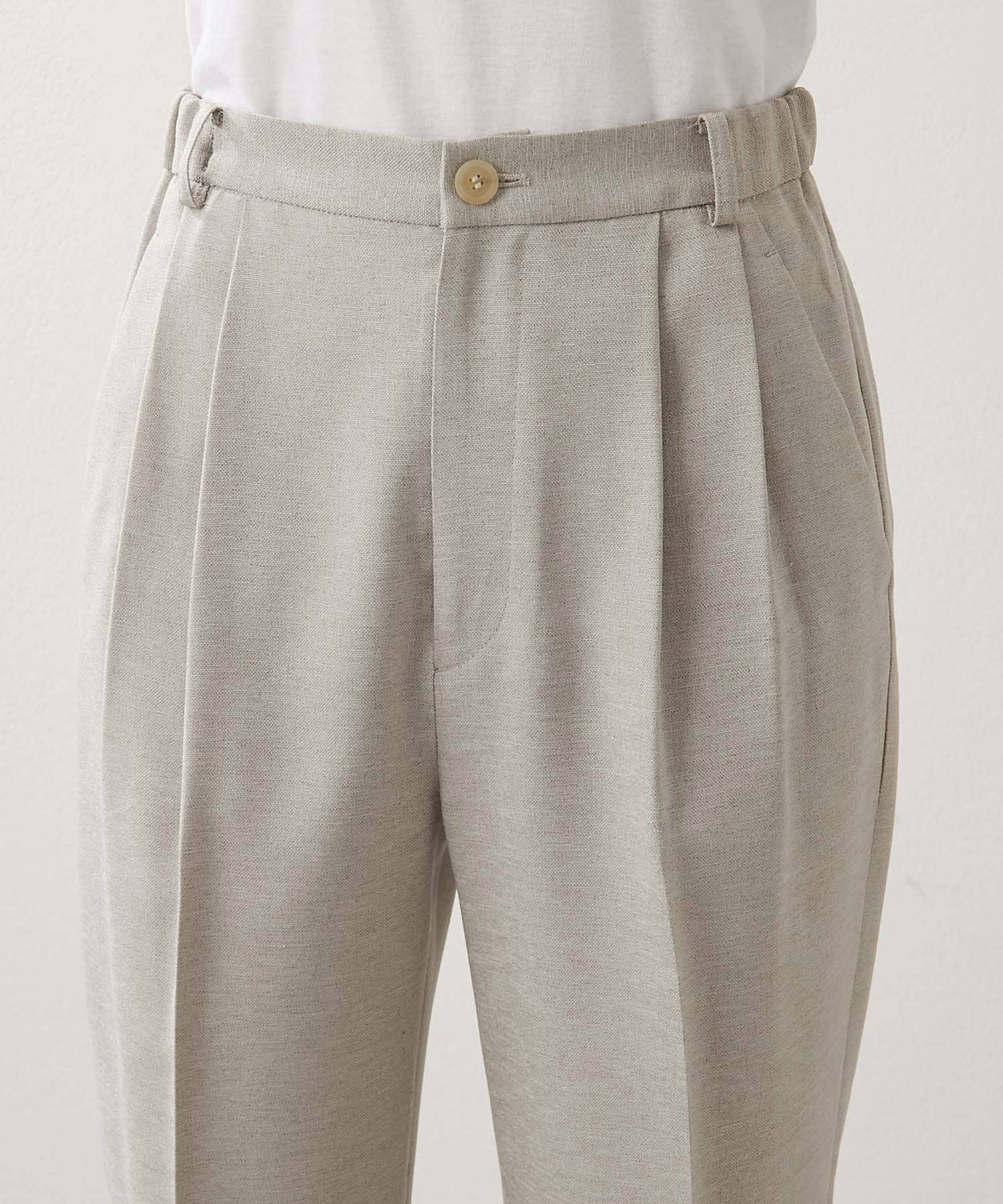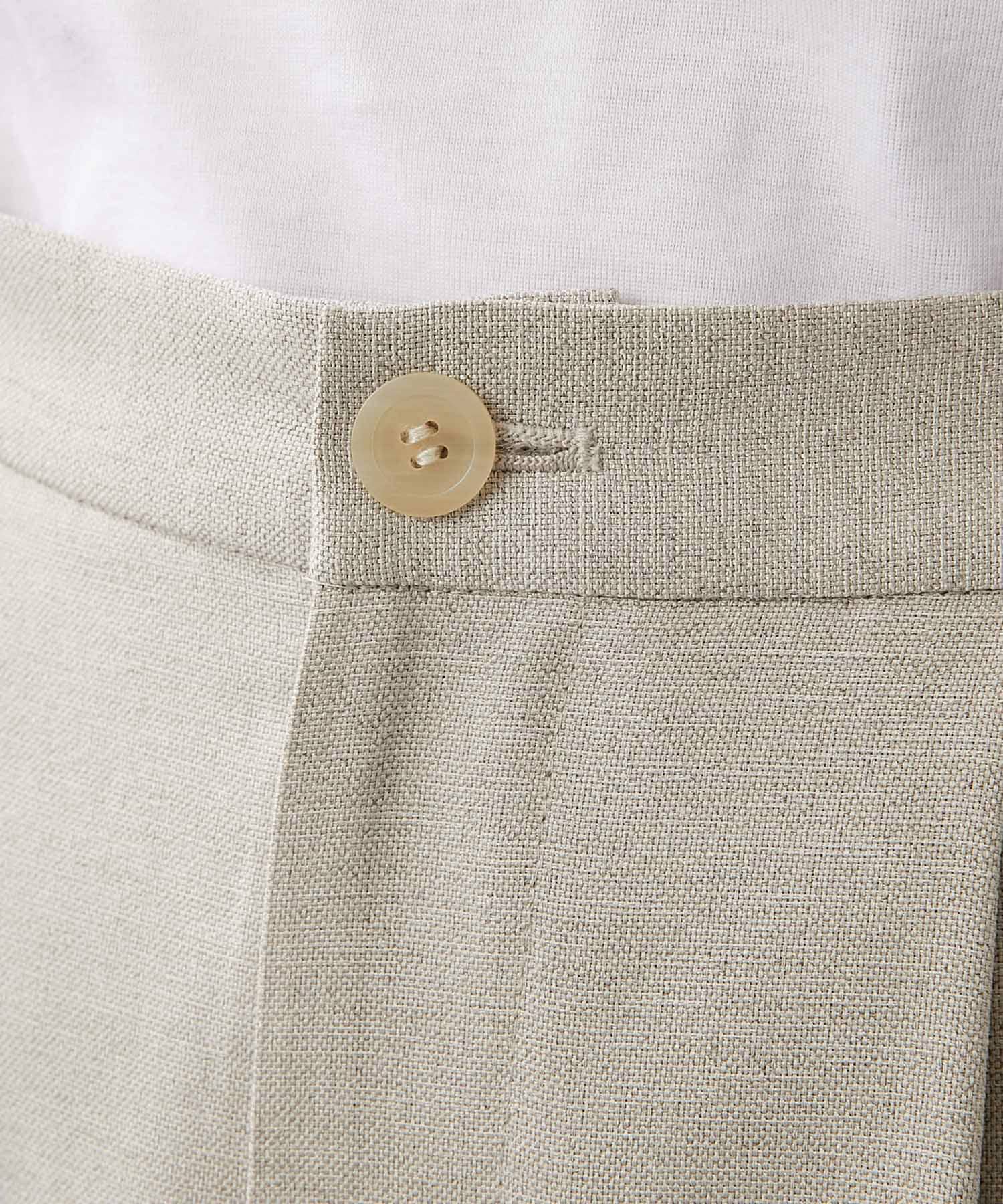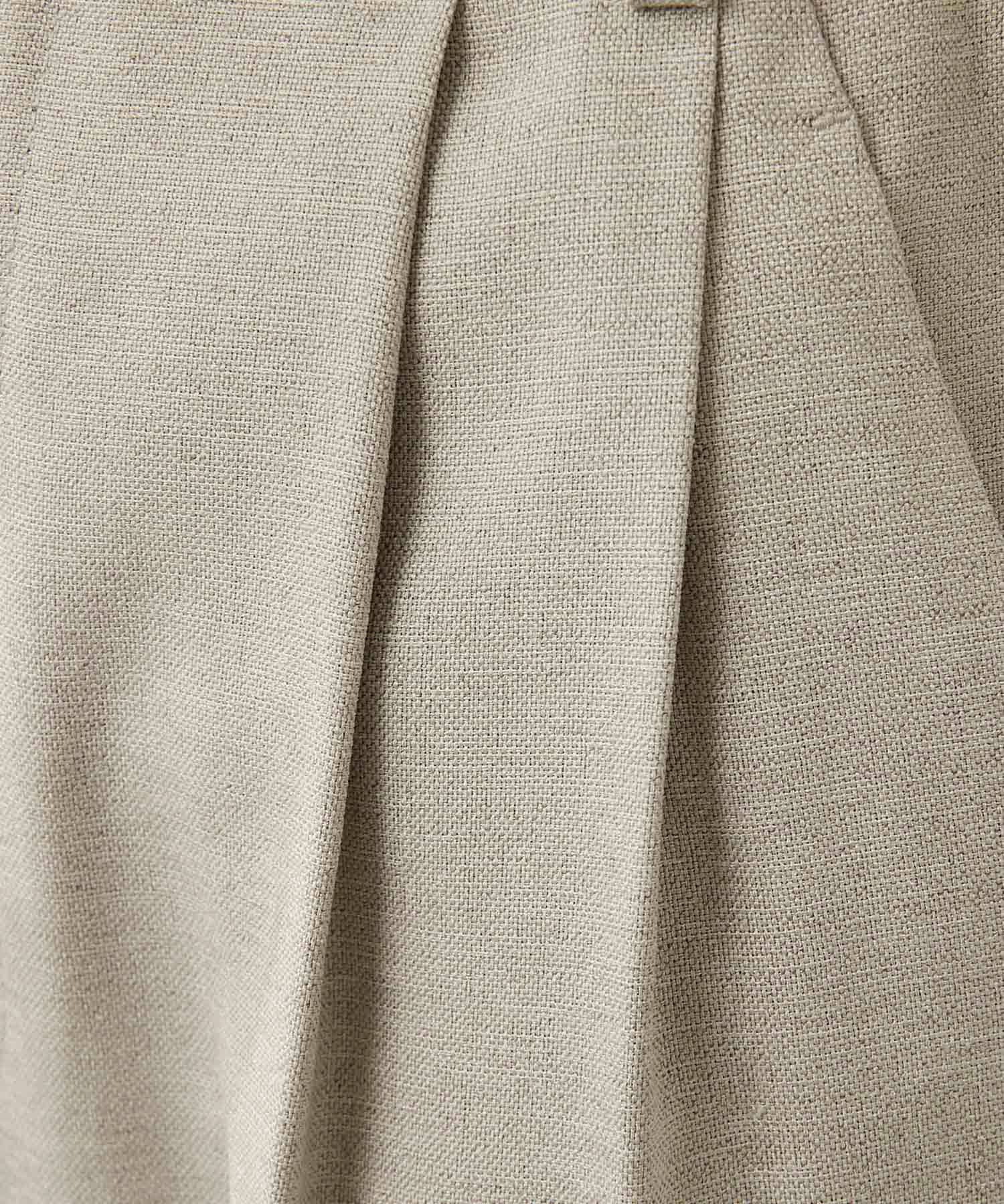 ■シーズンムードらしい清涼感のある麻調素材を使用したタックパンツ。