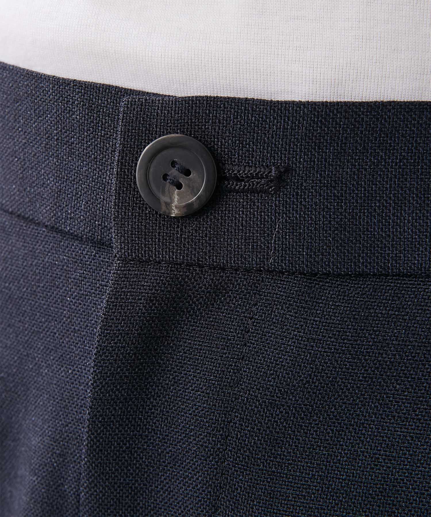 ■ダブルタックが腰回りに程よくゆとりをもたせつつ、テーパードラインですっきりと見える一着。