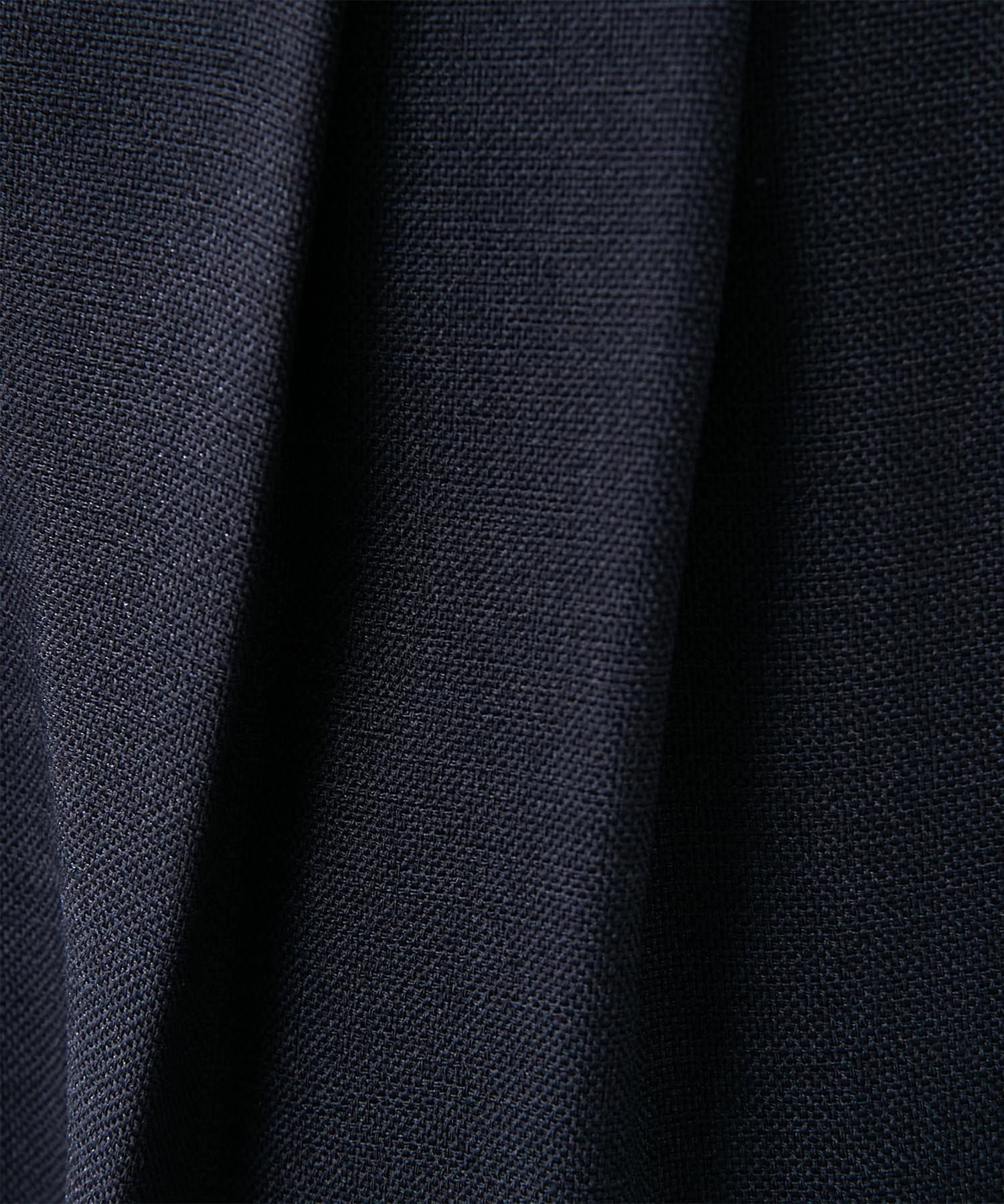 麻のように見えつつ、シワになりにくい・ウォッシャブル・紫外線遮断機能などを兼ね備えたリネン調のポリエステル素材。