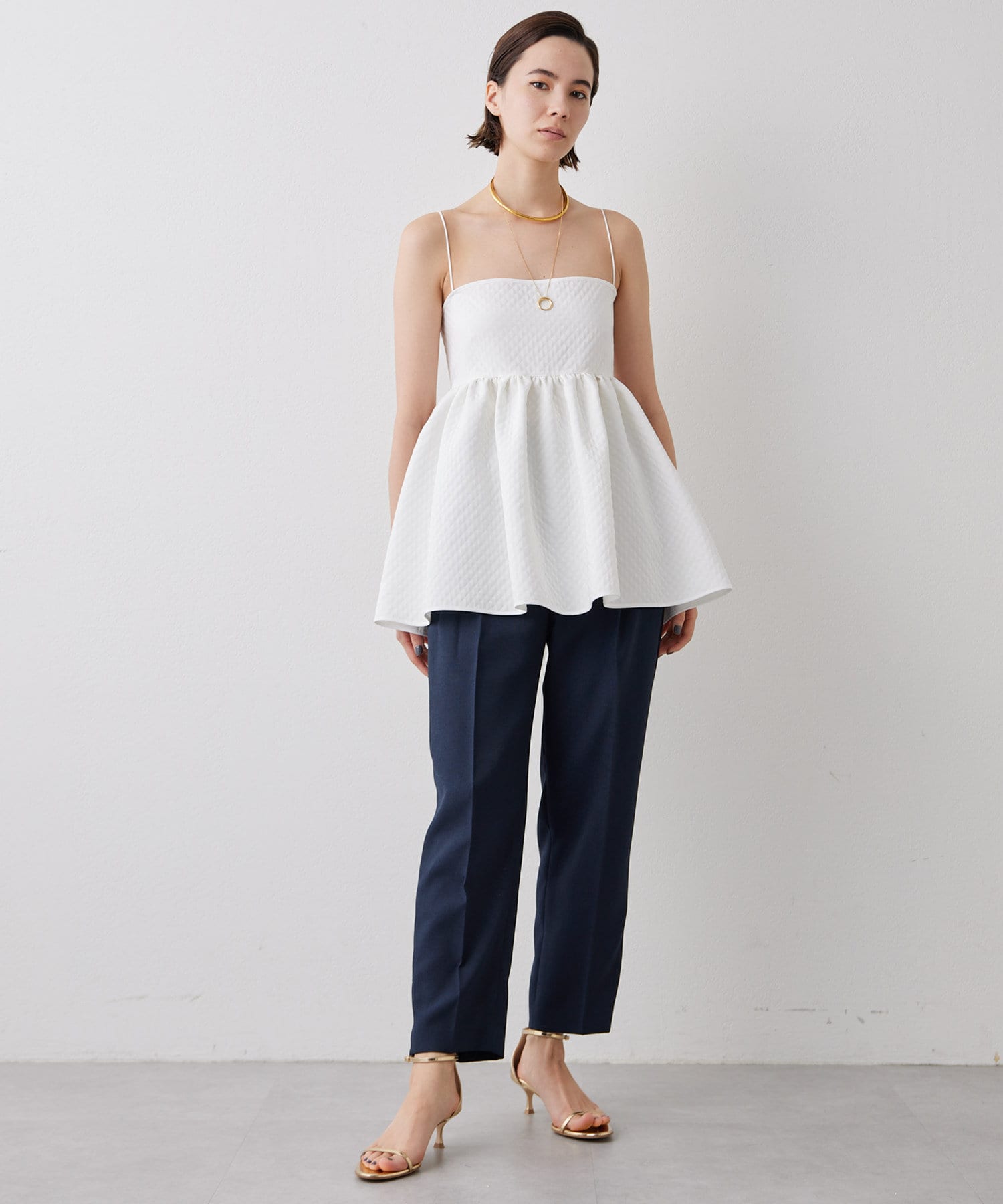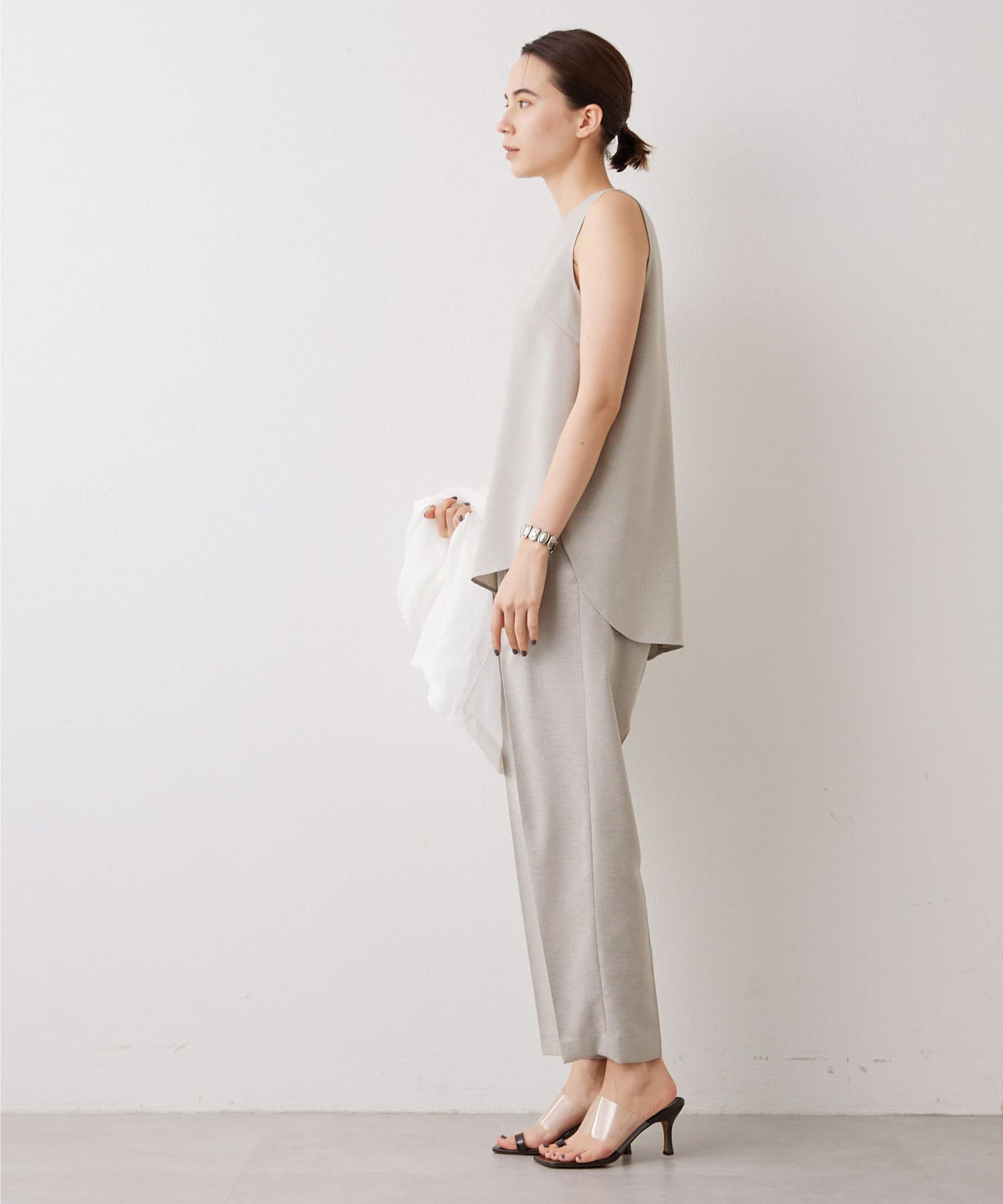 ■同素材のオックスノースリーブブラウス(ブランド品番:WGZ1031404A0002)とのセットアップもおすすめ。