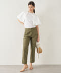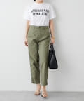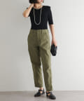 カーゴパンツのようなカジュアルな素材感です。165㎝の私でくるぶしがちょうど隠れるくらいの着丈。フルレングスより少し短めです。太すぎず細すぎないので、トップスはボリュームがあってもなくても合わせやすく、着回し力の高い1本です。