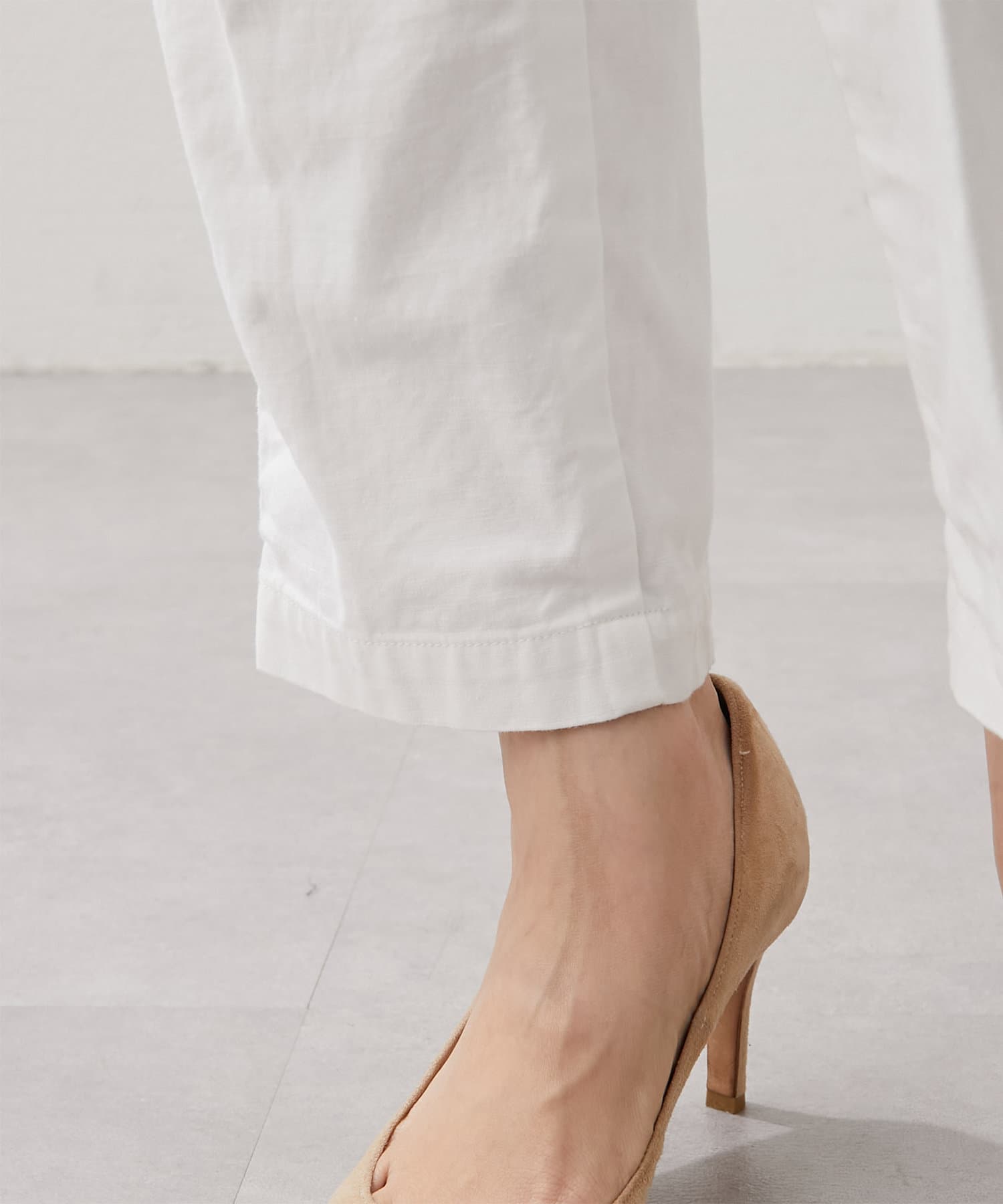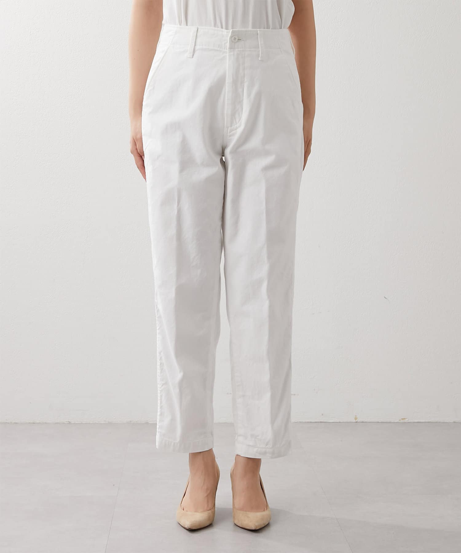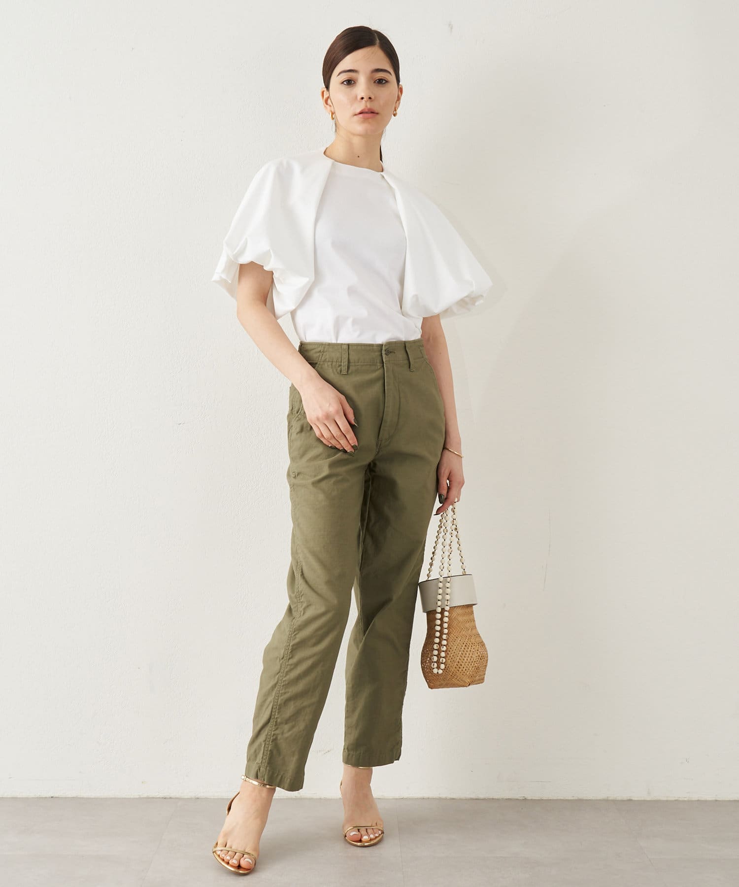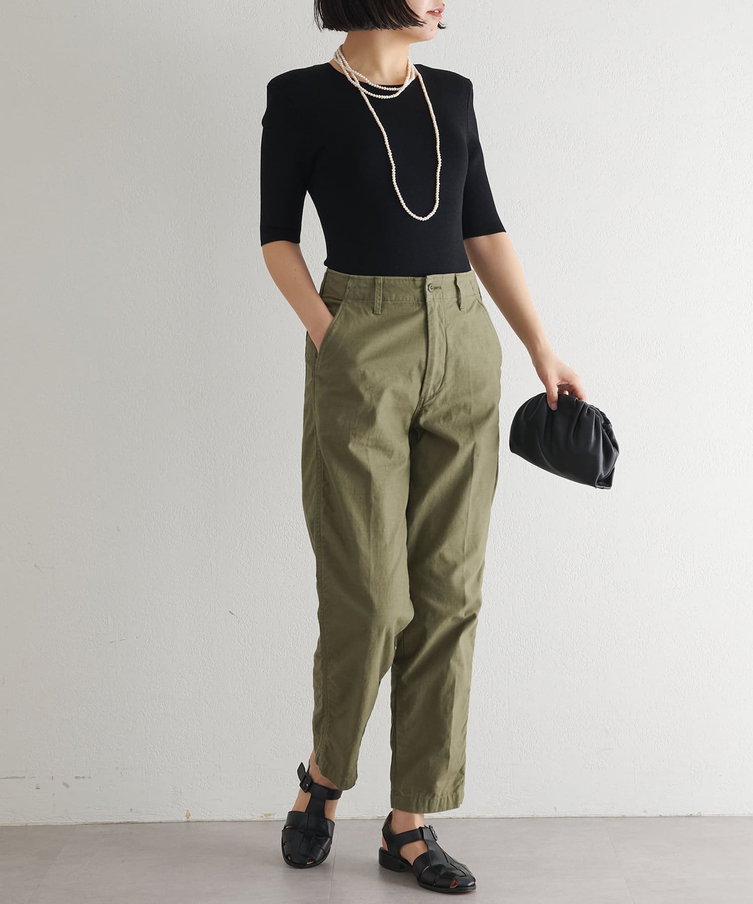 ■程よくゆとりがありつつも、テーパードのきれいめシルエットですっきりとした印象に。