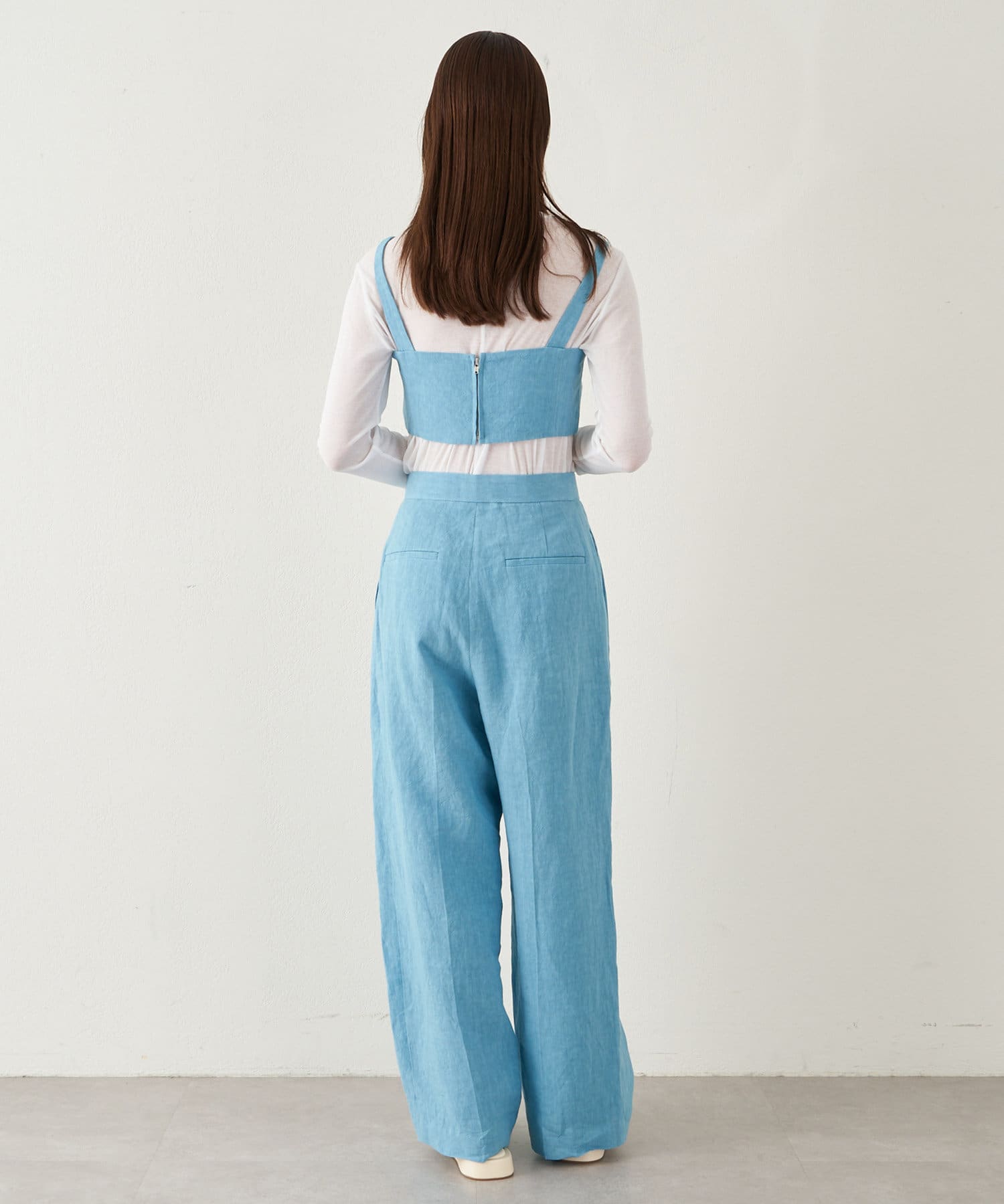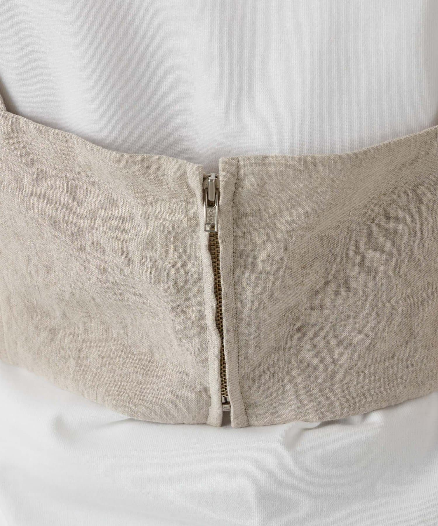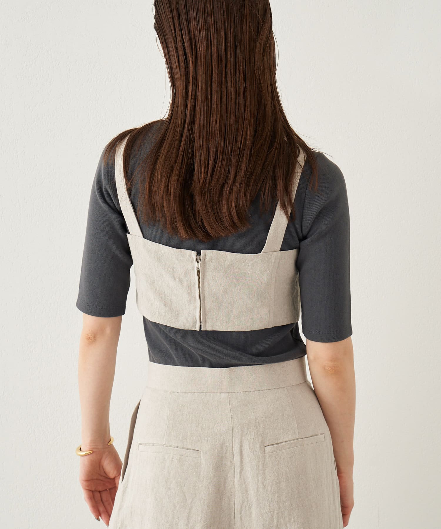 リネン素材で春夏にぴったりなビスチェです。程よくゆとりがあり楽な着心地。綺麗なスクエアシルエットで女性らしい印象です。