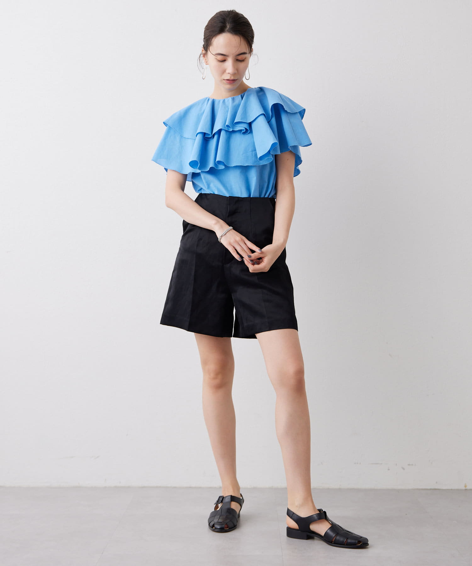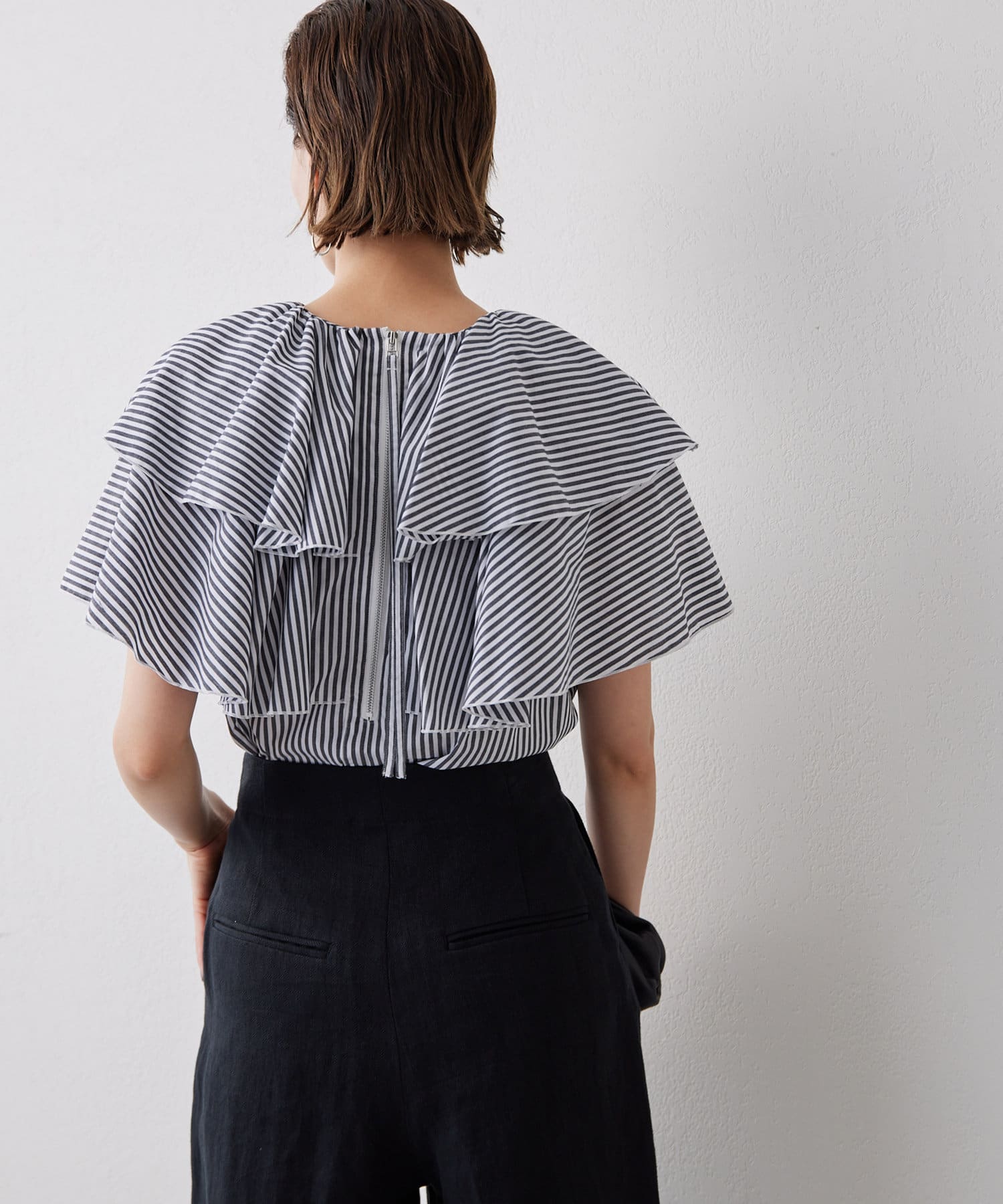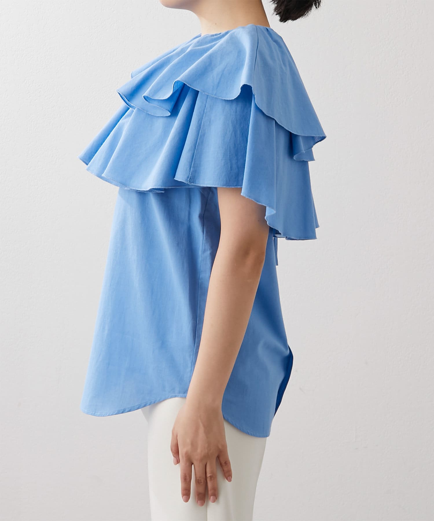 ■フリルにボリュームを持たせつつ、身頃はタイトに仕上げることですっきり見えるサイズ感に。