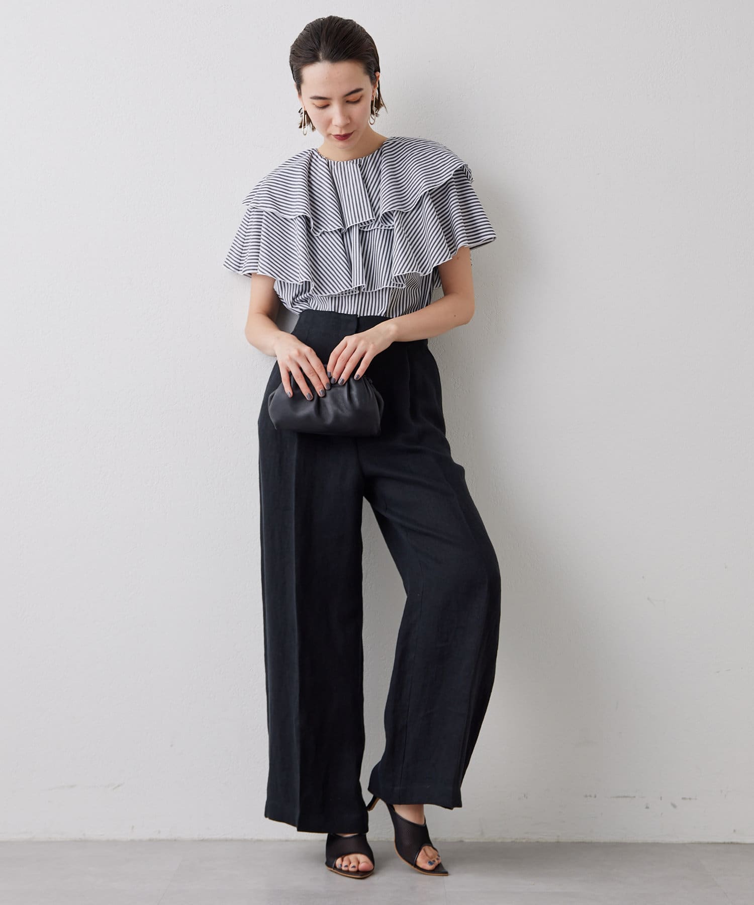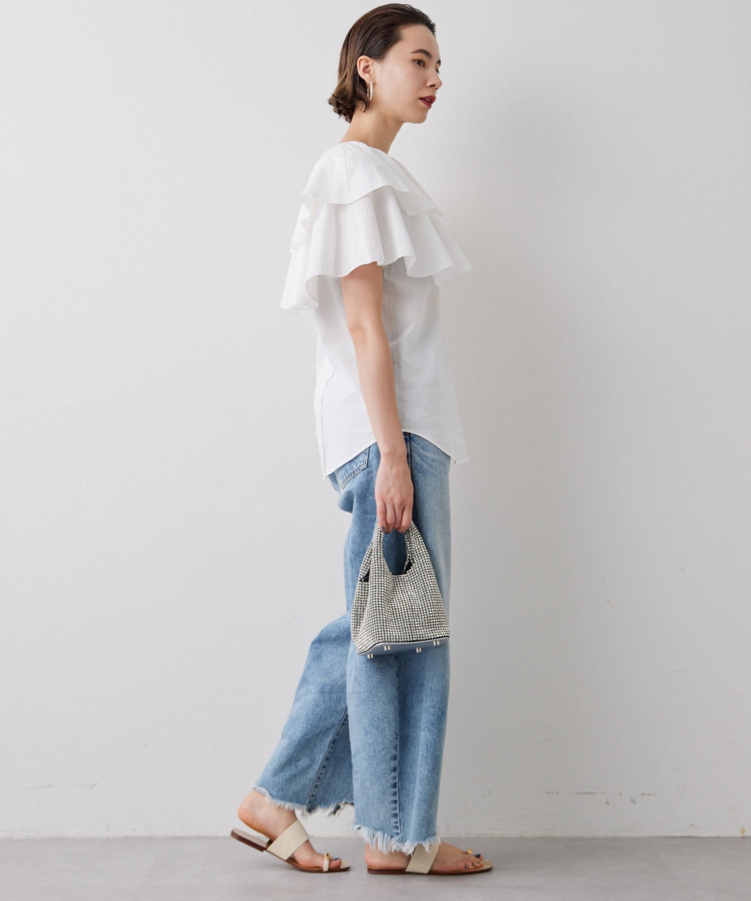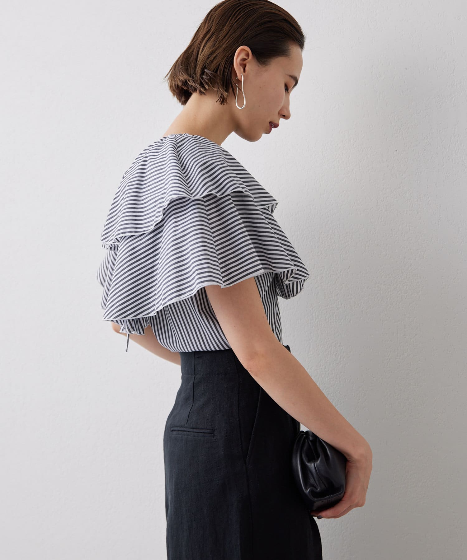 ■フリルにボリュームを持たせつつ、身頃はタイトに仕上げることですっきり見えるサイズ感に。