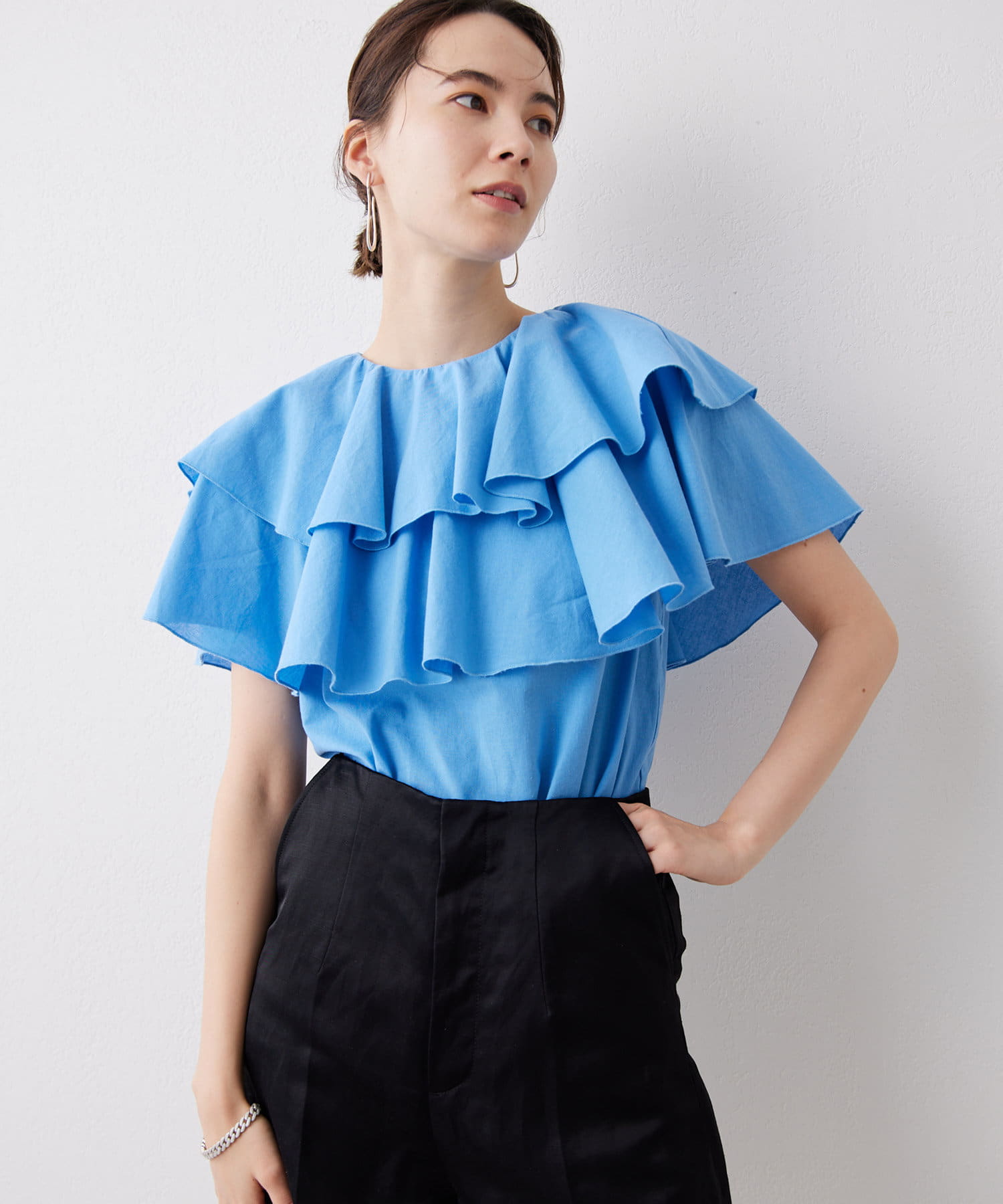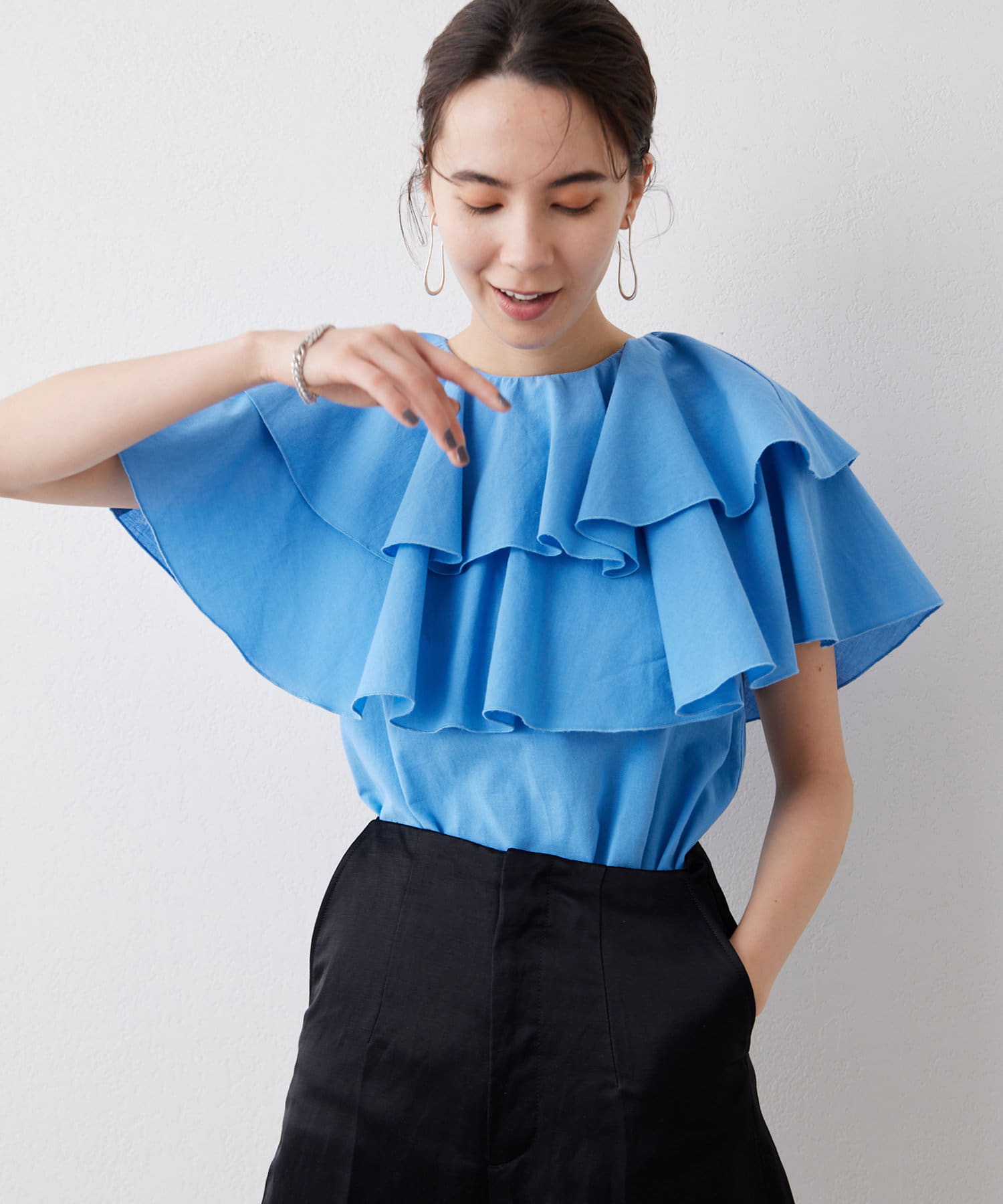 コーディネートの主役になる、一枚で着映えるフリルブラウス