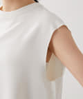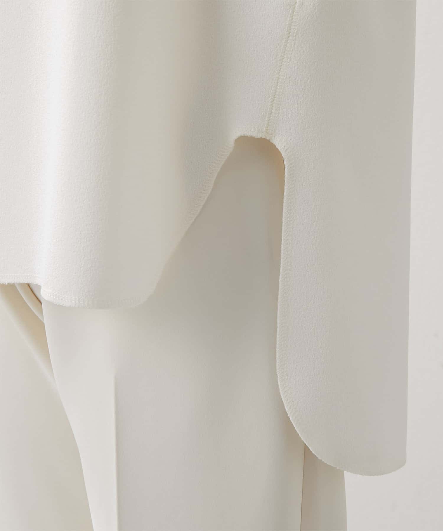■一枚で着ても様になる前後差のあるややオーバーなシルエットに、気になる二の腕をカバーできるフレンチスリーブもポイント。
